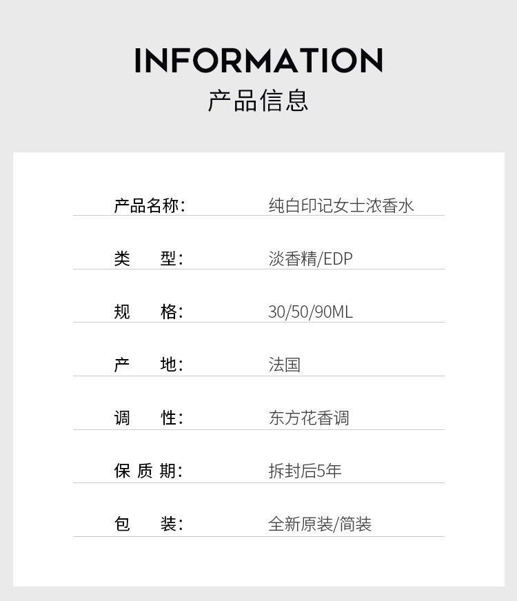 【保税仓】MontBlancSignature万宝龙纯白印记女士香水EDP30ml/50ml