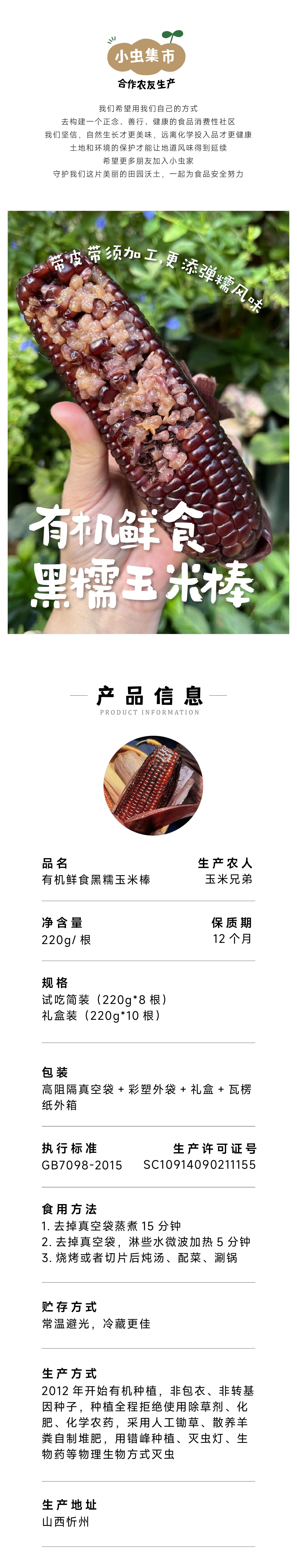 有机鲜食黑糯玉米棒 (非即食需加热食用) | 合作农友生产,来自山西忻州,生产者:玉米兄弟 *【公平贸易农人定价】