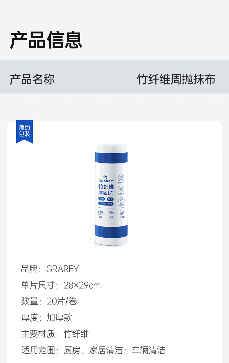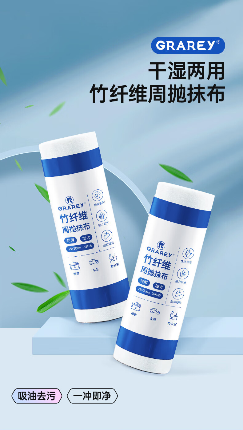 GRAREY 竹纤维周抛抹布 20片*3卷