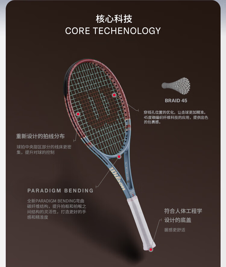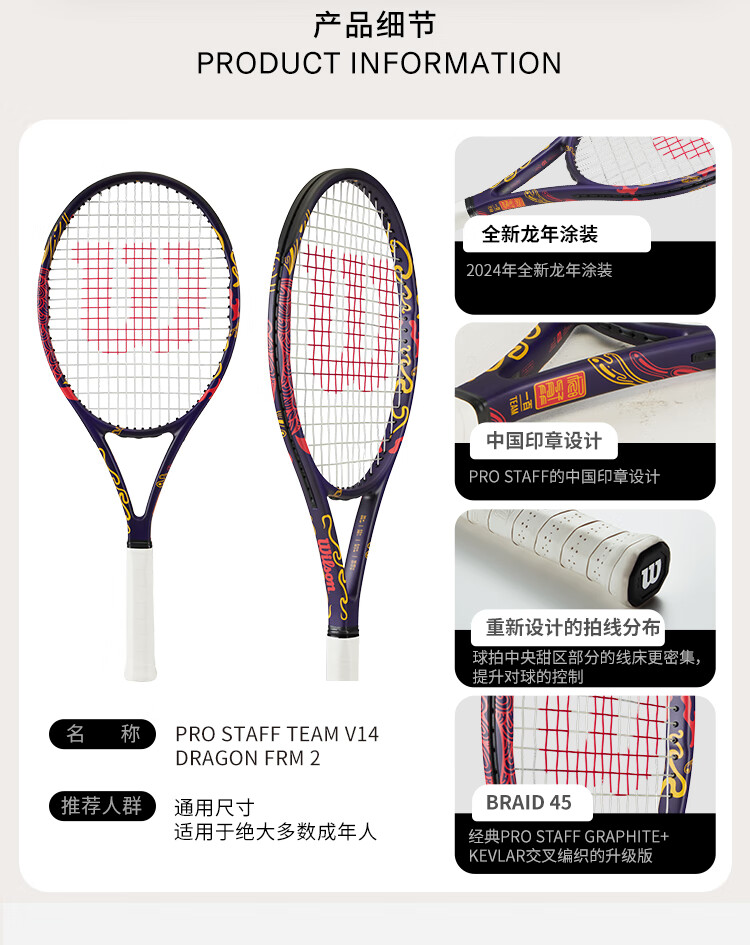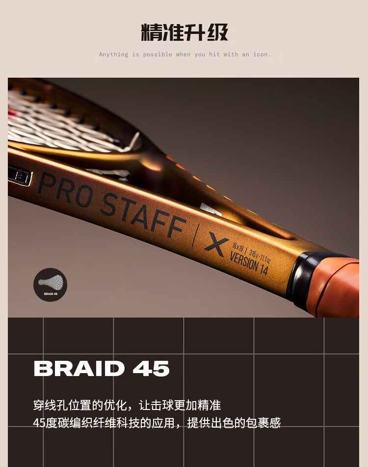 威尔胜(Wilson)Pro Staff 97 V14威尔逊奥运冠军郑钦文同款全碳素小金拍 WR175711U2
