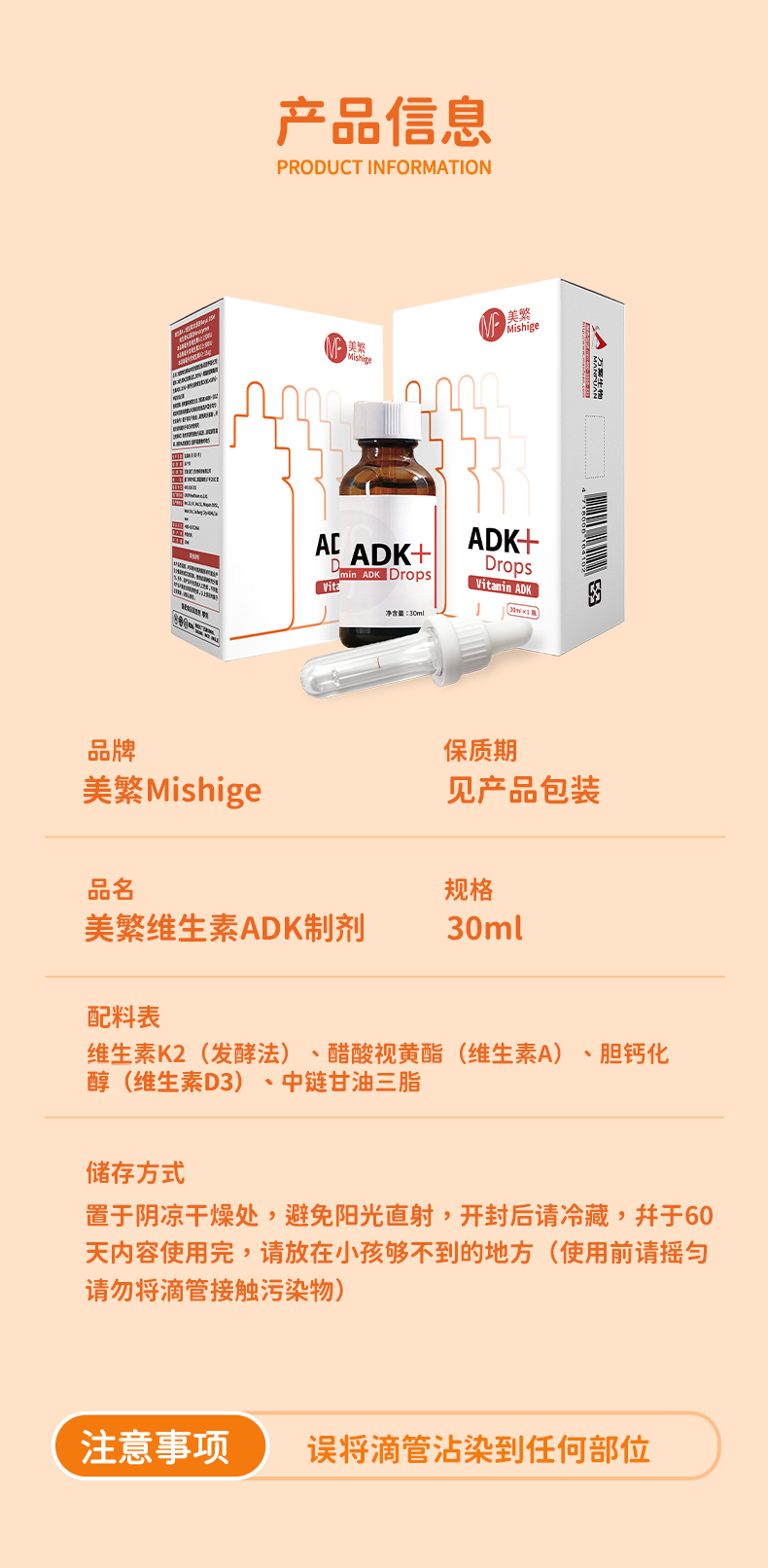 美繁维生素ADK制剂液体滴剂30ml(VA≥1200IU/ml VD≥400IU/ml K2≥30μg/ml )
