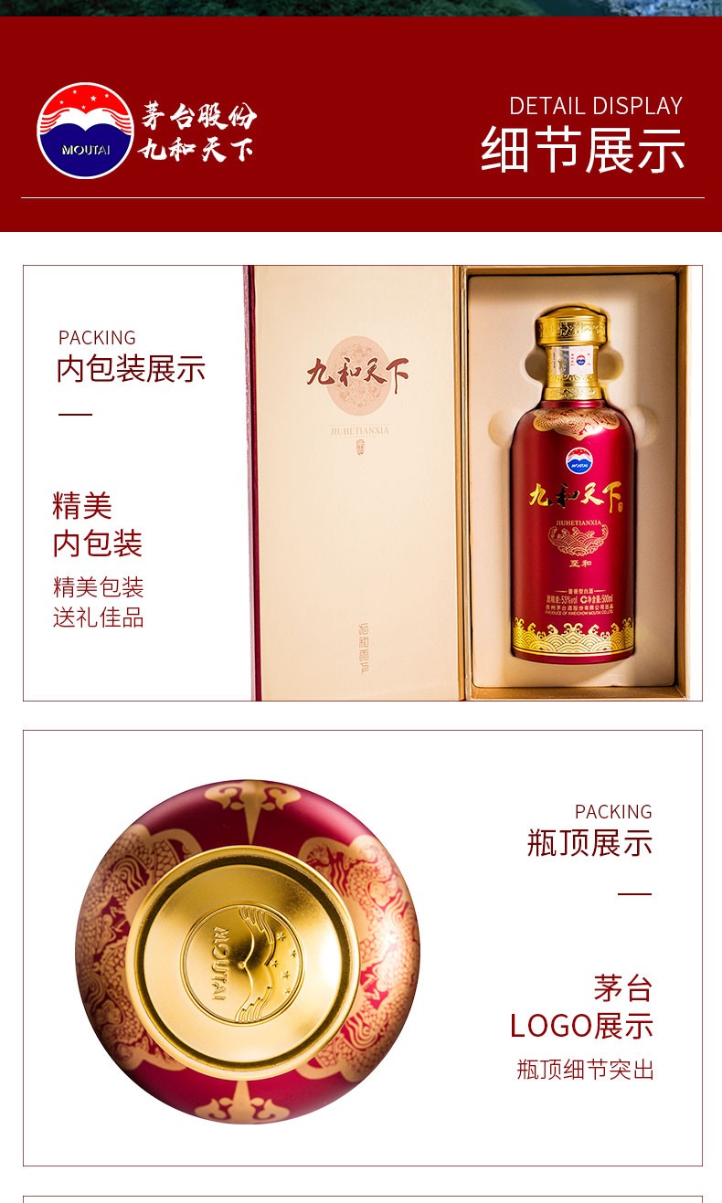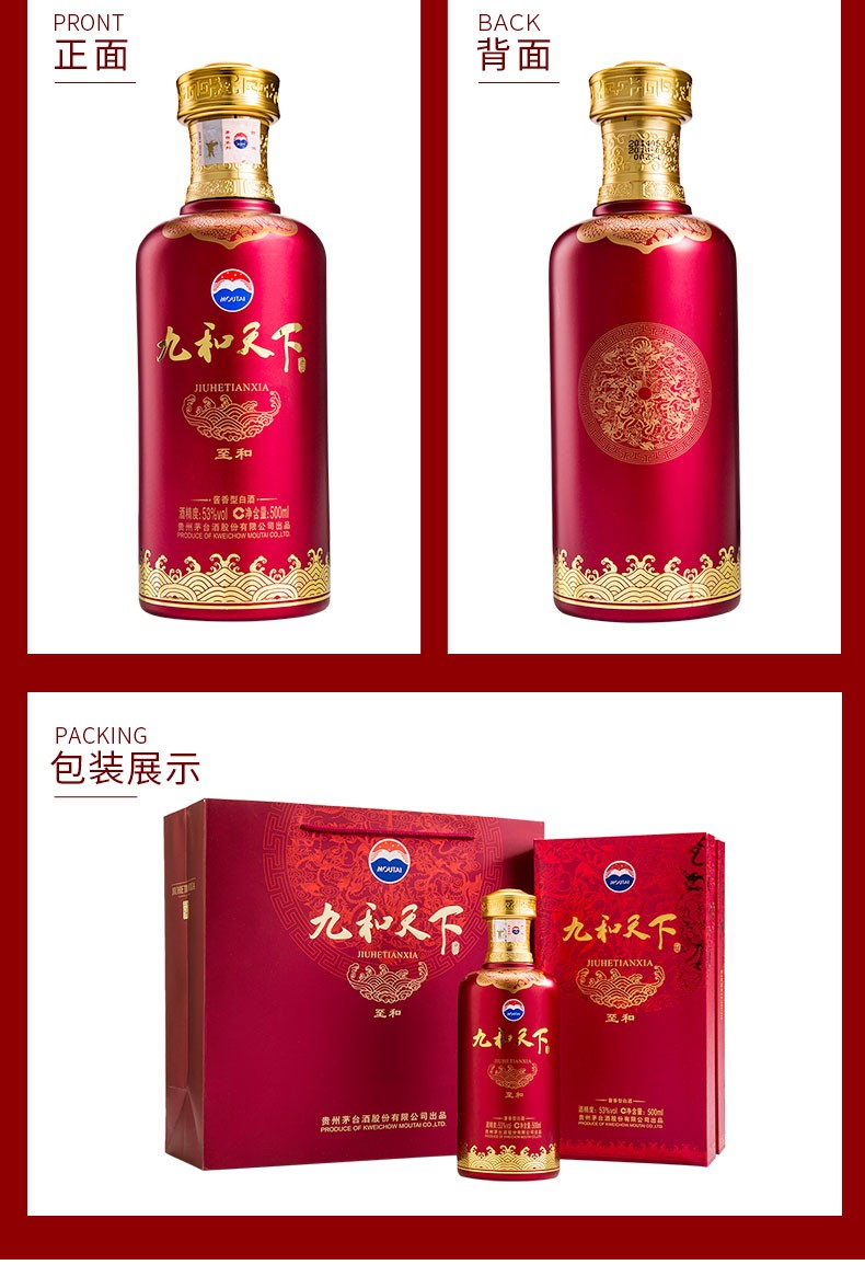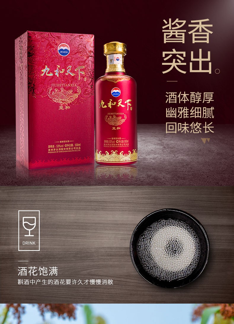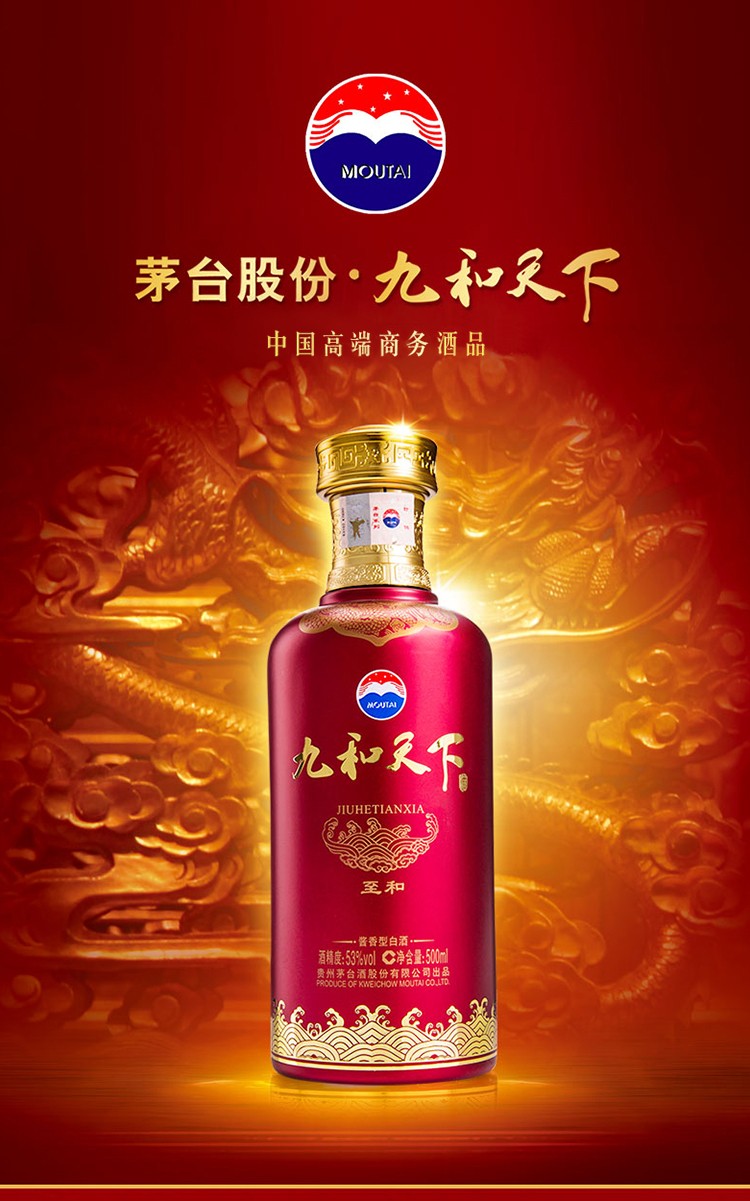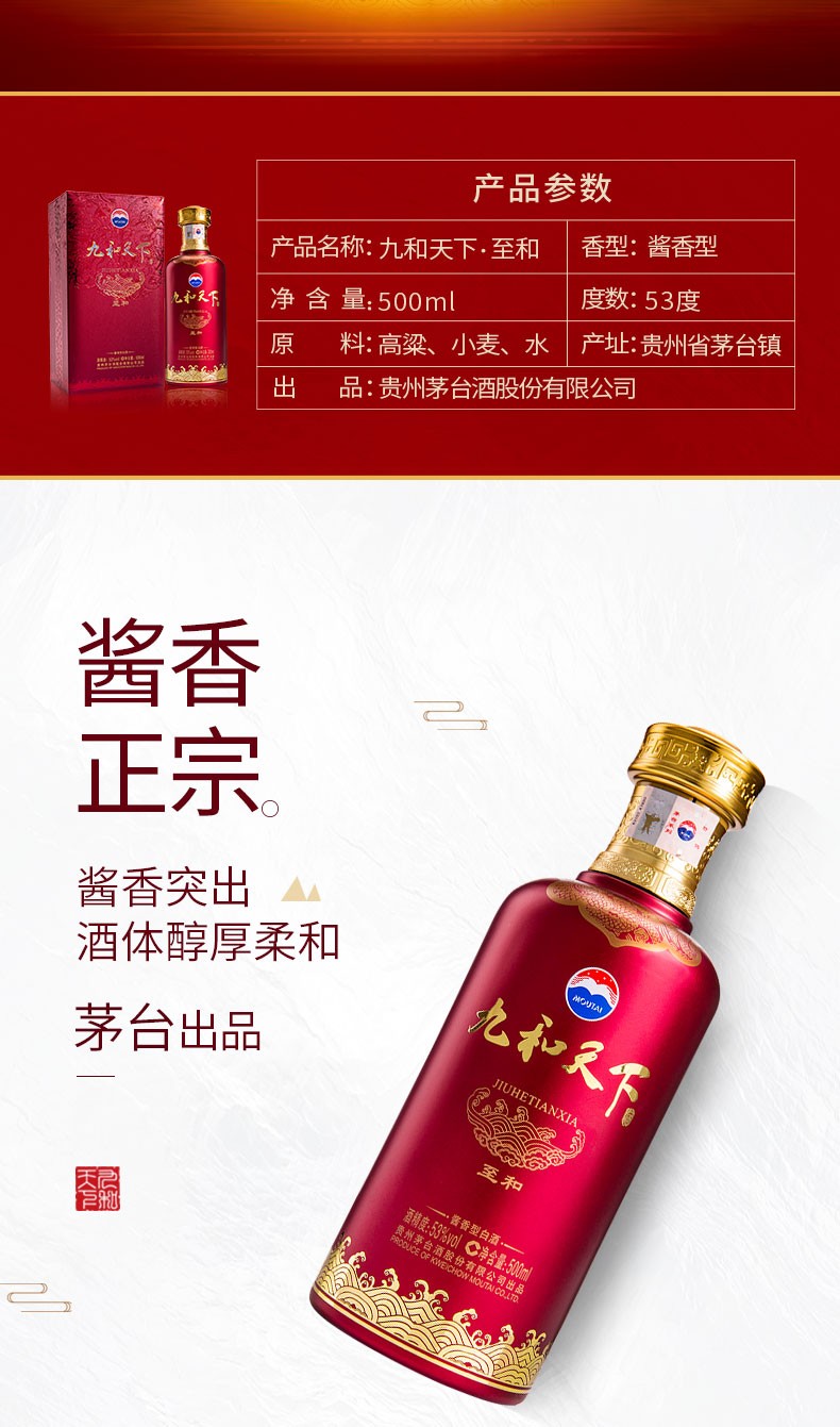 【清仓】贵州茅台酒股份有限公司出品 九和天下 至和 53度酱香型白酒500ml 单瓶装