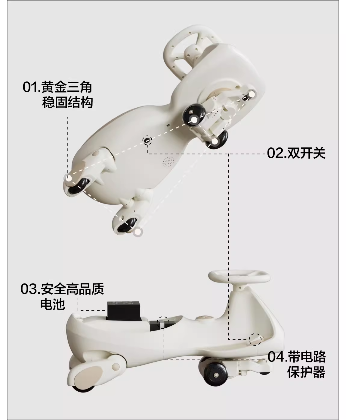 贝易电动扭扭车儿童防侧翻宝宝汽车可坐大人摩托车小孩四轮卡丁车【会员下单送头盔】