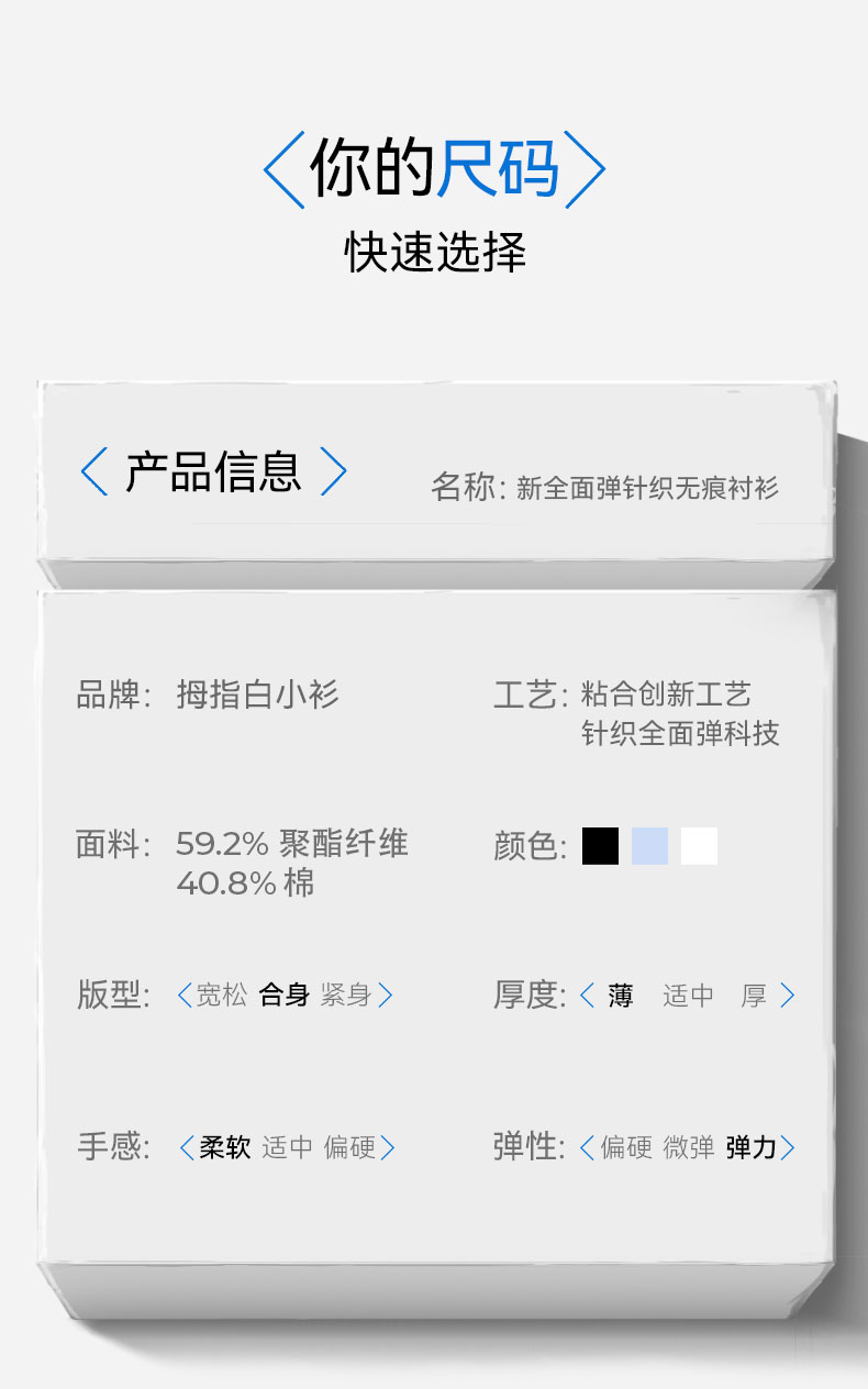 拇指白小T新全面弹针织无痕衬衫