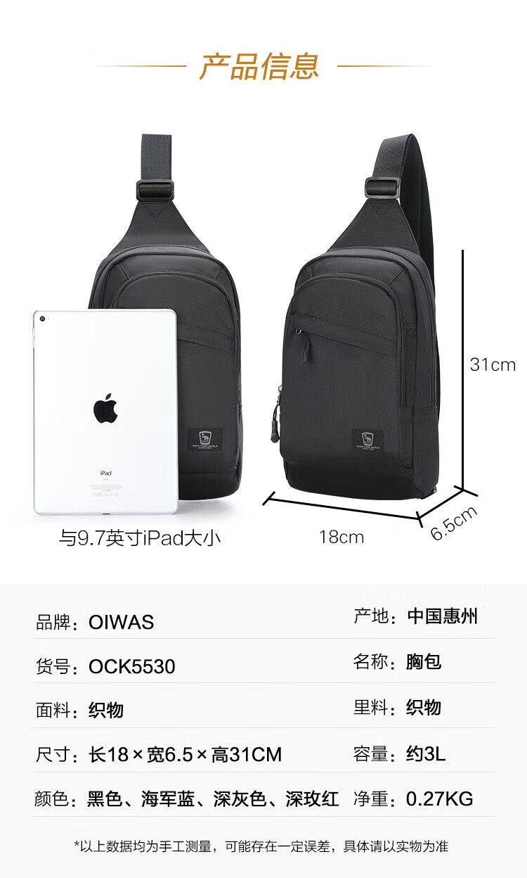 爱华仕 斜挎包男女胸包 时尚休闲单肩包商务挎包 OCK5530