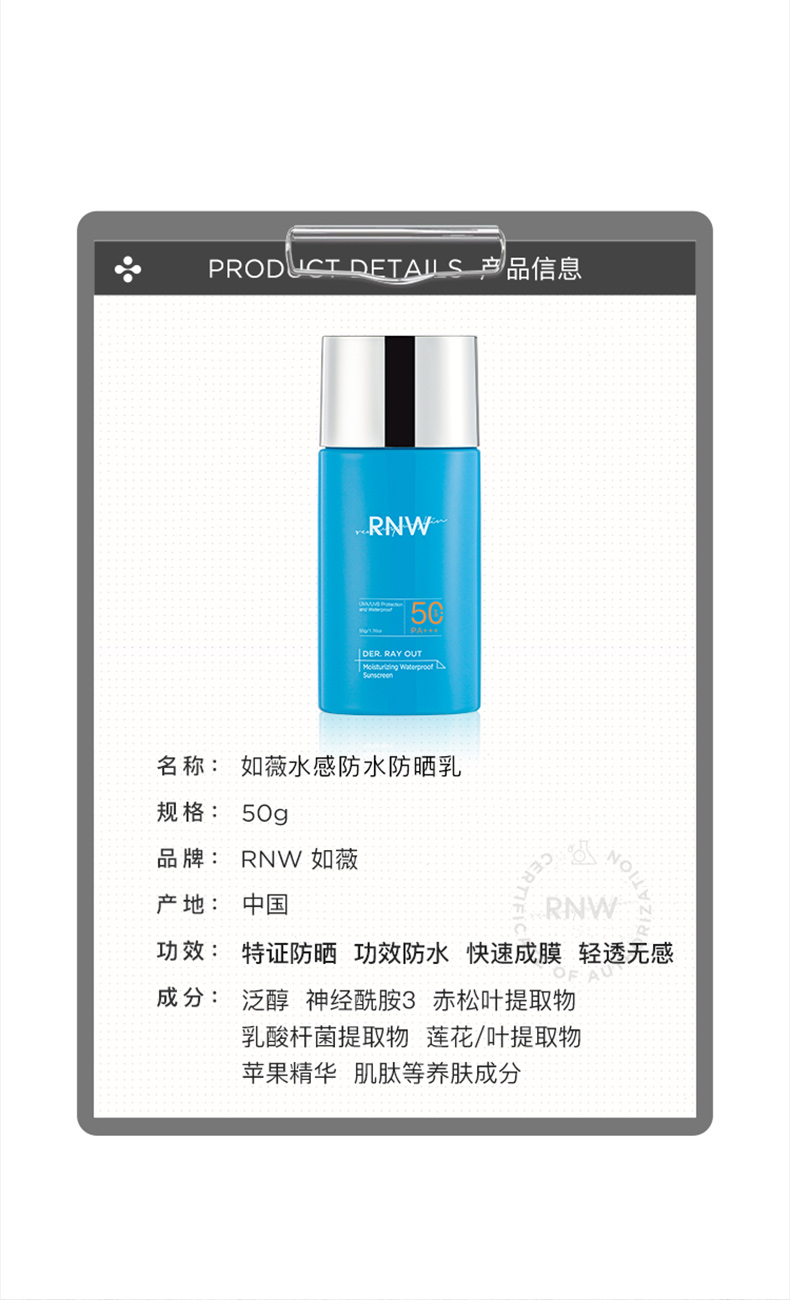 韩国RNW如薇水感防水防晒乳蓝瓶 50ml