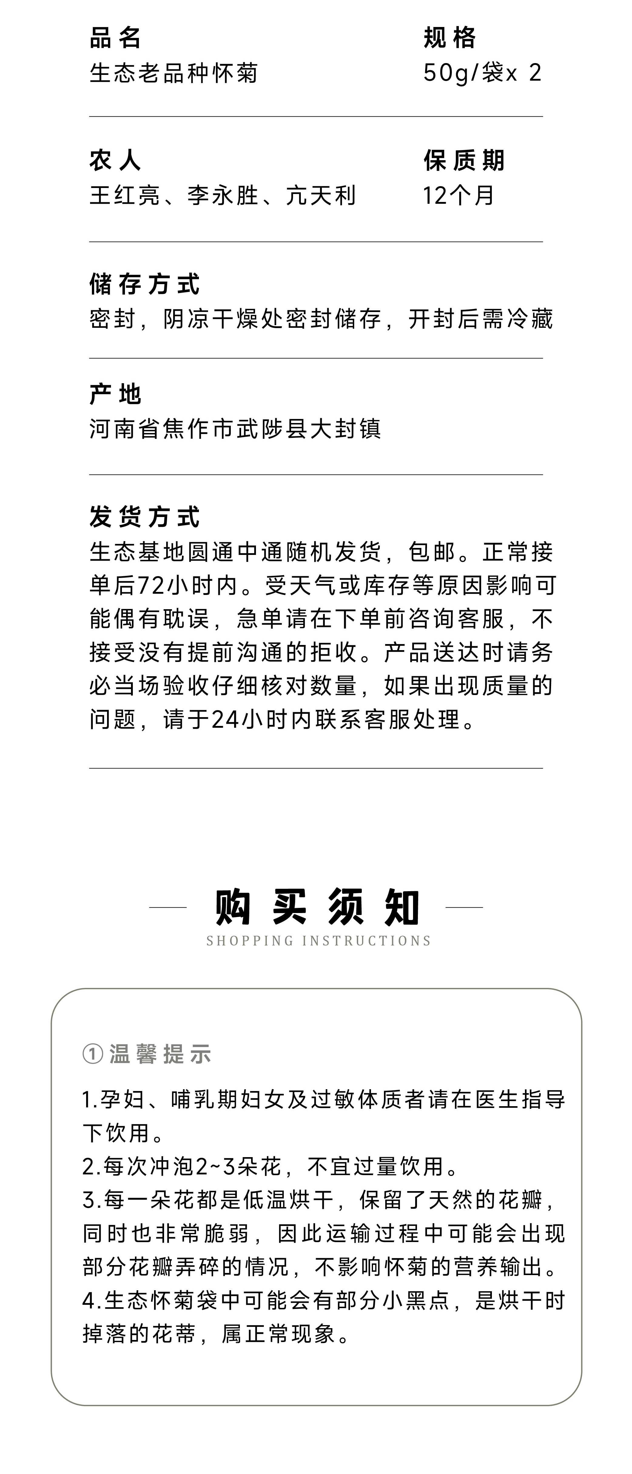 【2025年新菊】生态老品种怀菊花 50g/罐*2 | 合作农友生产,产自河南焦作,生产者:王红亮、亢天利、李永胜 *【公平贸易农人定价】