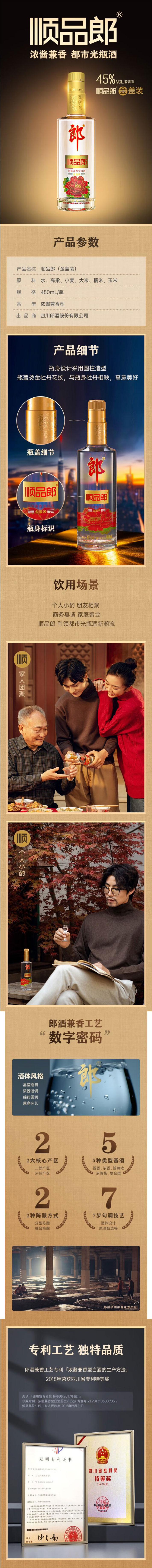 【单瓶39】郎酒 金盖顺品郎 兼香型白酒 45度 480ml*6瓶 480ml*12瓶(光瓶需打包防破损 不发原箱)