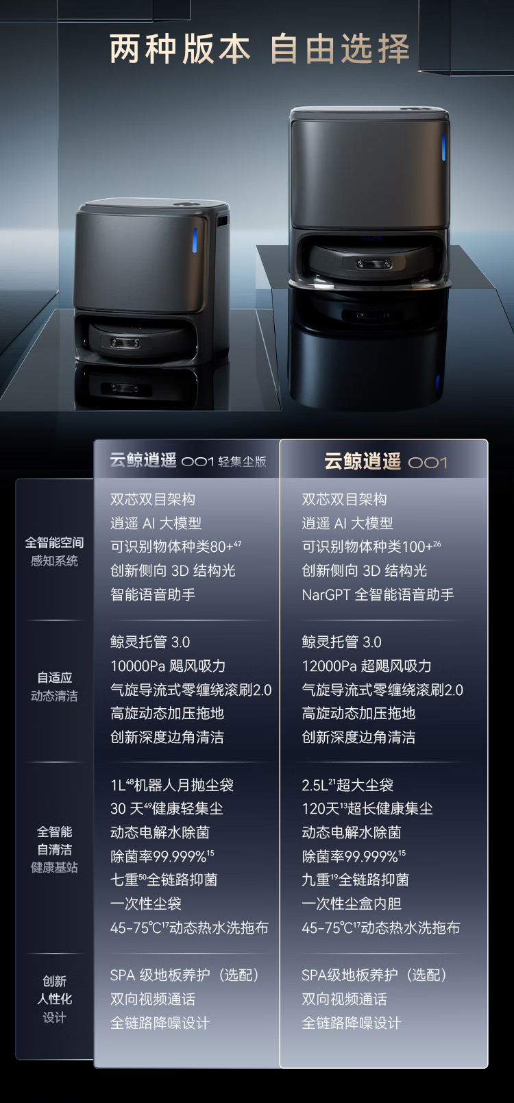 云鲸-扫地机器人-逍遥001-白色-基站集尘-水箱版