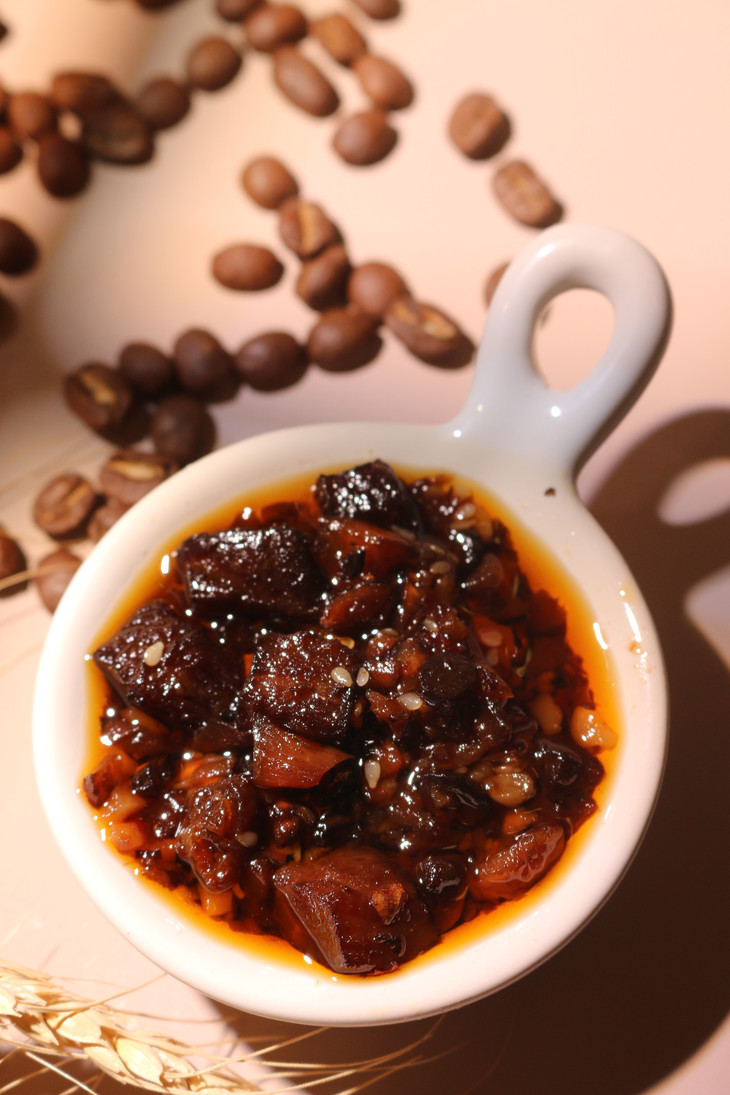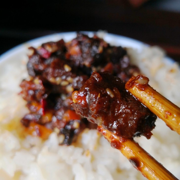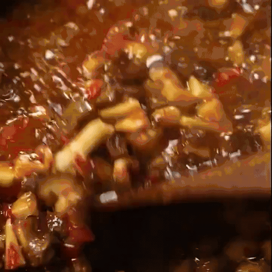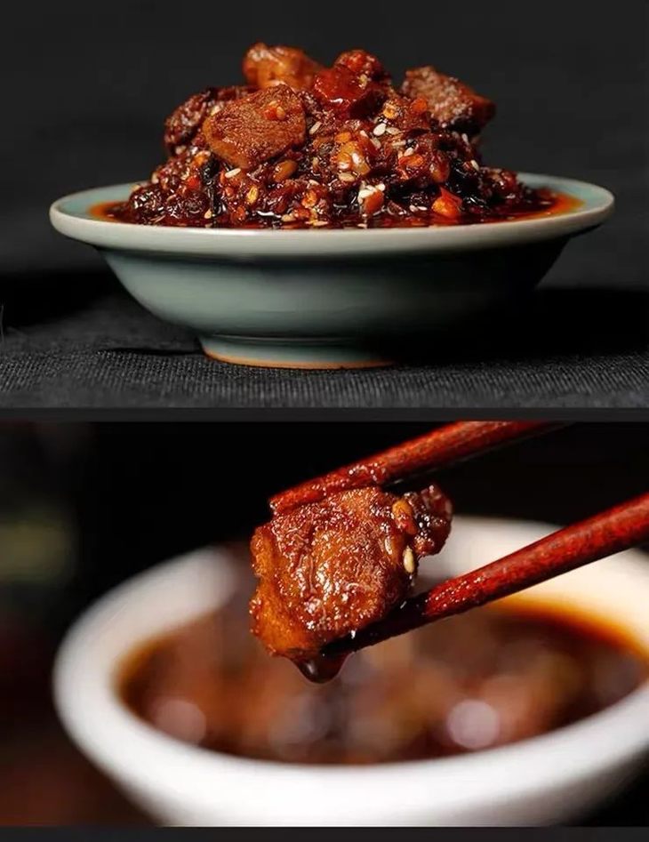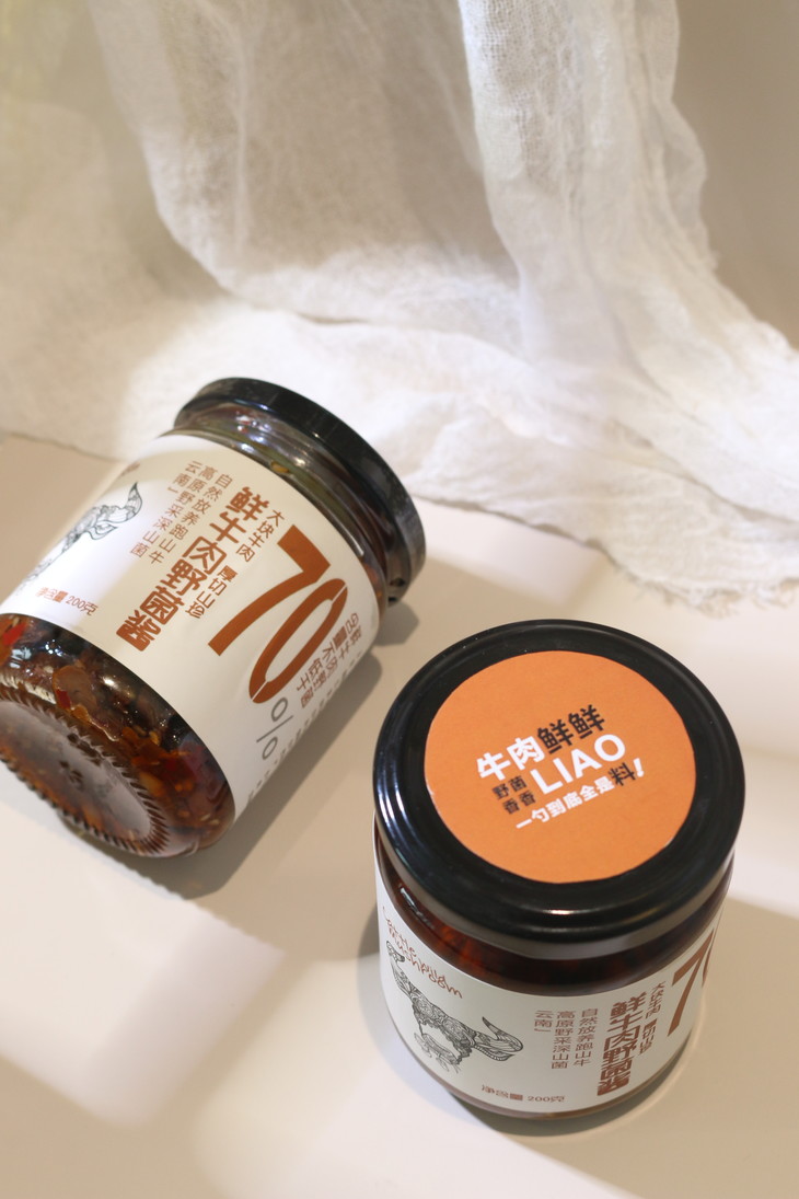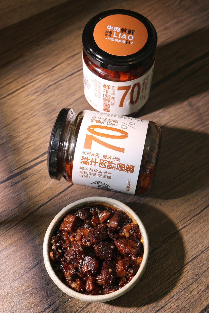 每一瓶牛肉酱都是舌尖上的艺术品。新鲜牛肉腌制2小时后手工切丁,佐以辣椒、豆豉、菌菇、芝麻文火慢炖,豆豉的风味、香菇的脆嫩、芝麻的香浓……每一粒牛肉都吸足了一锅的丰富酱汁,而且每一口都是真材实料的大粒牛肉,直接秒杀市面99%的牛肉酱!