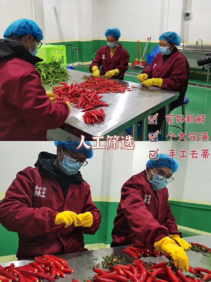 继承20多年专业沉淀的古法工艺,每日辣椒人工采摘、筛选、清洗、剁碎,再搭配各种原生态食材,进入辣椒酱厂高新技术生产线标准化安全生产,按特定比例混合调味,烹饪熬煮后新鲜装瓶。