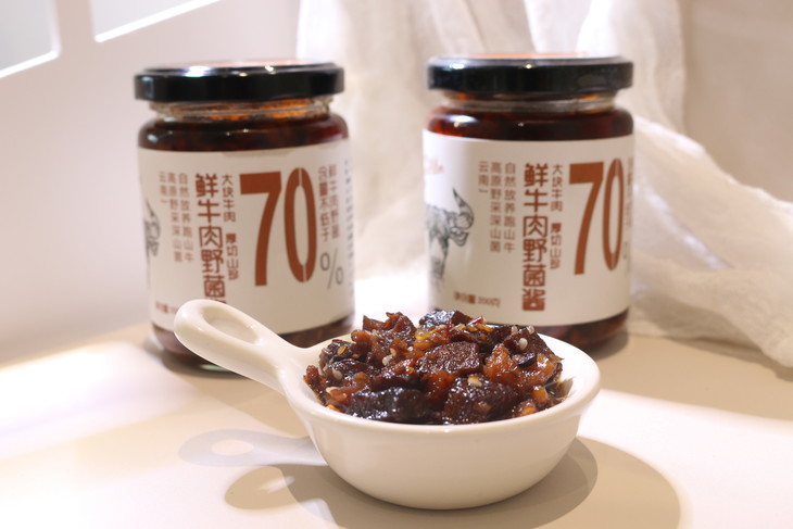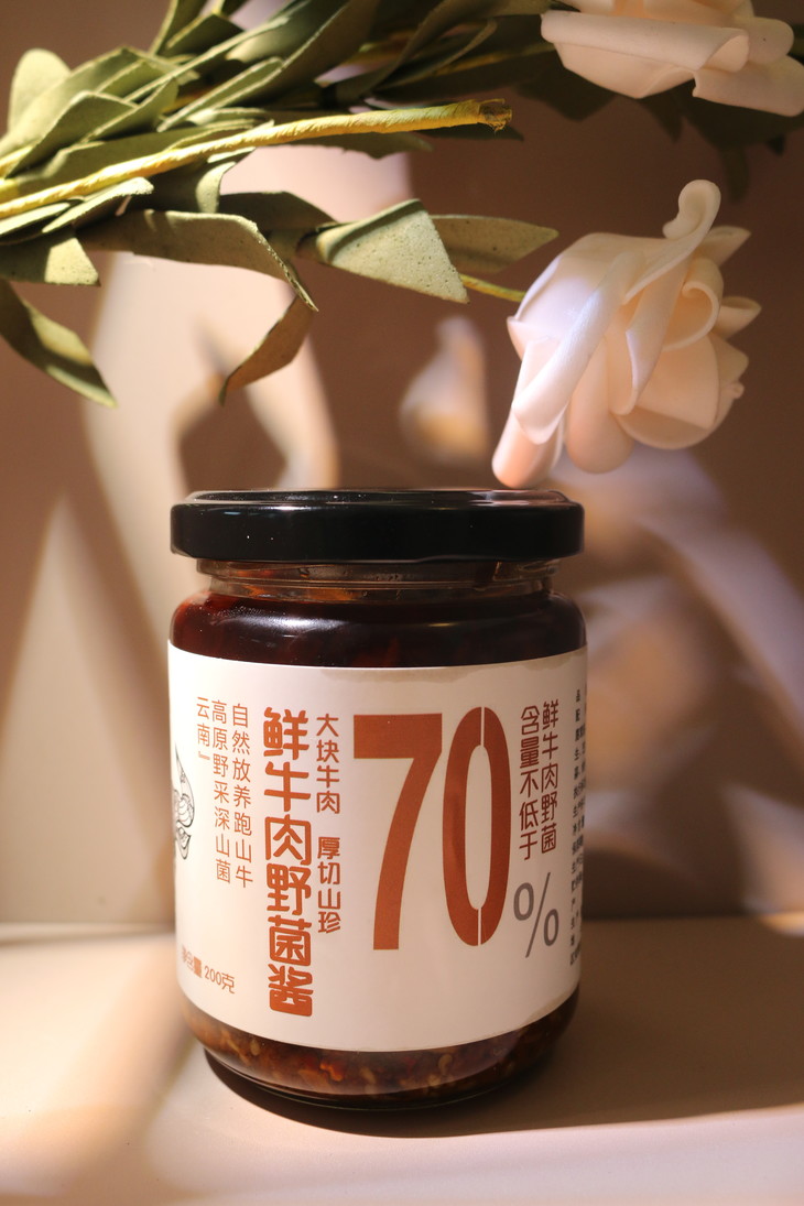 做好的酱趁热装罐,当天发货。你收到的时候,罐身还带着余温,打开就能闻到“滋滋”的香气——那是牛肉的脂香混着菌子的鲜,像把云南的山风,和一口热乎的灶火,都吹进了你的厨房。