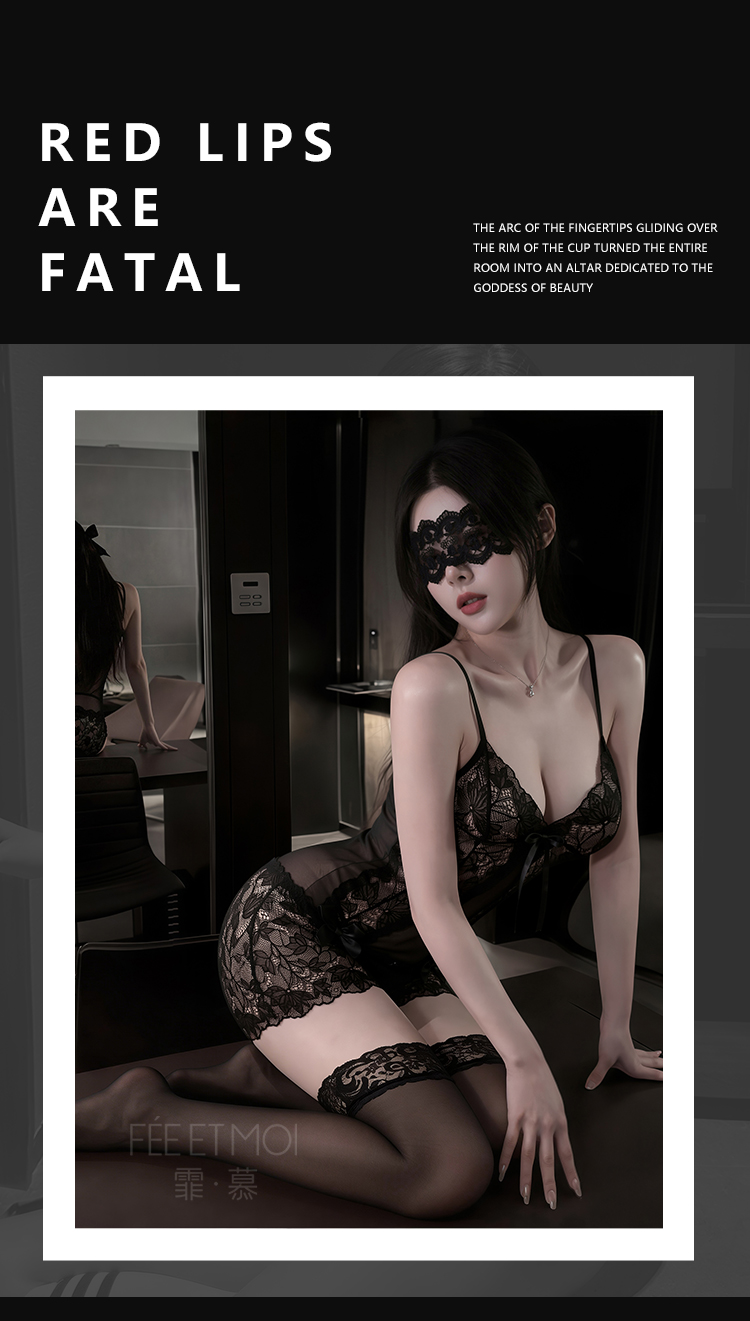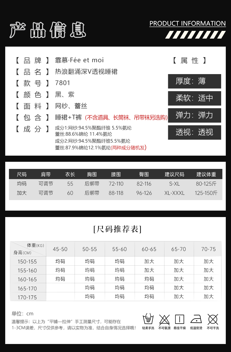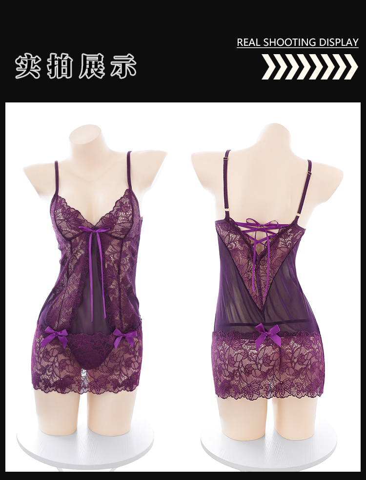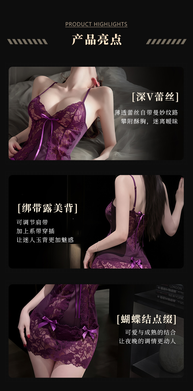 【情趣内衣】霏慕 热浪翻涌深V透视睡裙7801情趣内衣紫色性感纯欲套装露臀