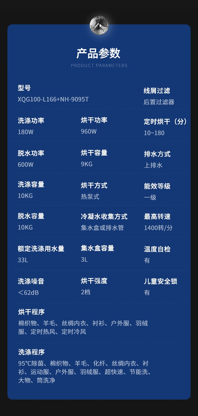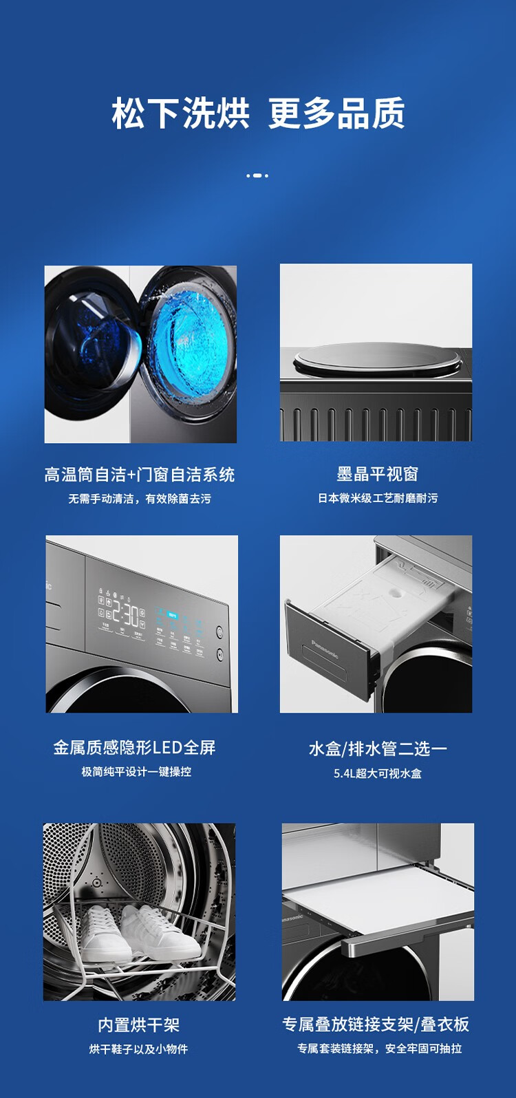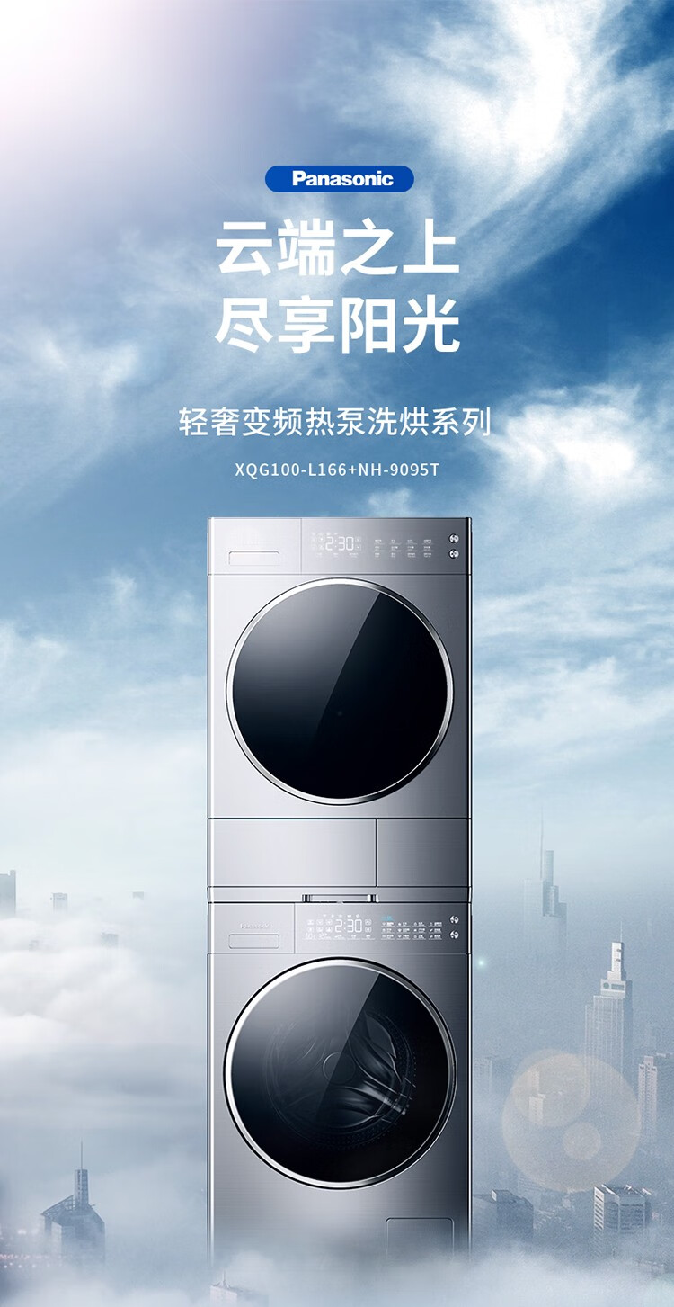 松下(Panasonic)洗烘套装 滚筒洗衣机全自动10kg+9kg热泵干衣机烘干机除菌除螨护理机 L166+9095T【舒享款】