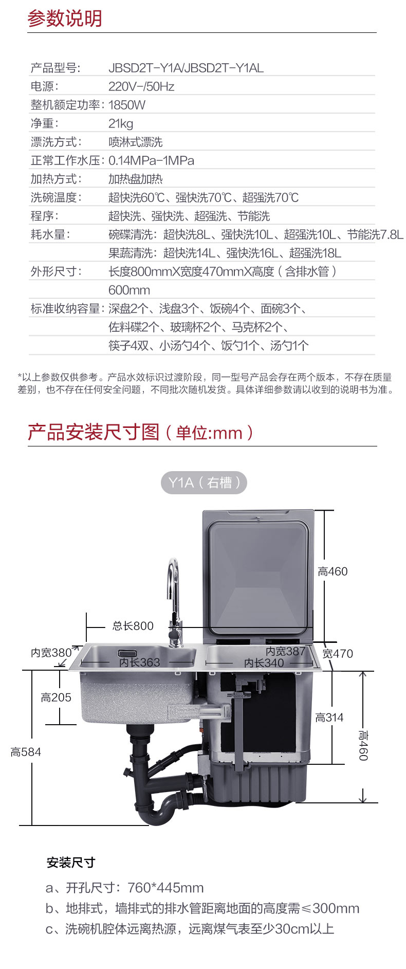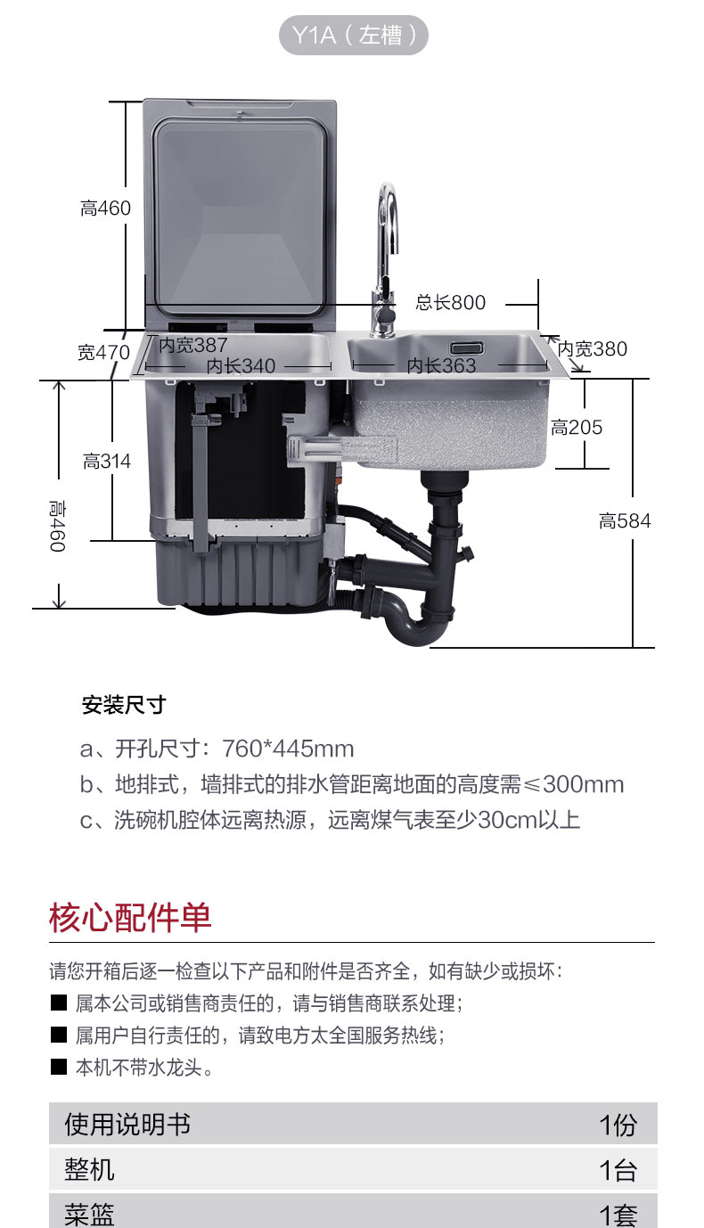 方太/洗碗机/Y1A/全自动家用烘乾集成水槽一体 水槽洗碗机