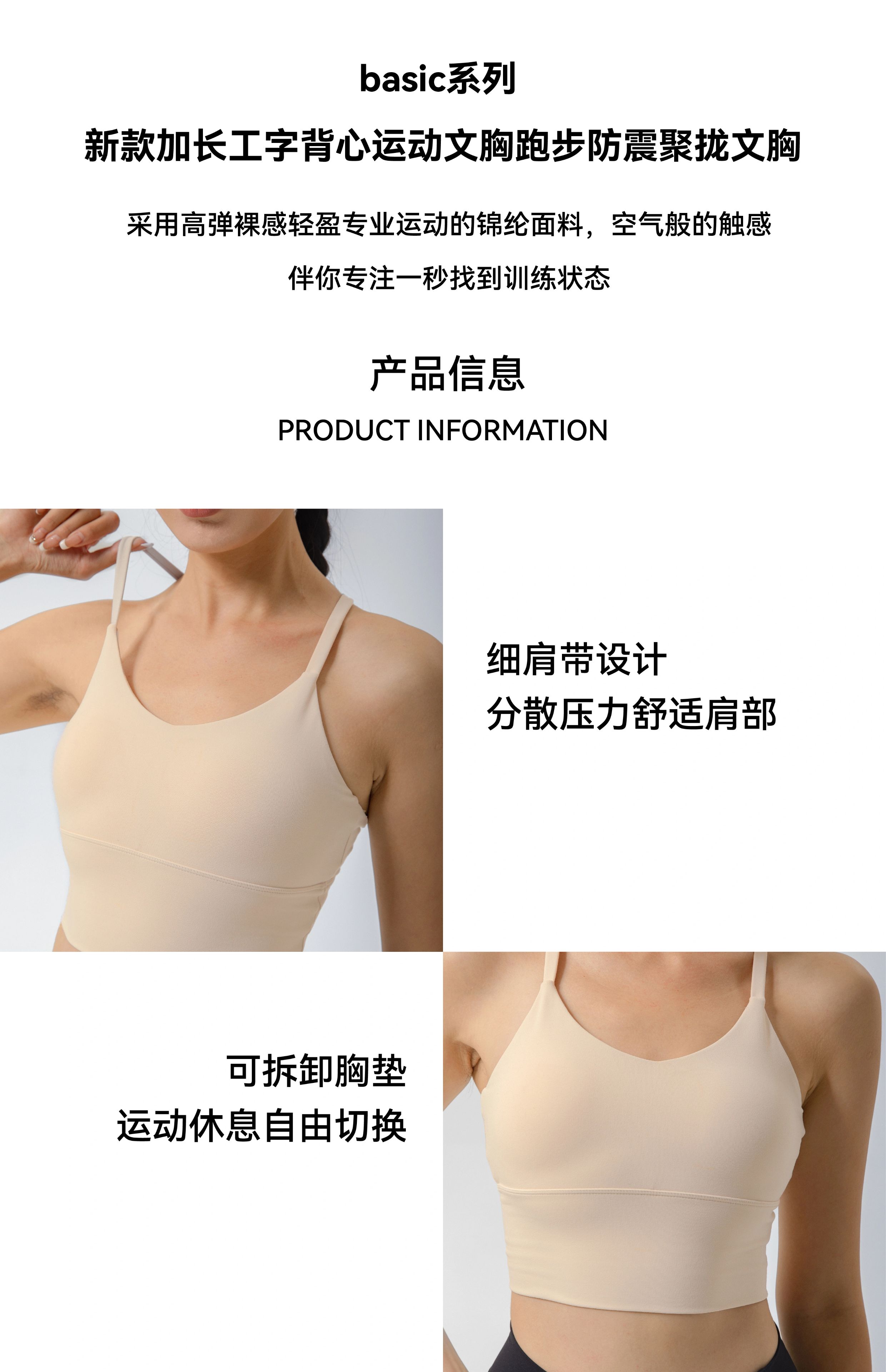 POPBASIC新款加长工字背心运动文胸跑步防震聚拢文胸