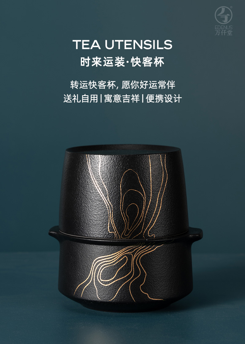 万仟堂 | 时来运转·快客杯 旅行茶具套装便携包 快客杯 陶瓷功夫茶具 带便携包