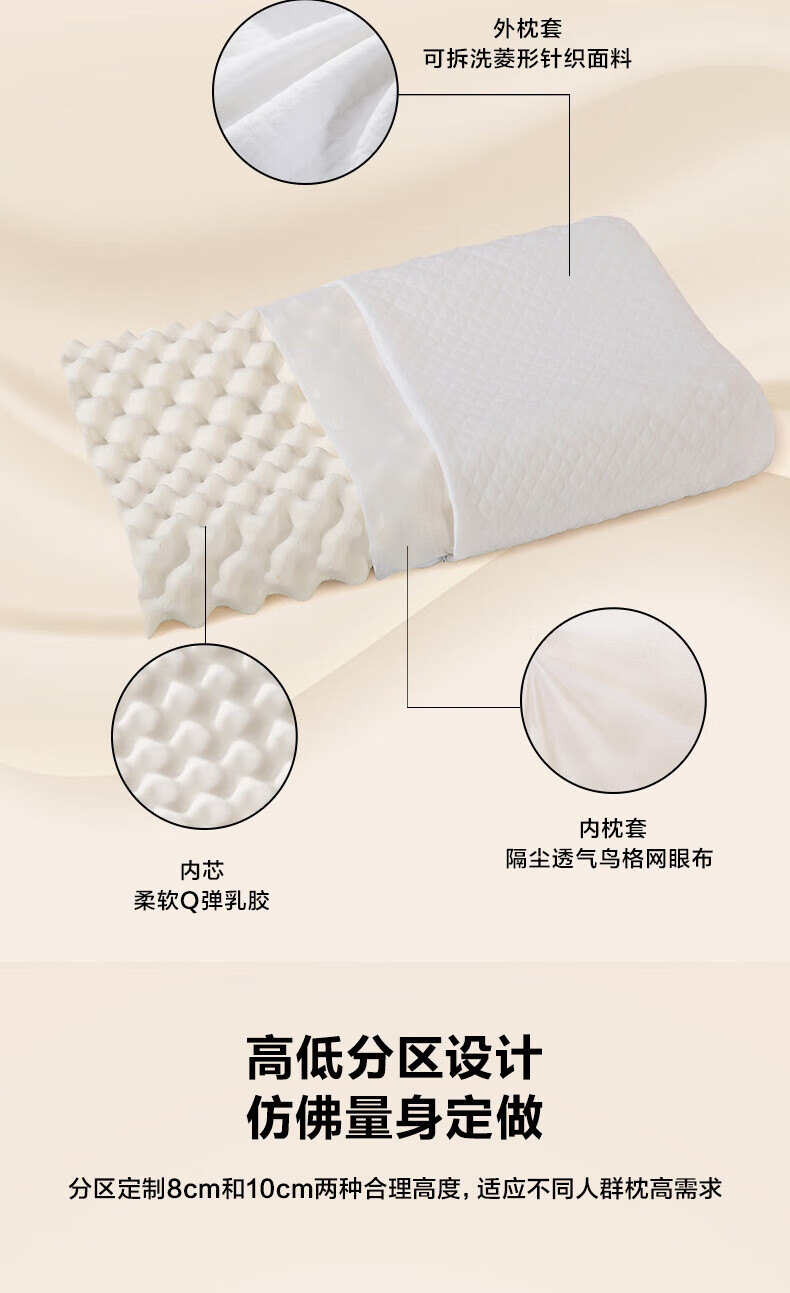 LOVO乐蜗XS 经典泰国乳胶按摩枕 36×60cm