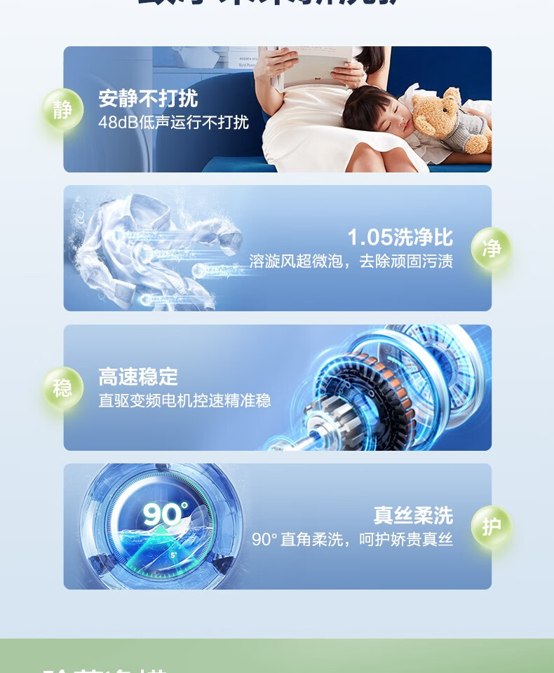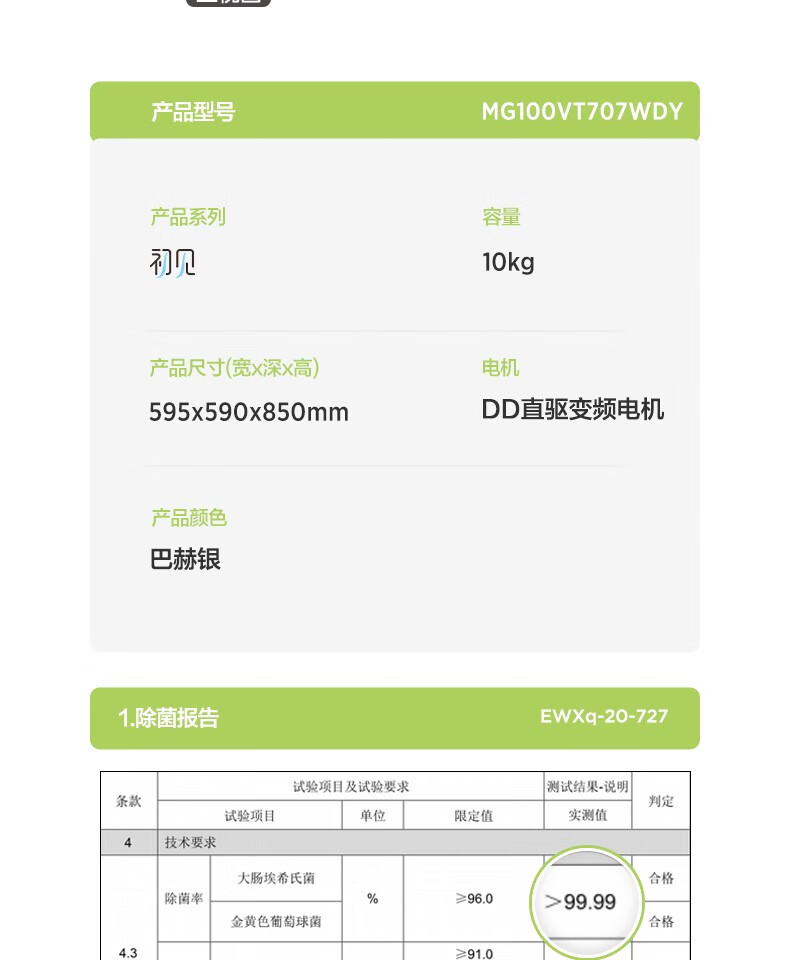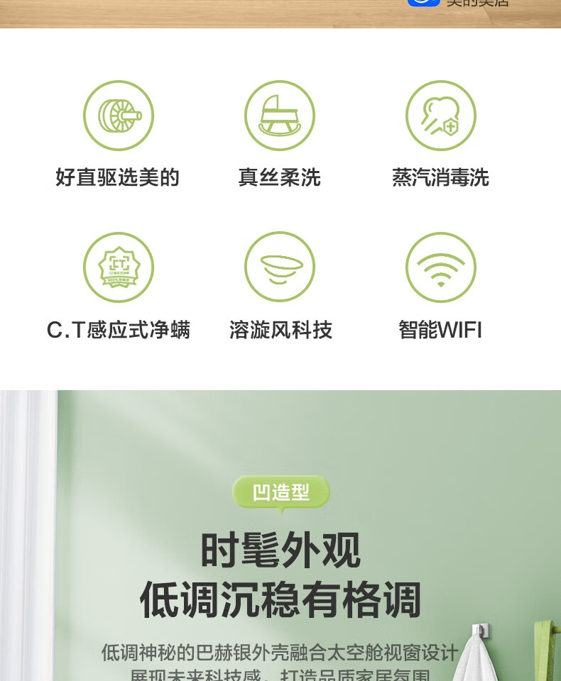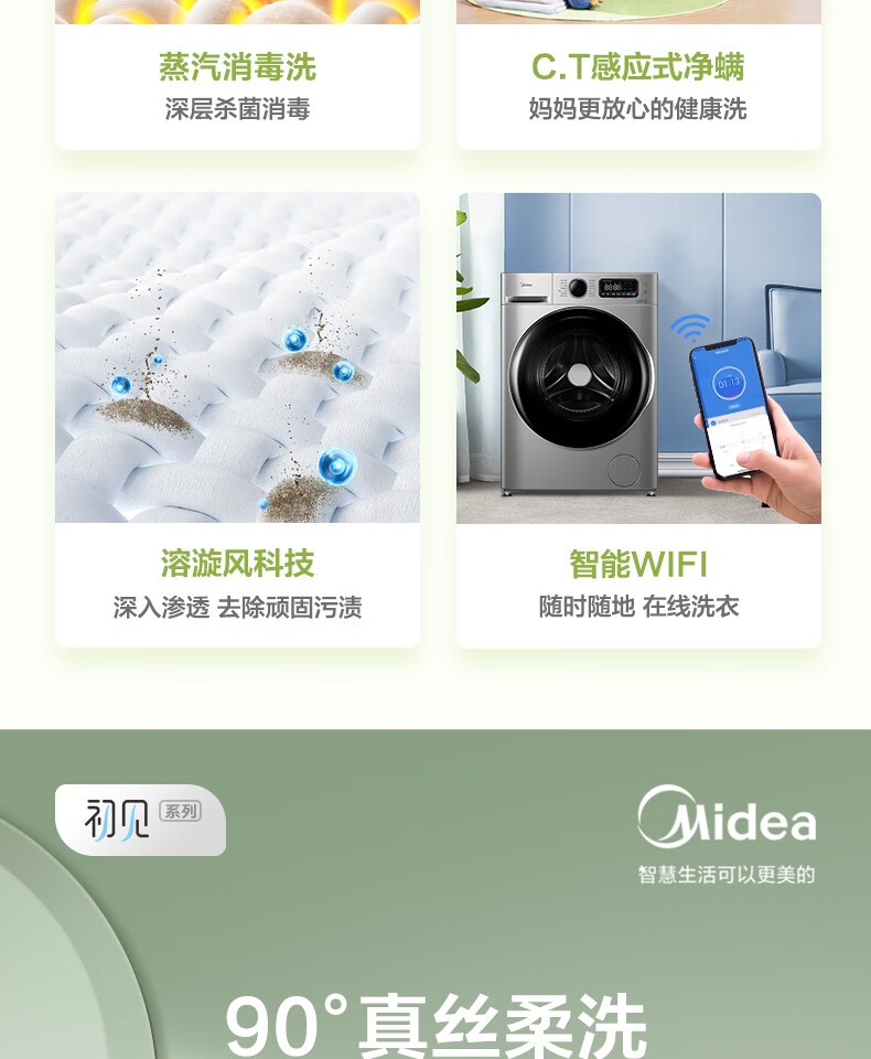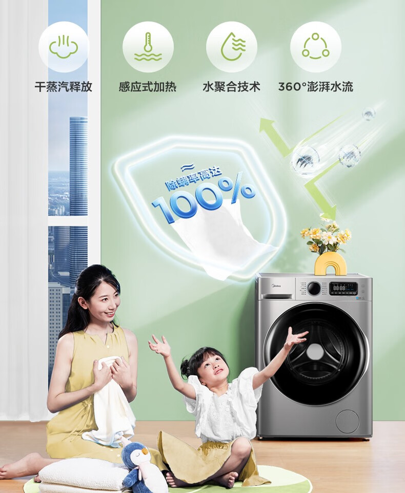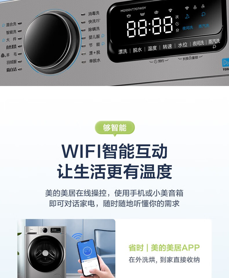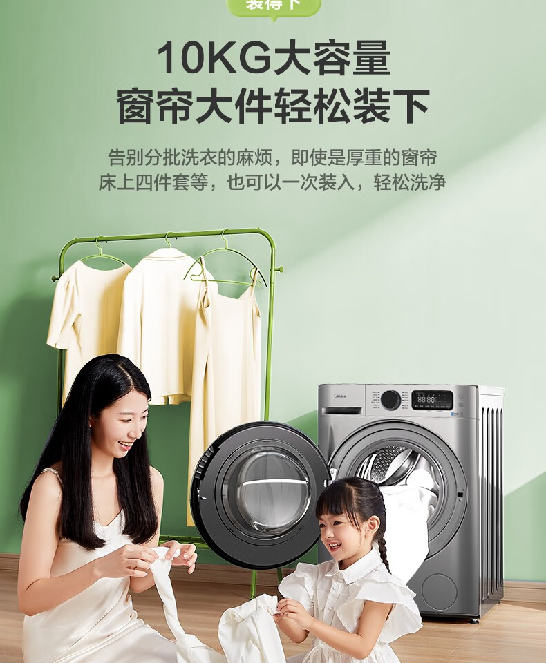 美的(Midea)滚筒洗衣机全自动 10公斤 直驱变频 除菌螨 智能家电 滚筒(不带烘干)MG100VT707WDY