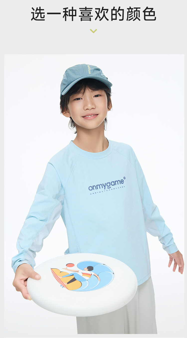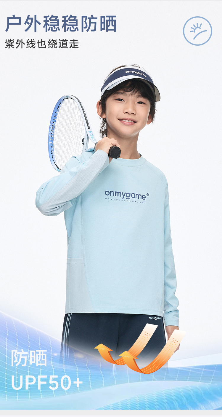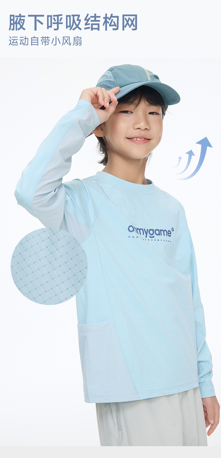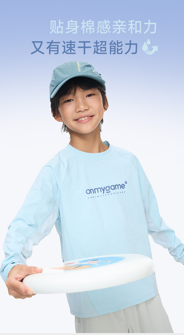 onmygame【棉感速干】儿童速干运动T恤儿童抗菌防晒长袖GQ11120050
