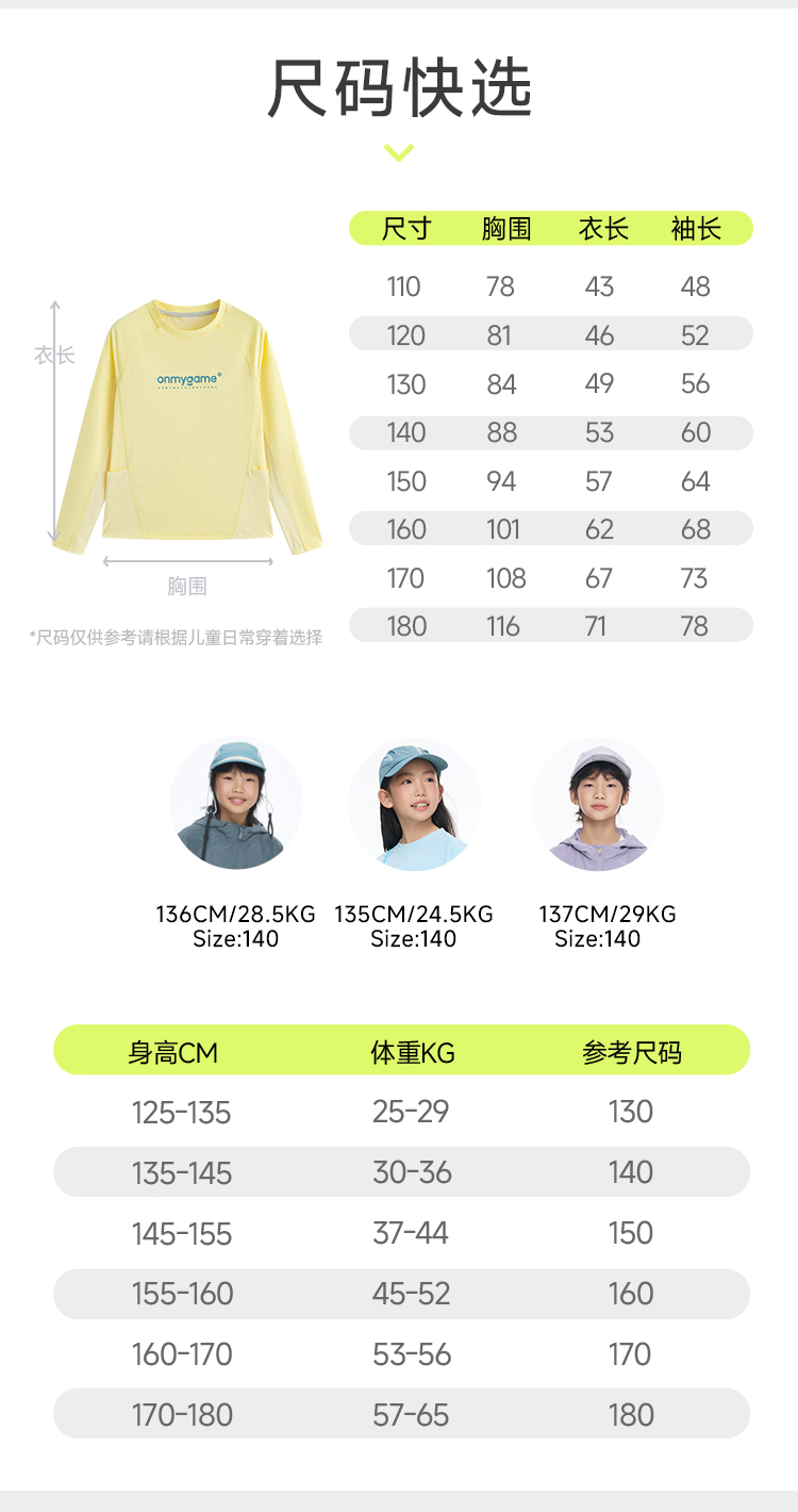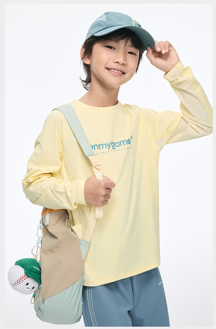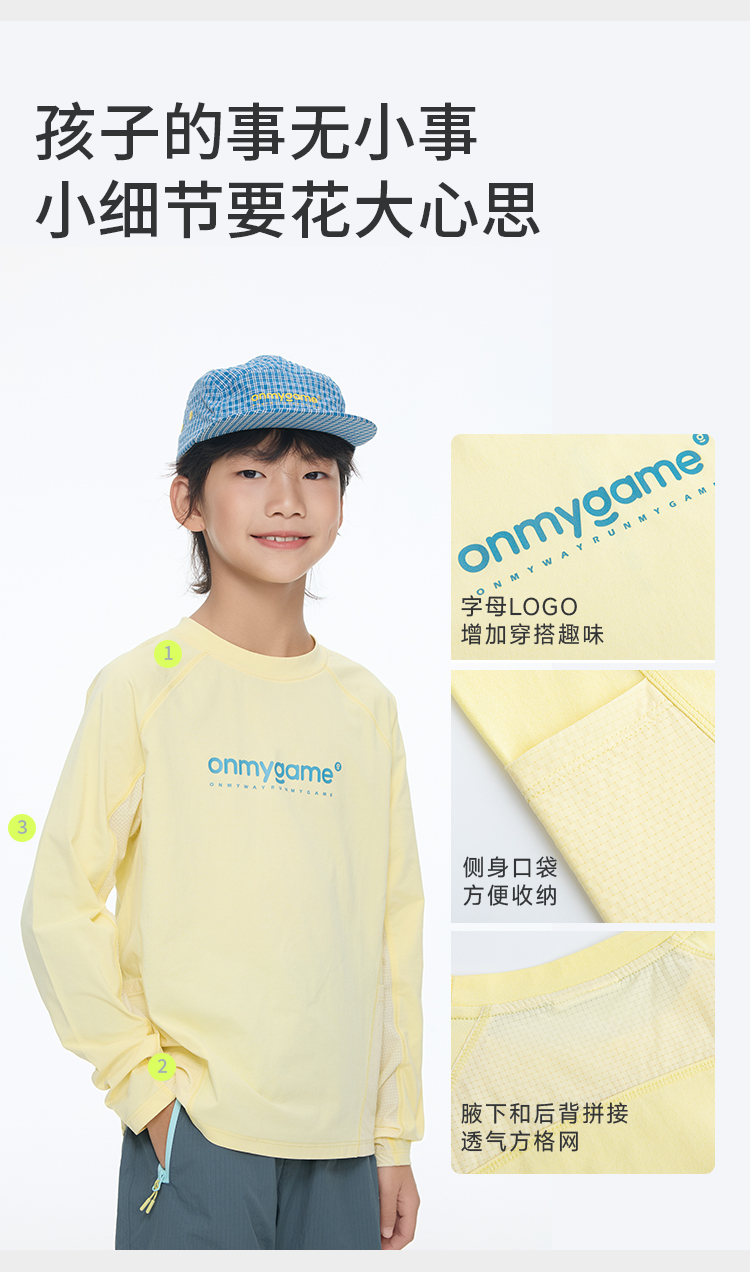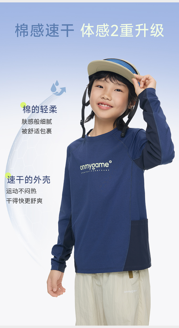 onmygame【棉感速干】儿童速干运动T恤儿童抗菌防晒长袖GQ11120050