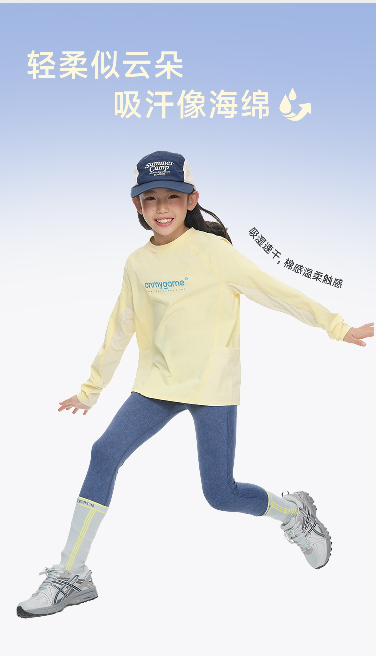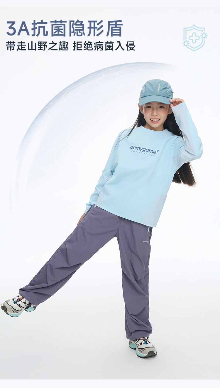 onmygame儿童专业运动品牌男女童款耐脏不易皱,柔软但不软踏