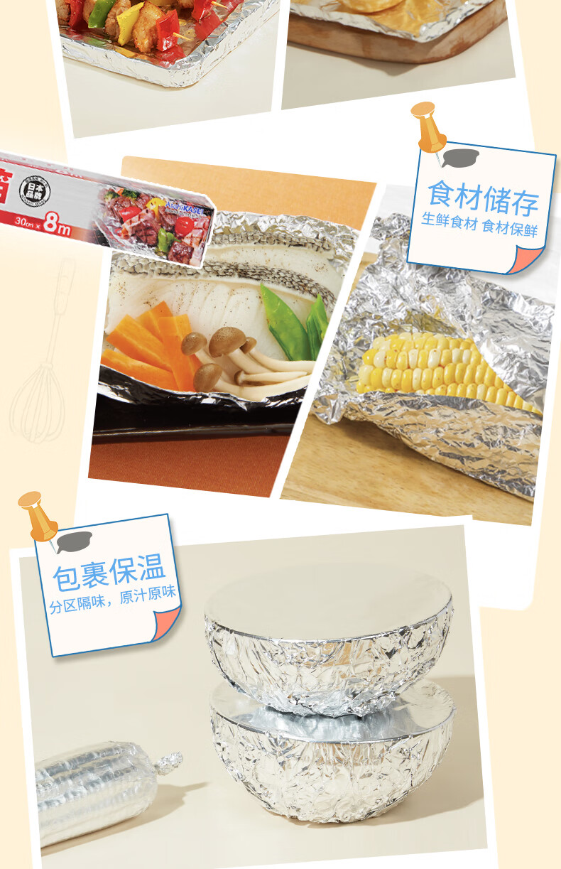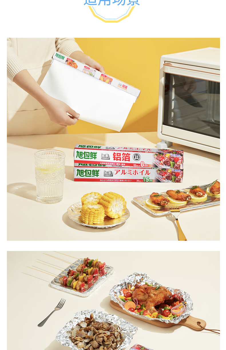 旭包鲜铝箔纸锡纸 日本一次性铝箔纸 加厚烧烤锡纸食品烹饪烤箱烤盘用纸 烘培铝箔套装:烘培纸+铝箔纸_MW