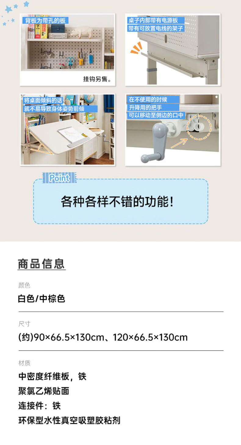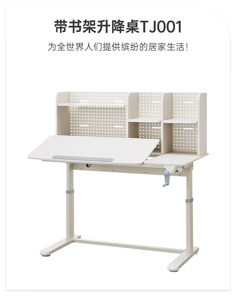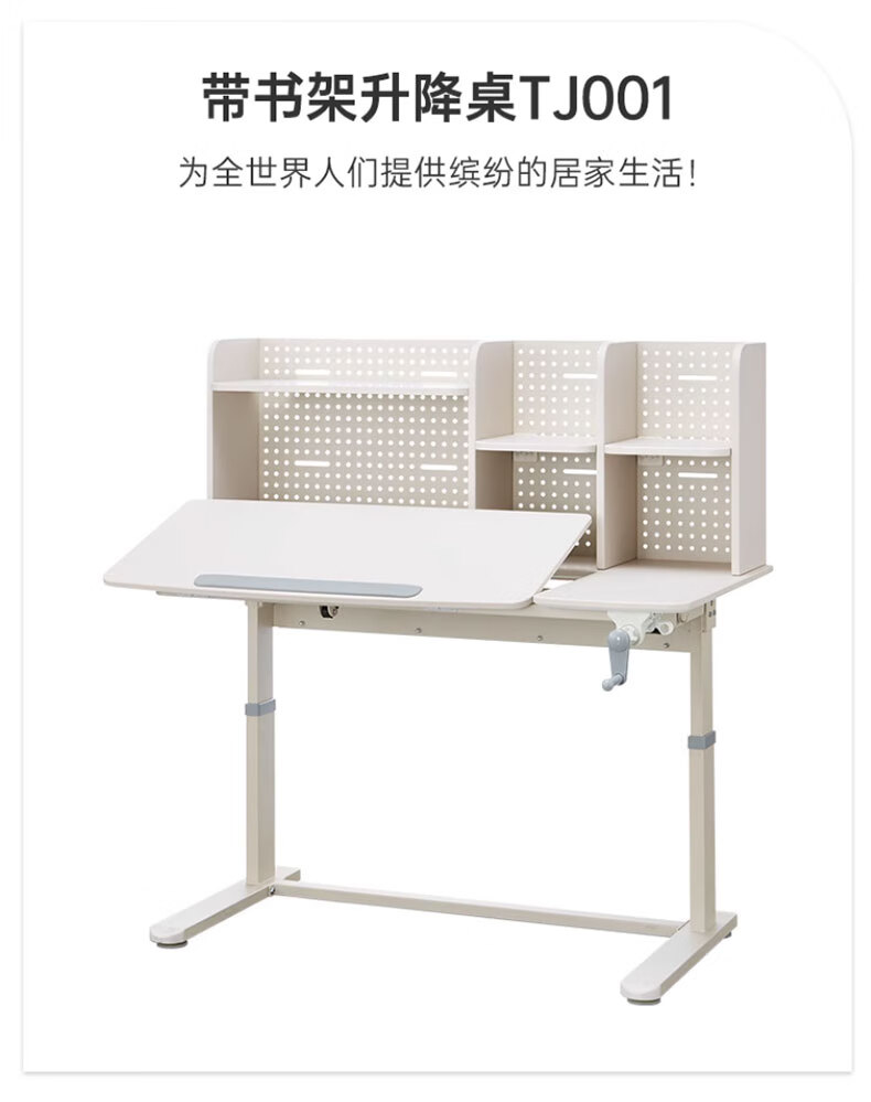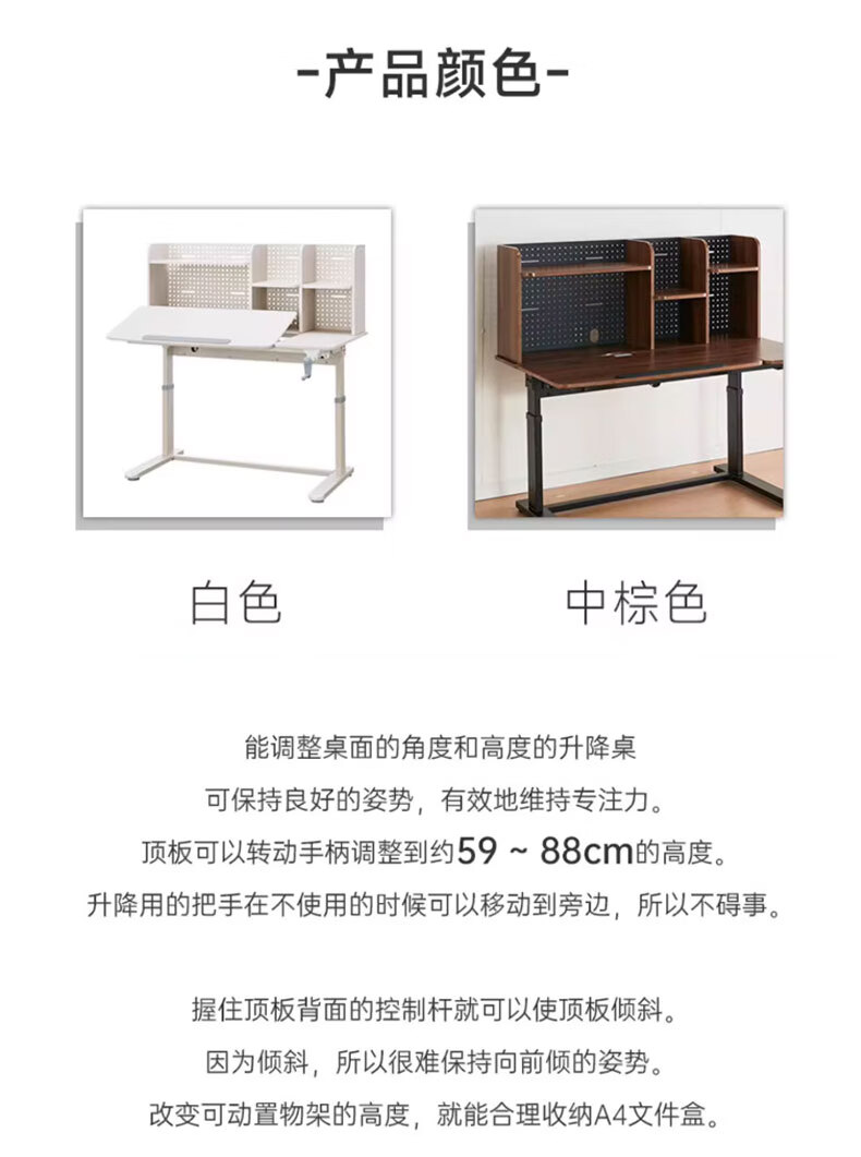 【家具】带书架升降桌TJ001 宽约90/120cm 白色/中棕
