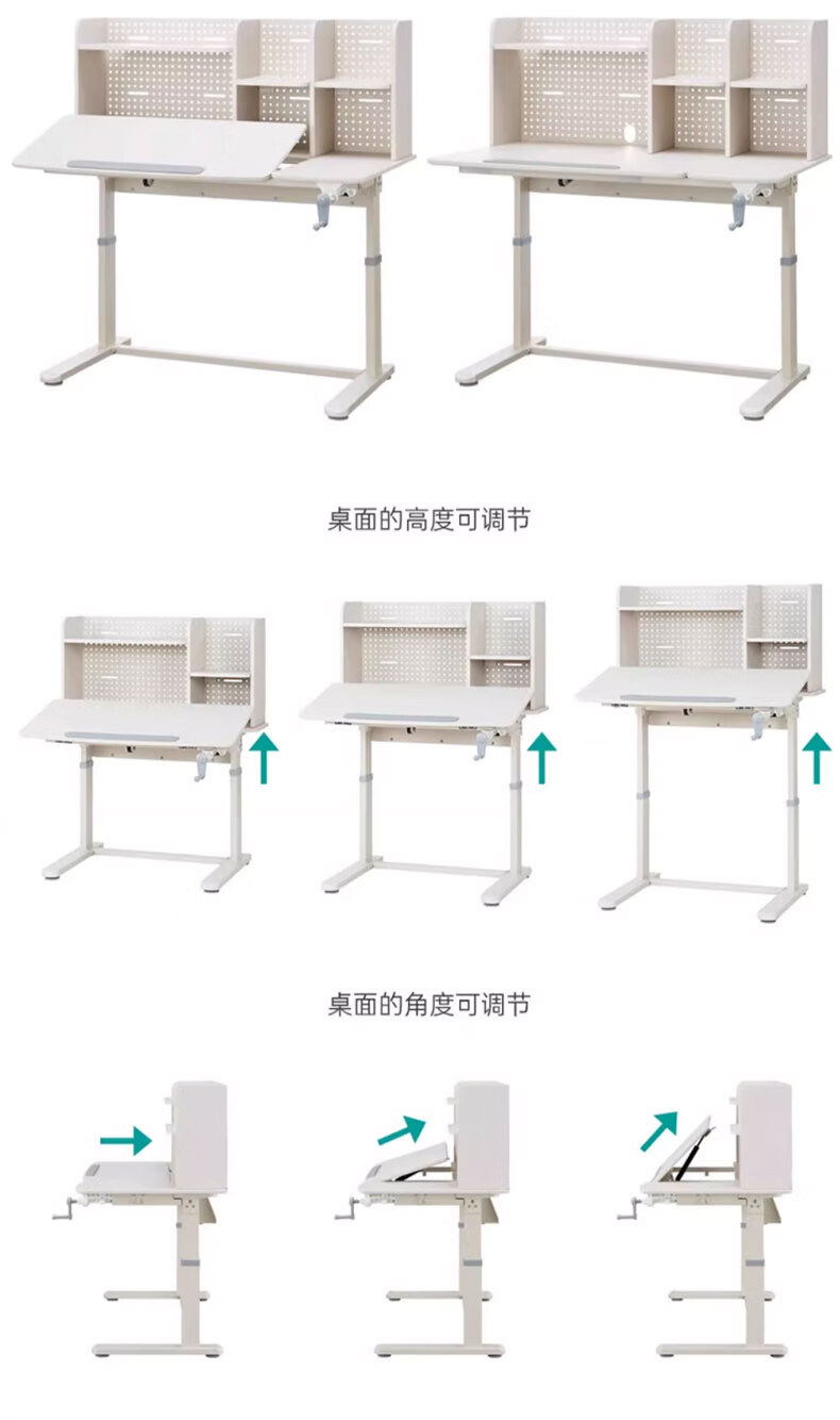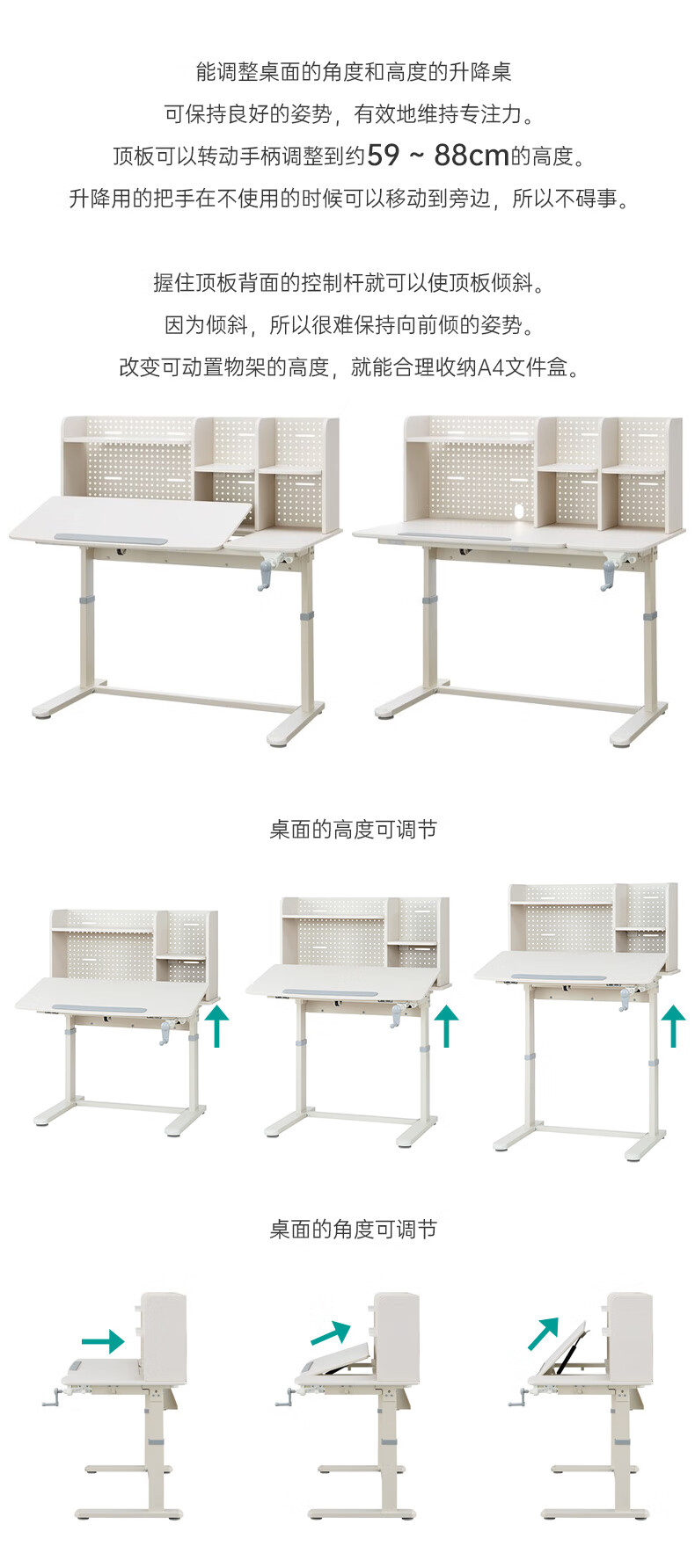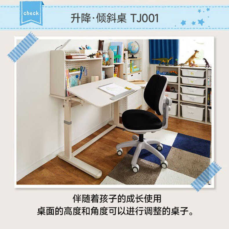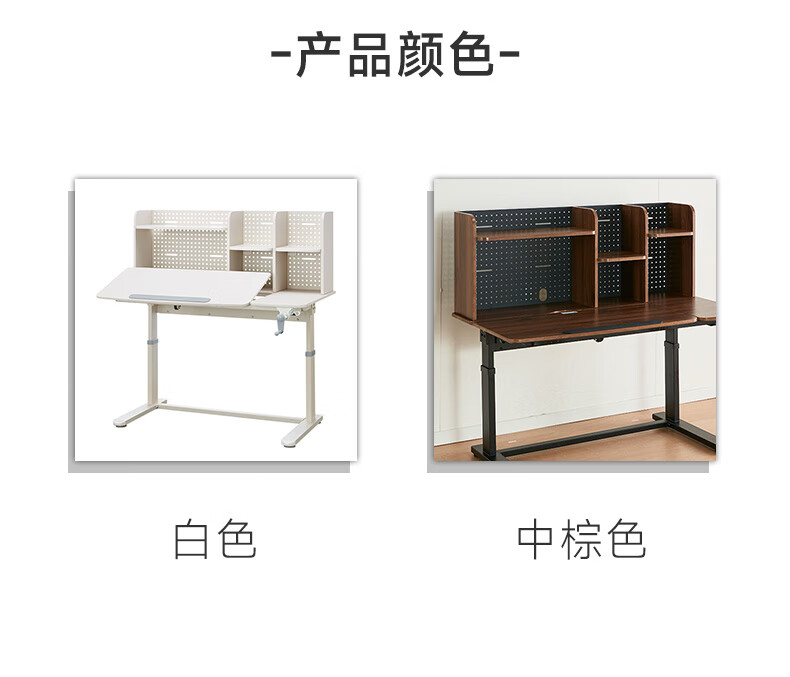【家具】带书架升降桌TJ001 宽约90/120cm 白色/中棕