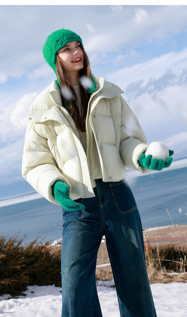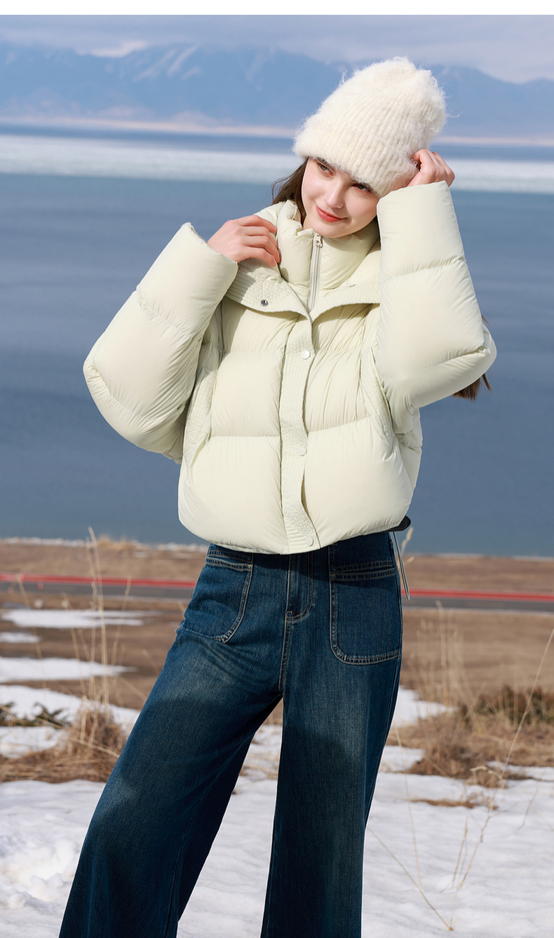 【90白鹅绒】三彩2025冬季新款防水易打理羽绒服短款面包服M
