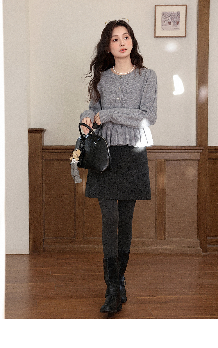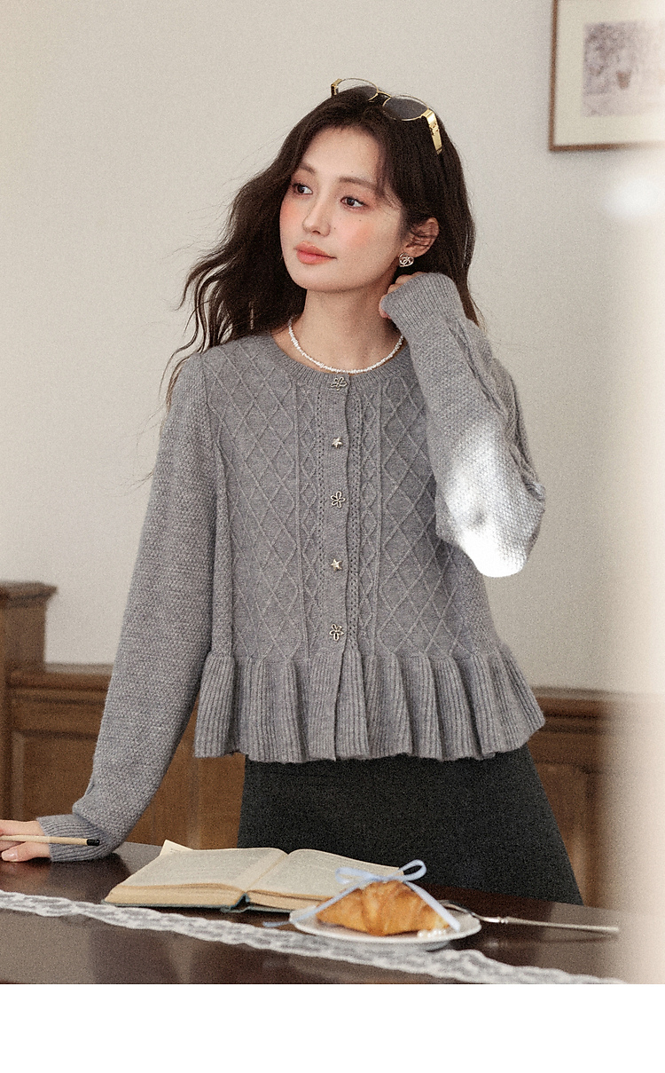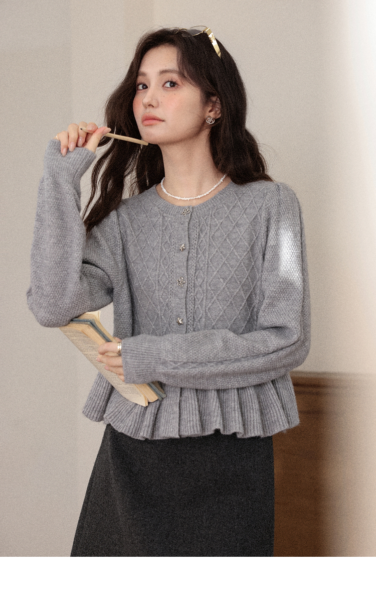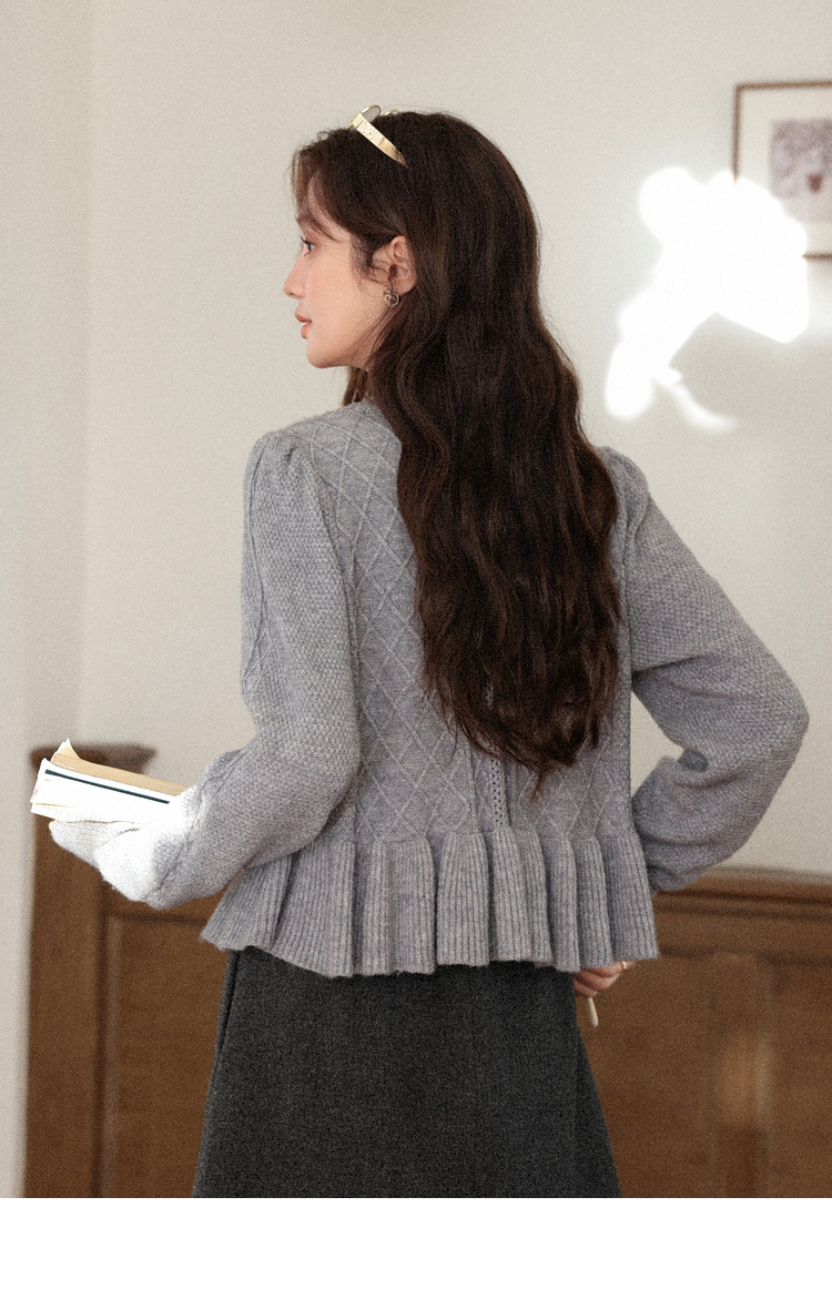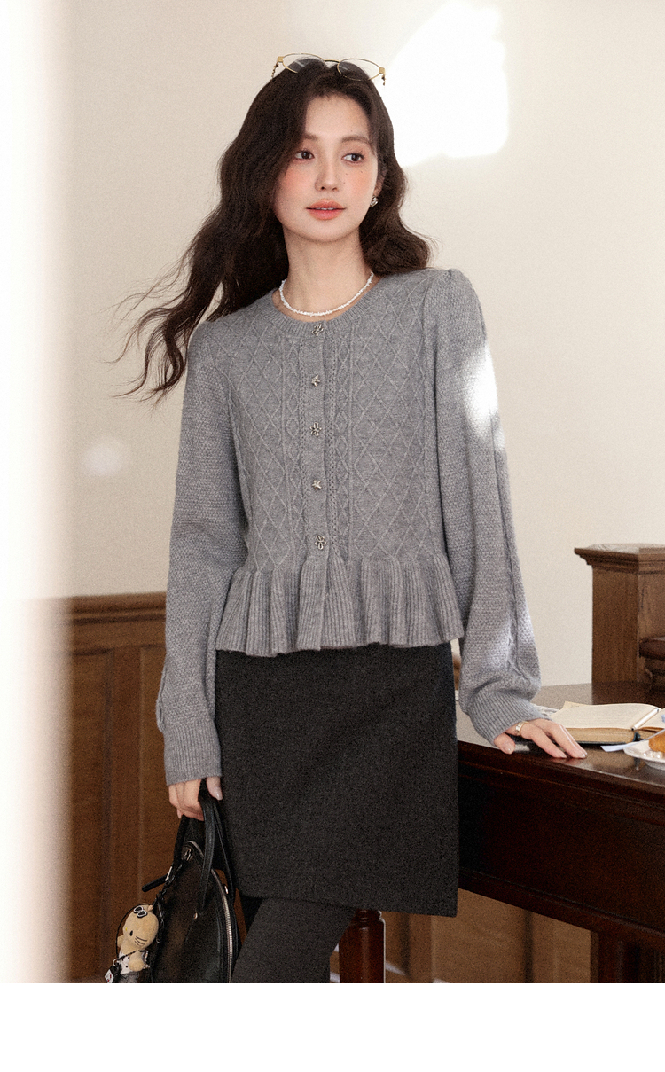 鹿向南「星河鹭起」法式灰色长袖毛衣秋冬新款百搭气质短款上衣女