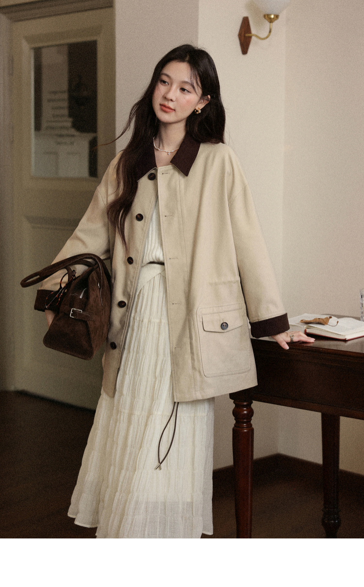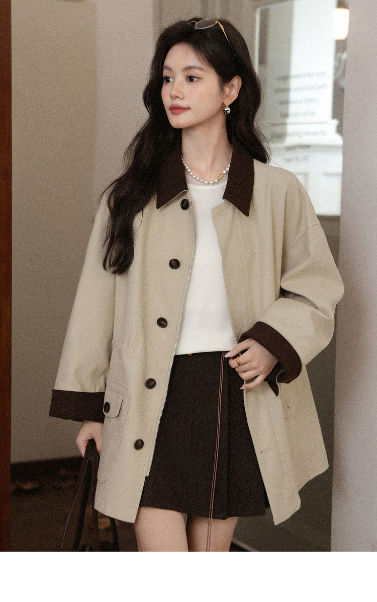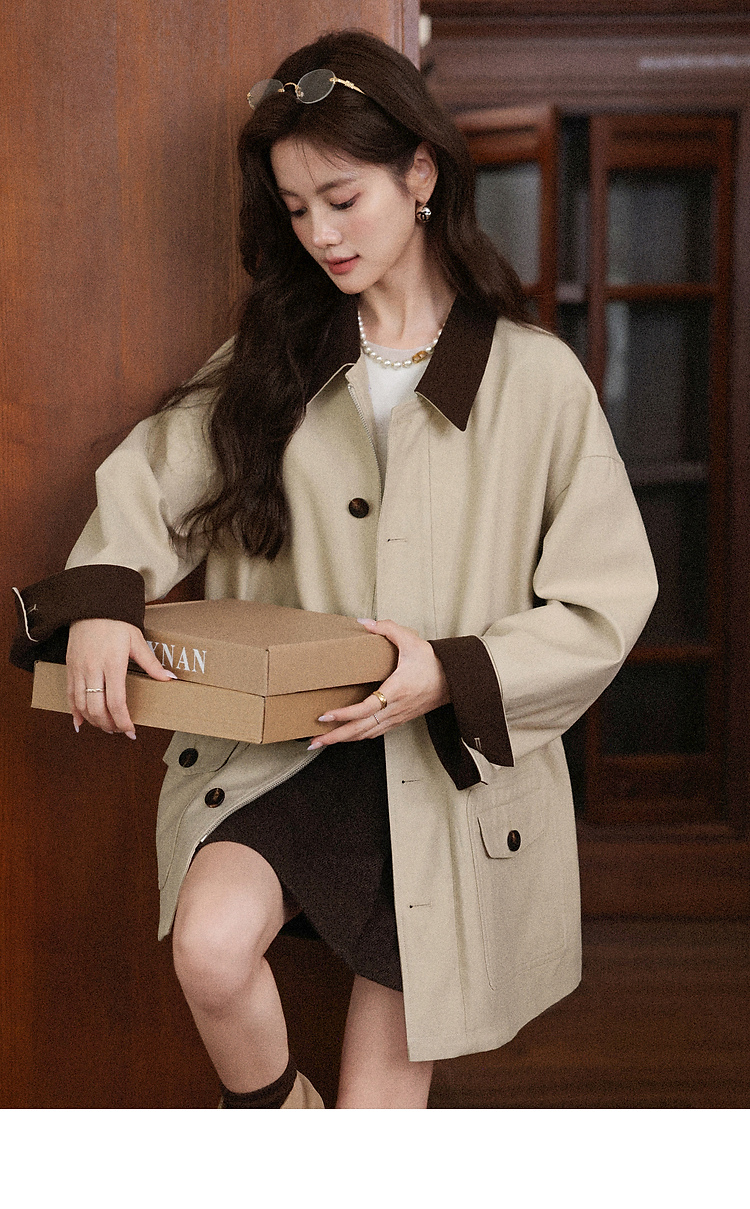鹿向南「桂畔时光」卡其色拼色休闲风衣秋季新款高级感通勤外套女