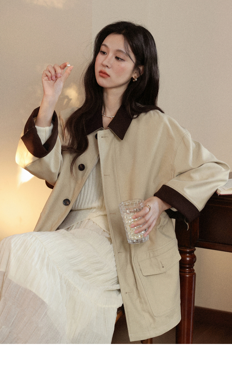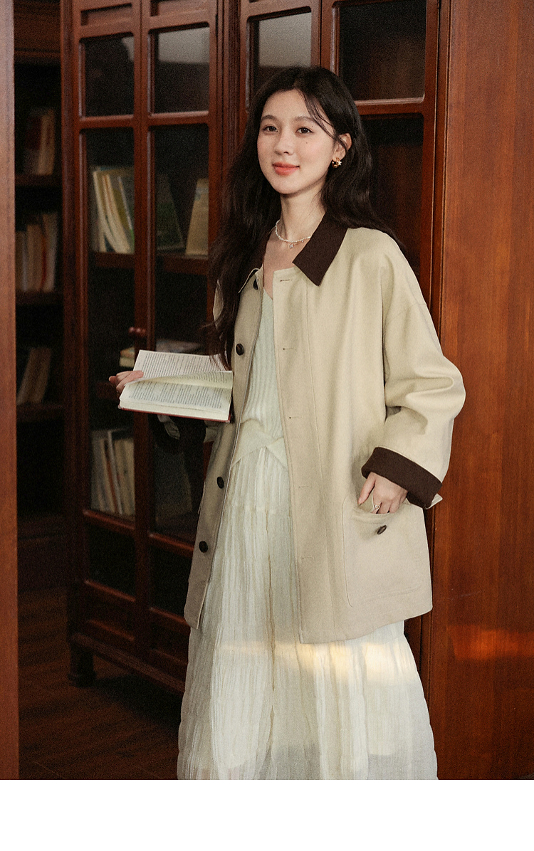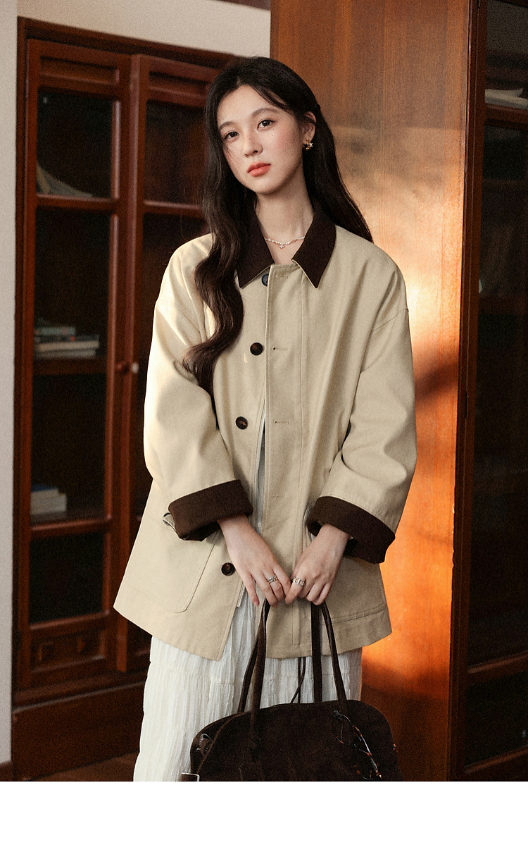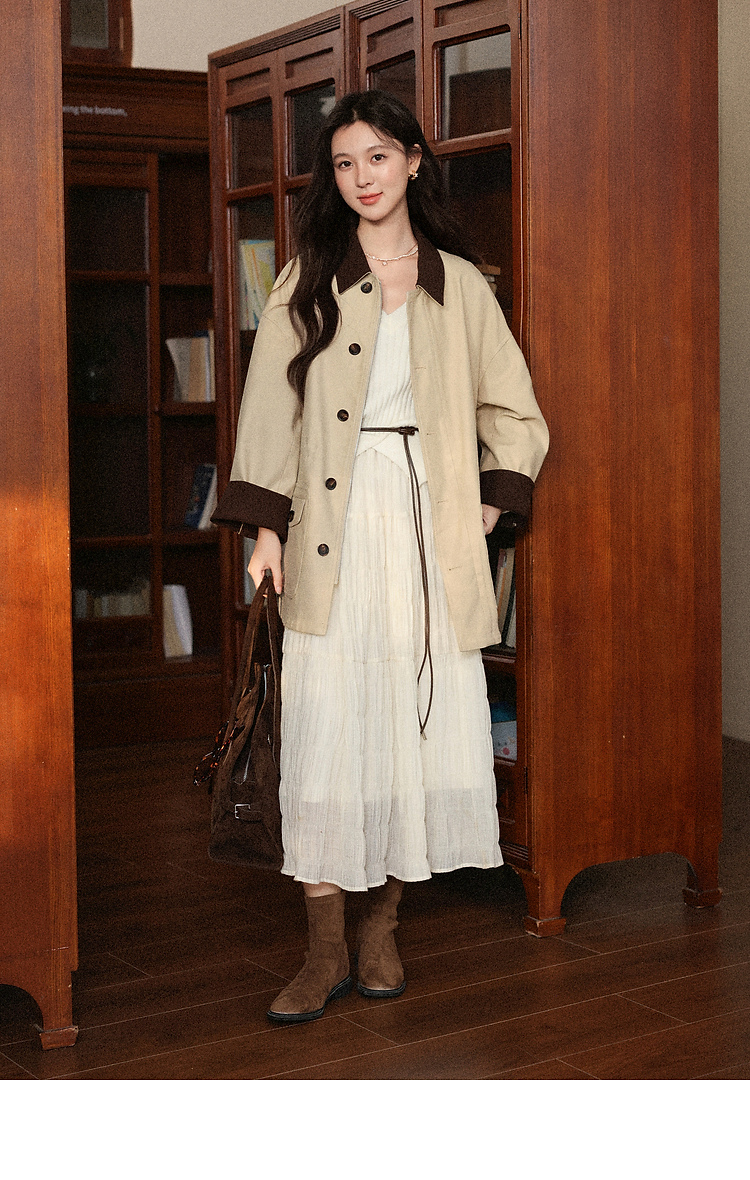 鹿向南「桂畔时光」卡其色拼色休闲风衣秋季新款高级感通勤外套女
