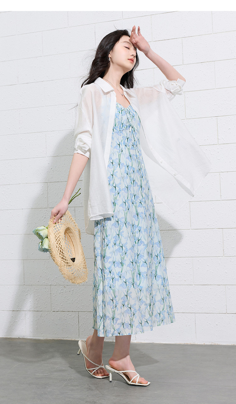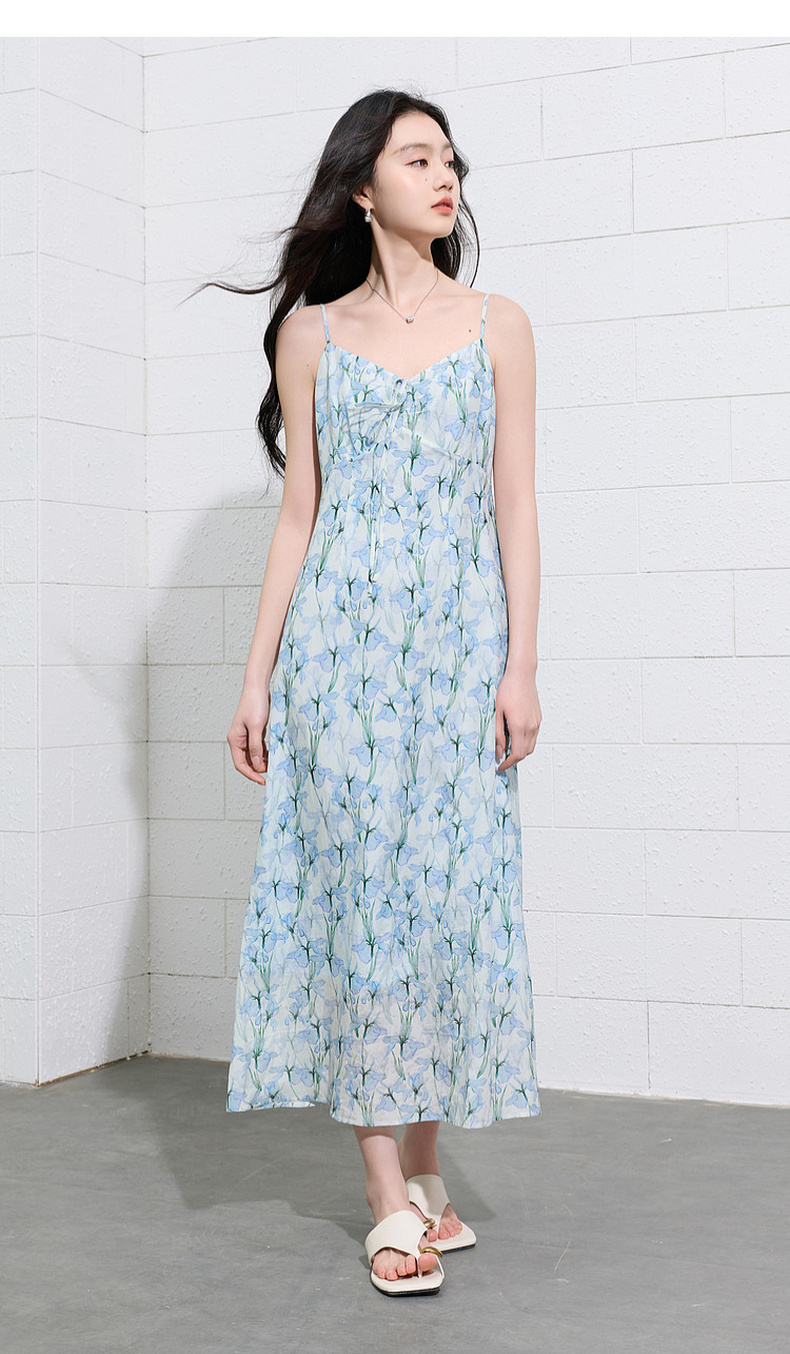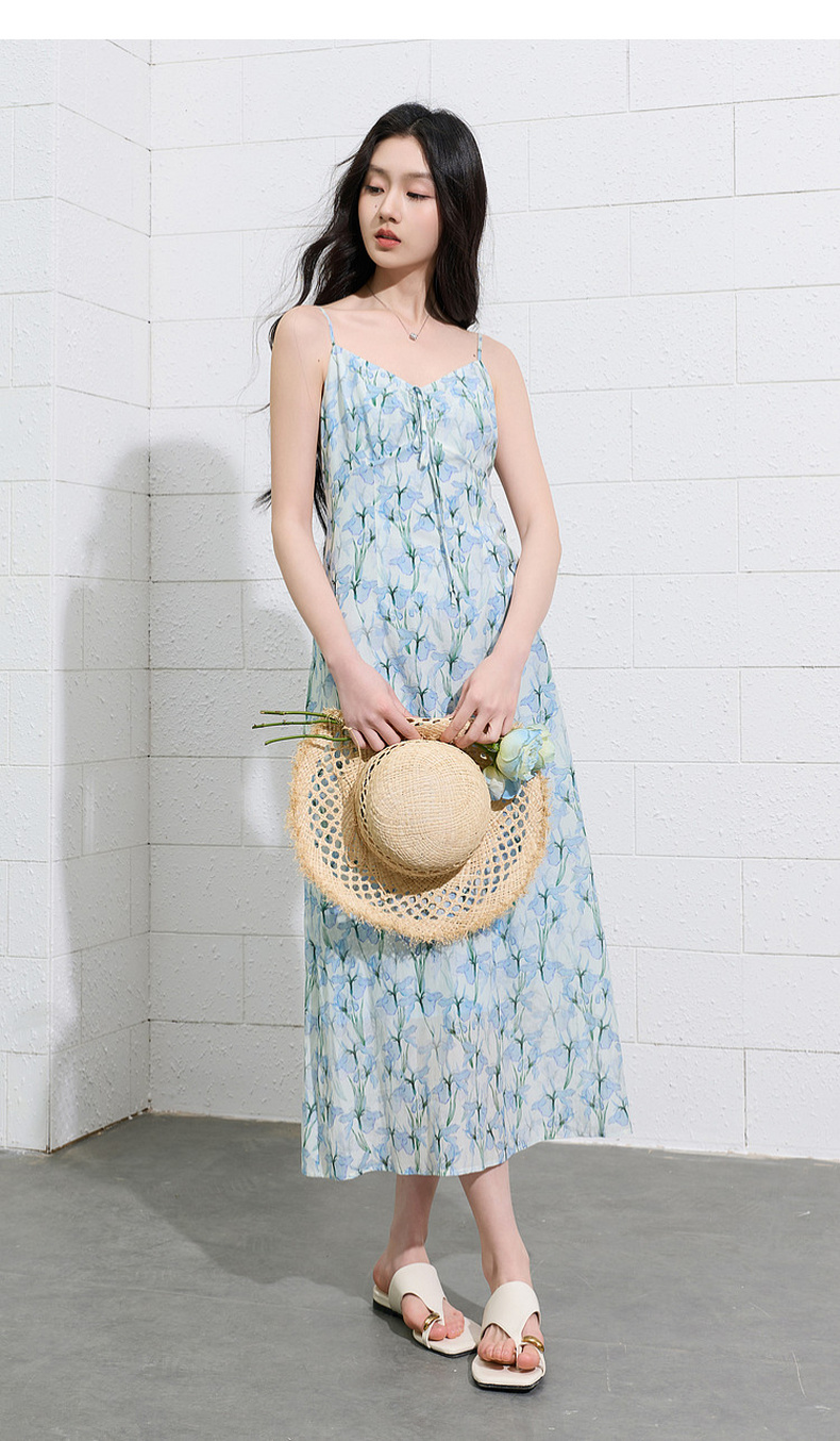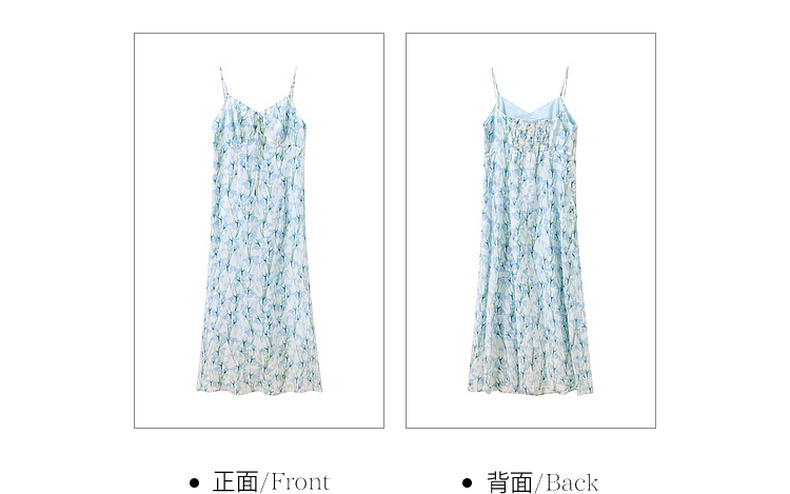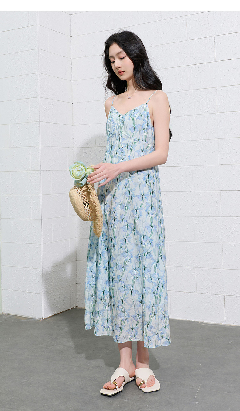 【桑蚕丝】三彩2026夏季新款碎花吊带裙连衣裙无袖A字裙长裙S