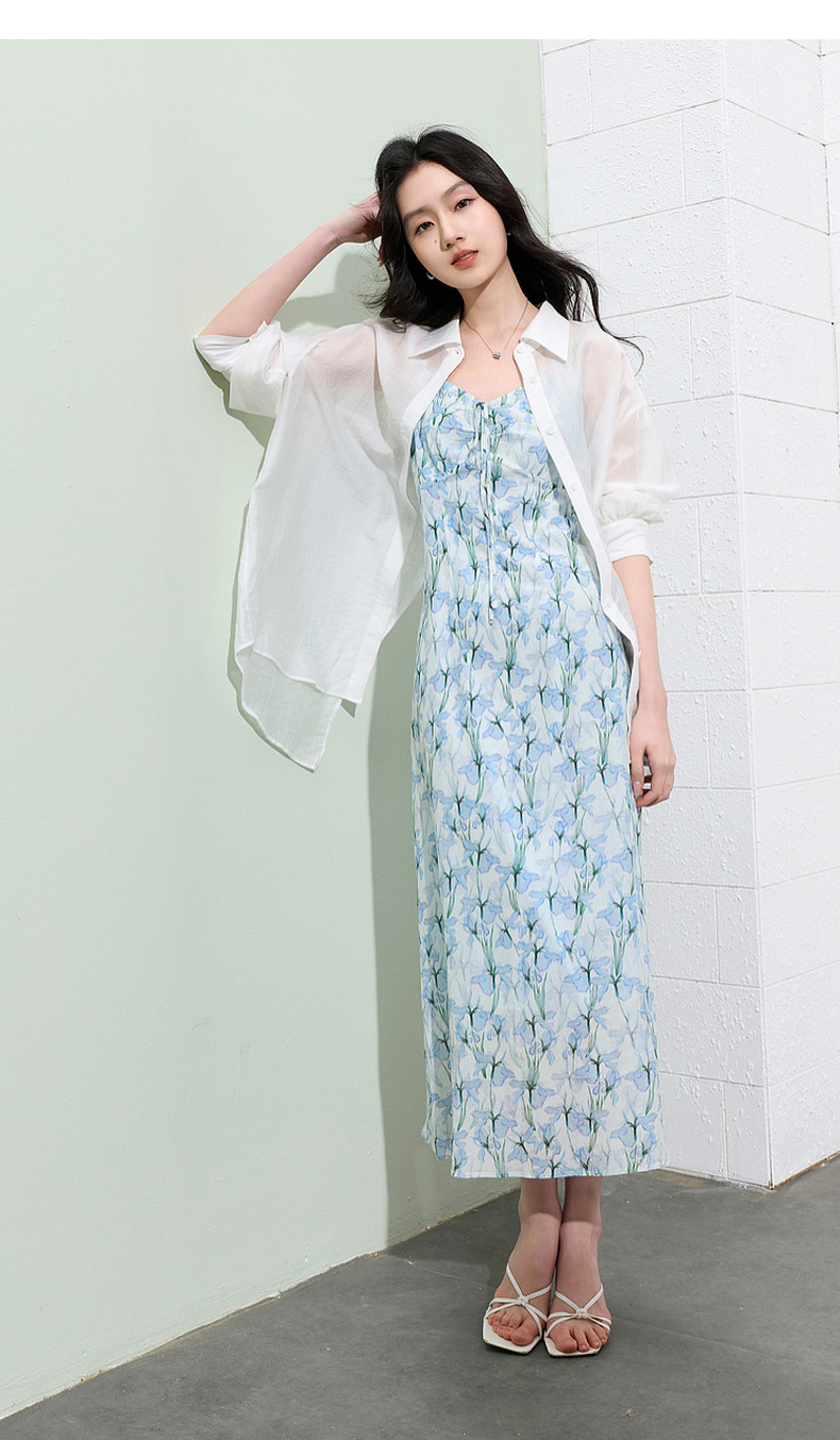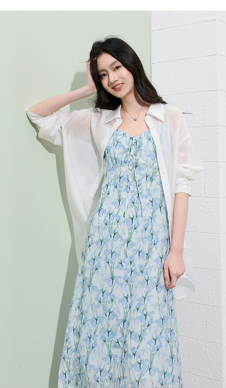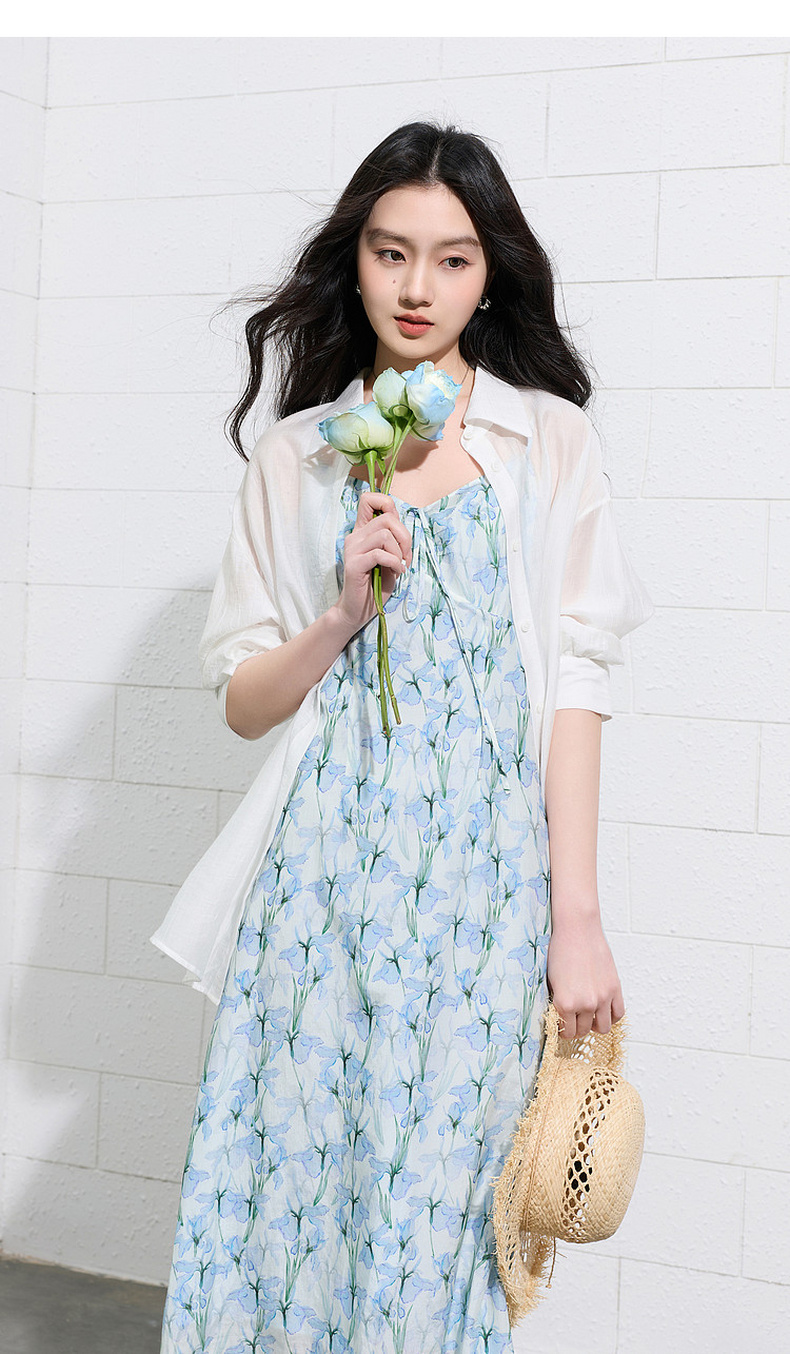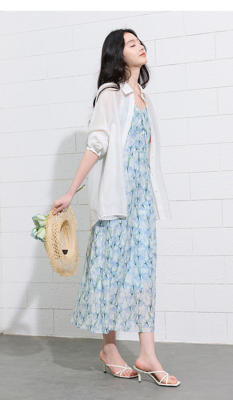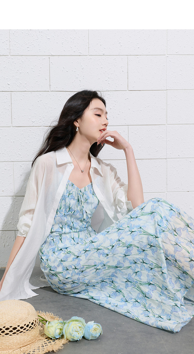 【桑蚕丝】三彩2026夏季新款碎花吊带裙连衣裙无袖A字裙长裙S
