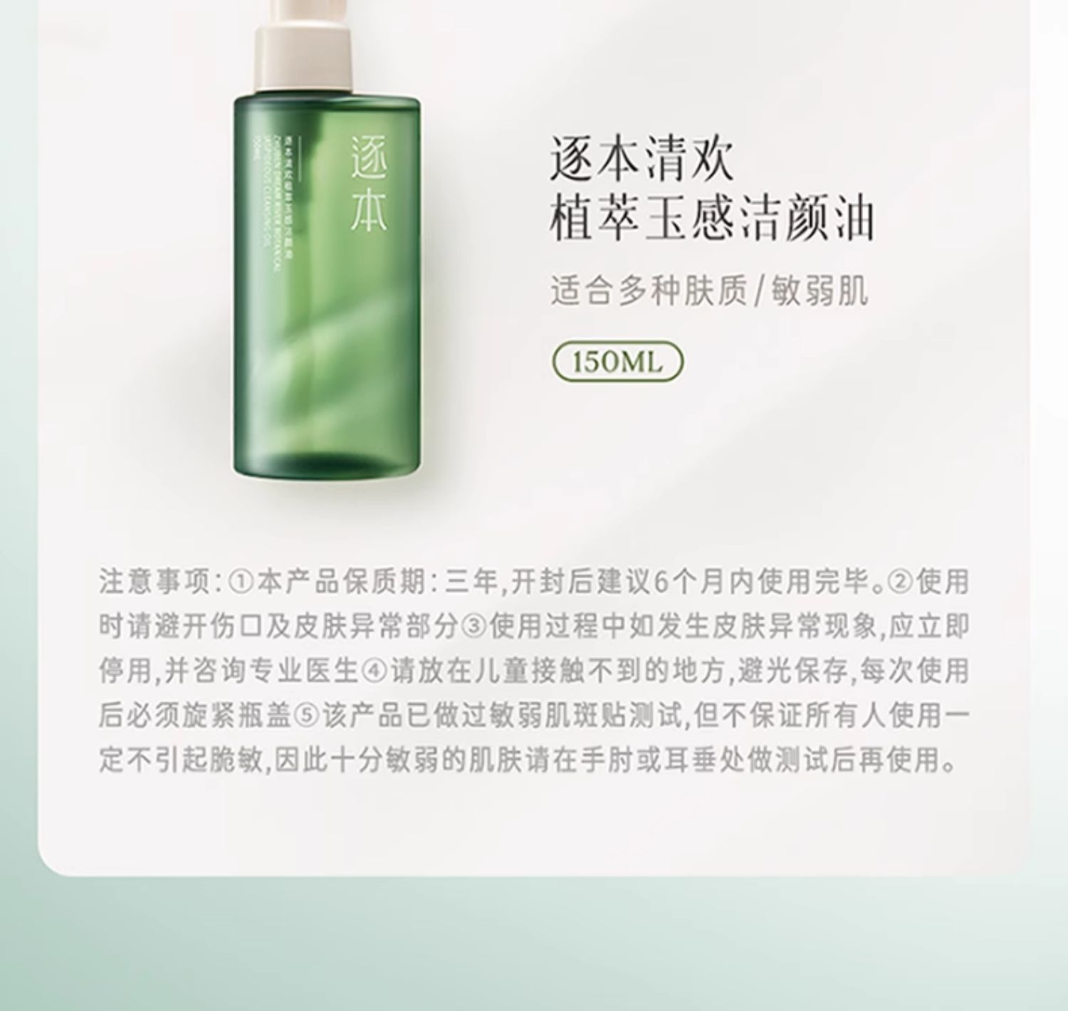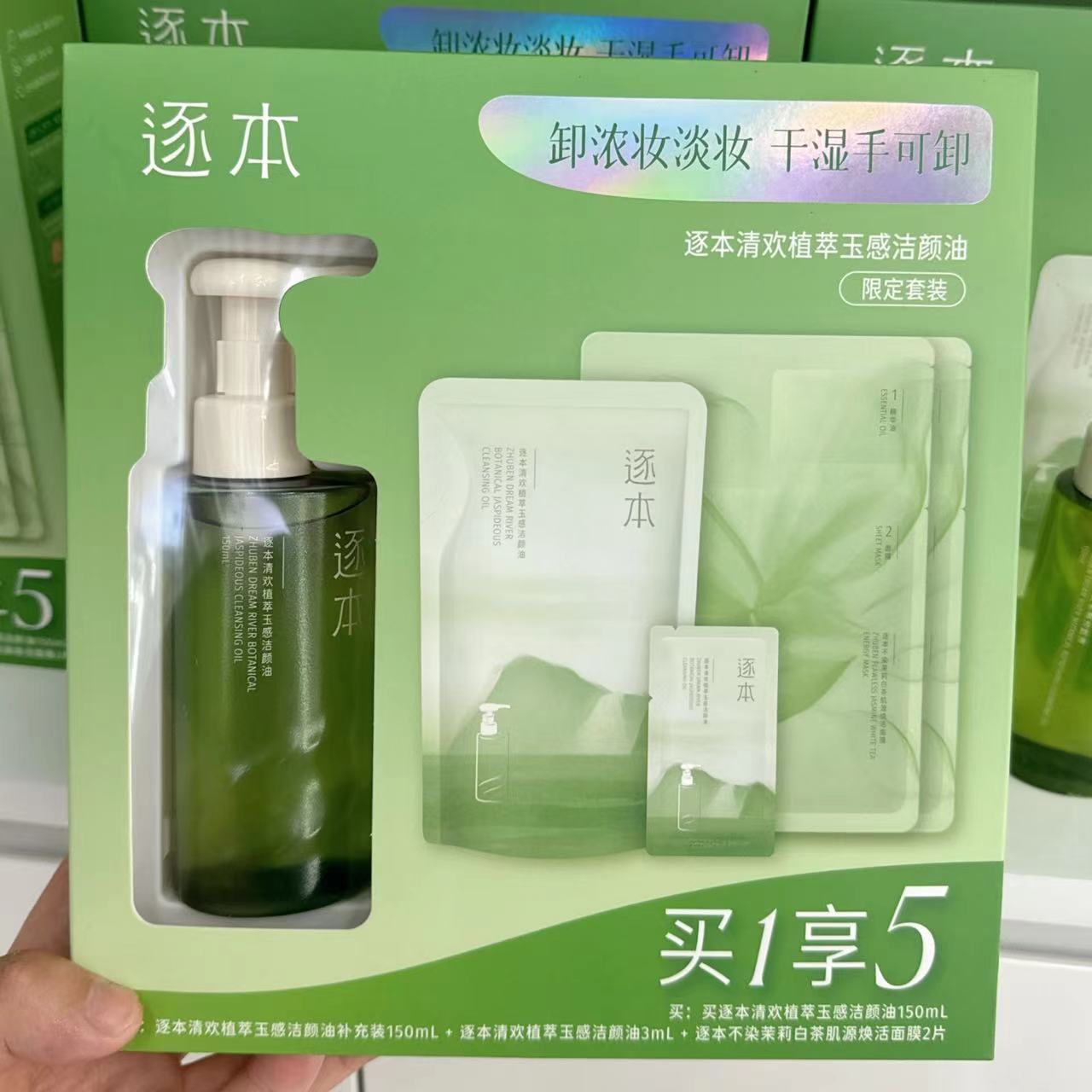 【5件套】逐本清欢植萃玉感洁颜油套盒(正装150ml/瓶+补充袋装150ml/袋+小样3ml/袋+白茶肌源焕活面膜/片*2)