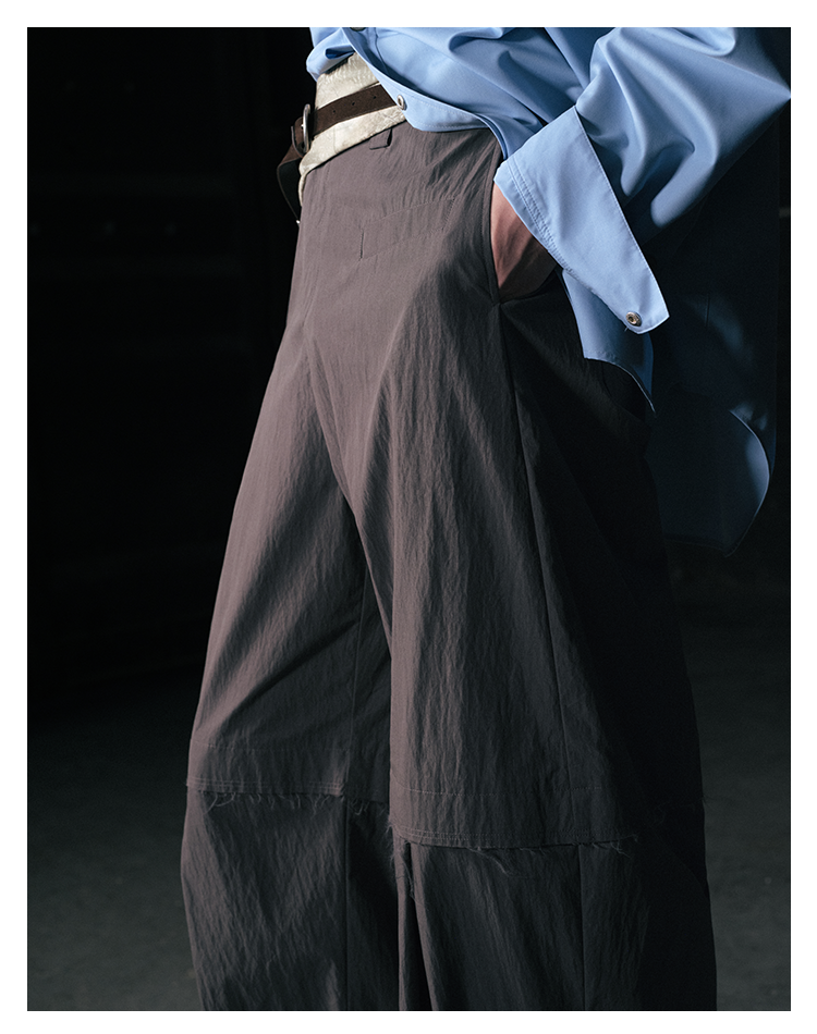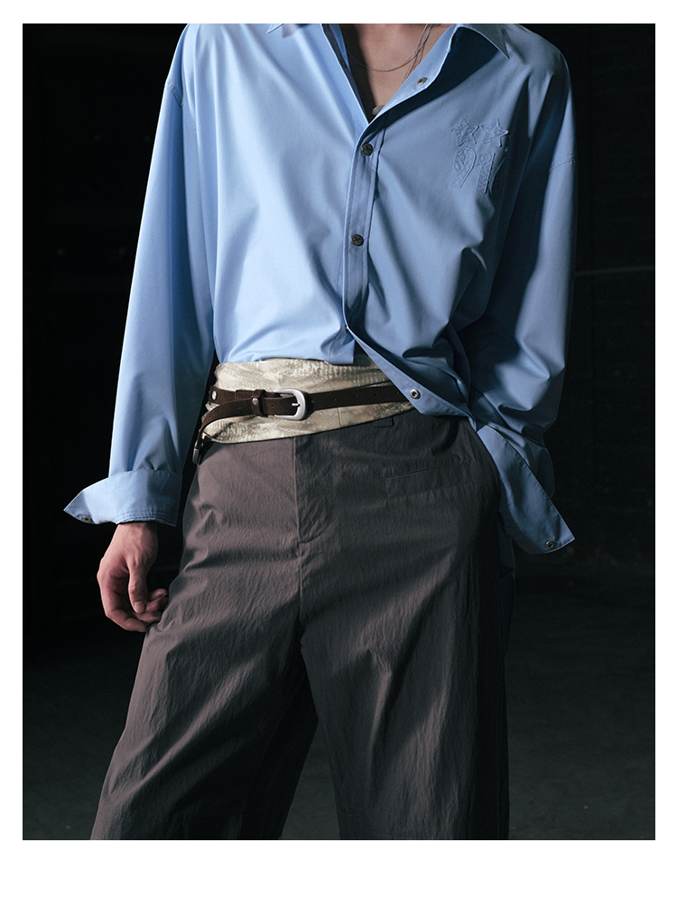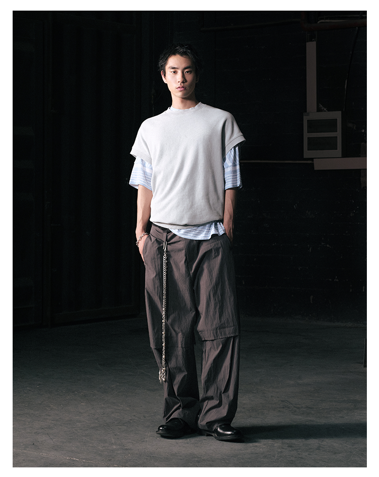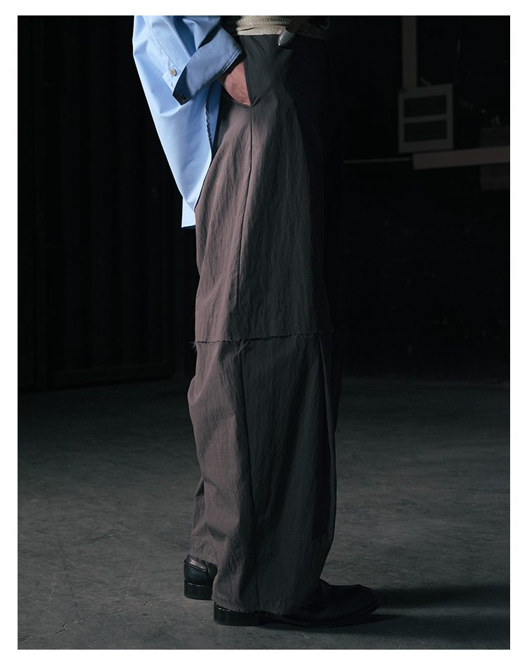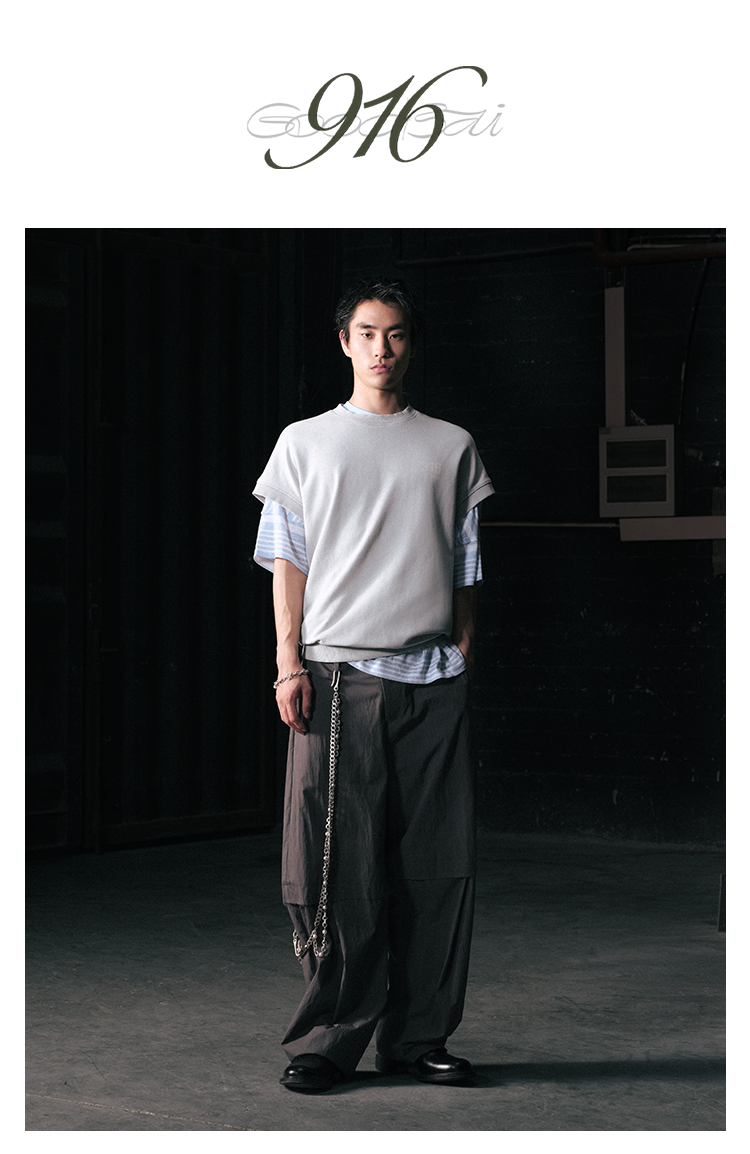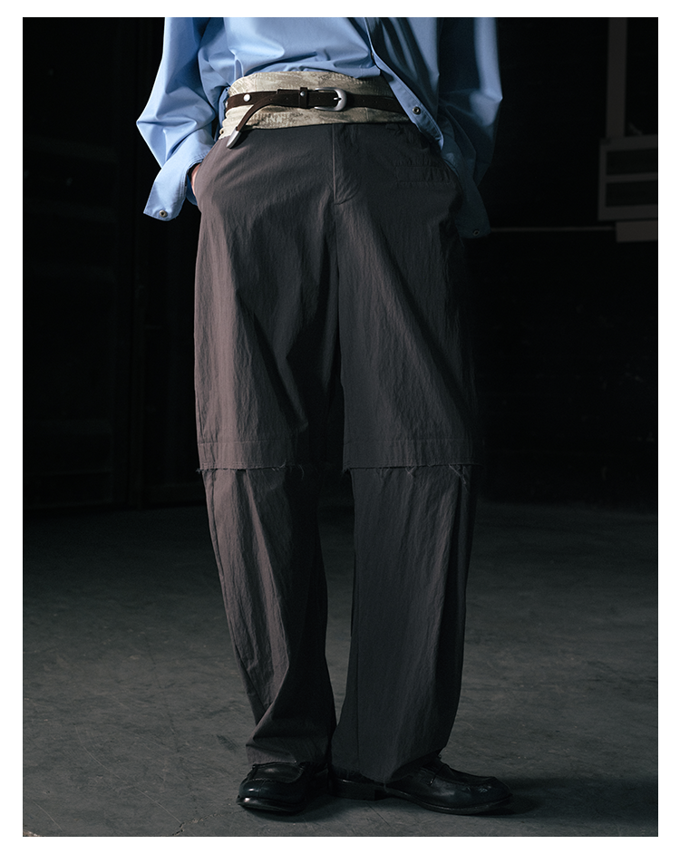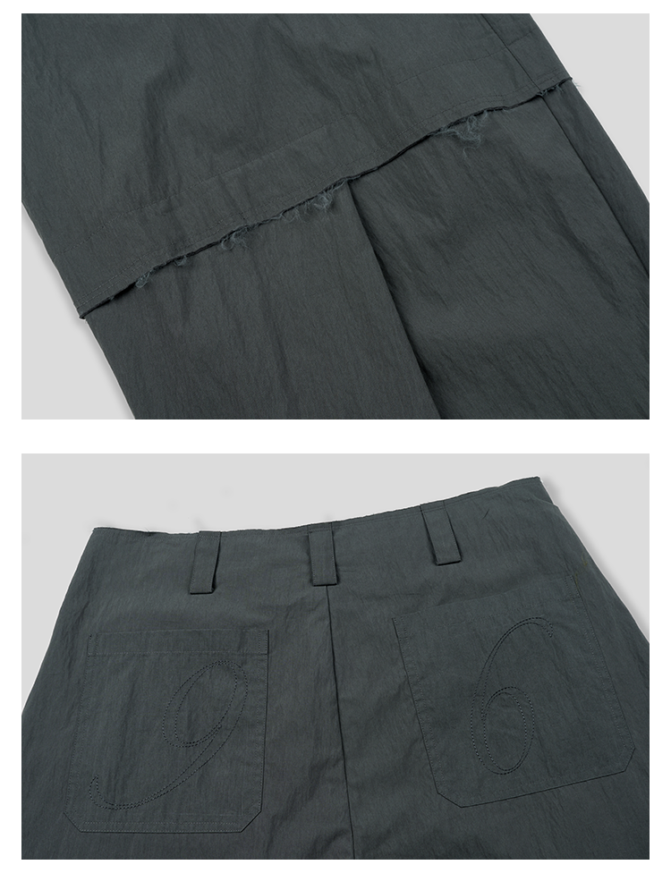 GOODBAI 916 刺绣logo同色拼接毛边直筒休闲裤