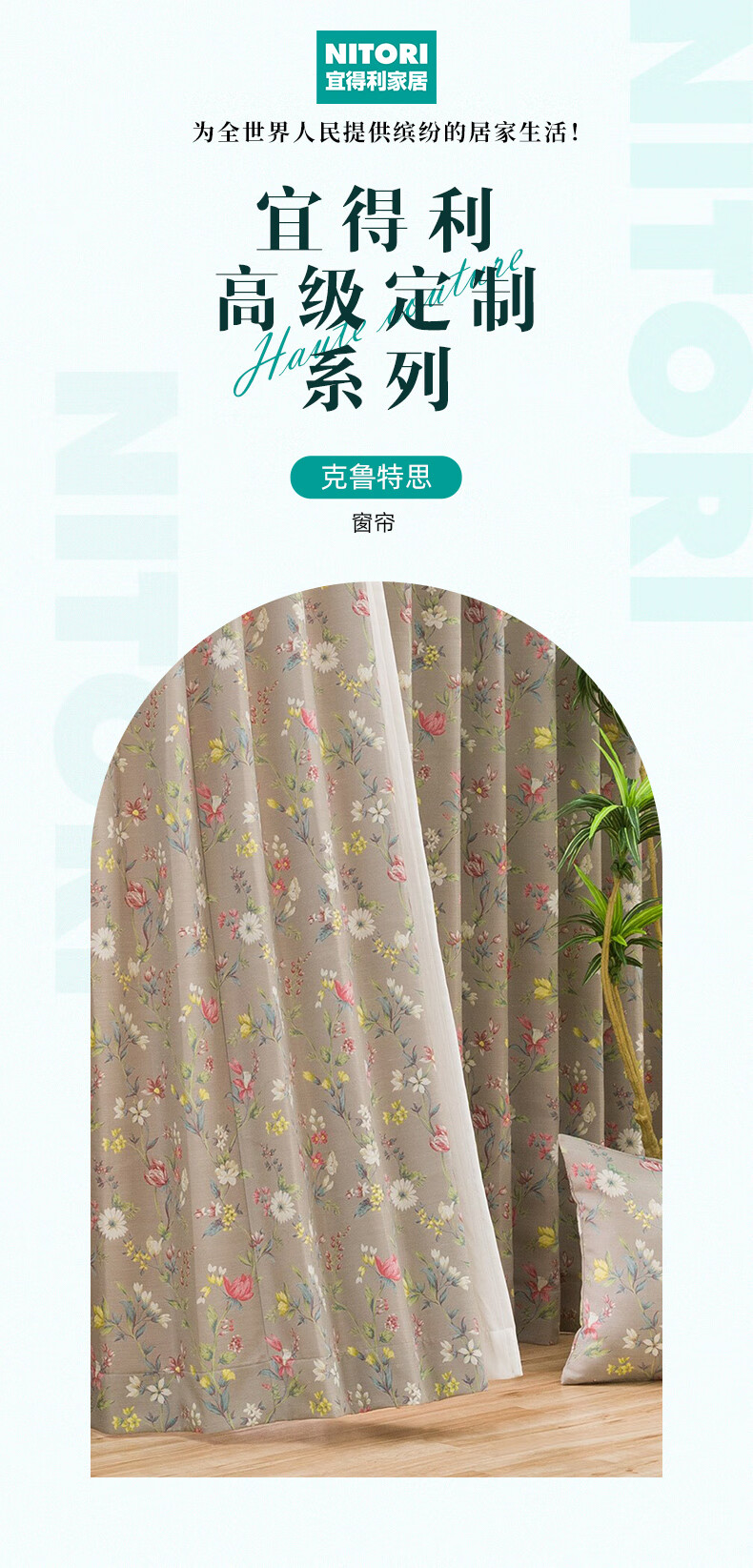 NITORI宜得利家居 日本进口新款现代简约全屋客厅NT定制窗帘 克鲁特思