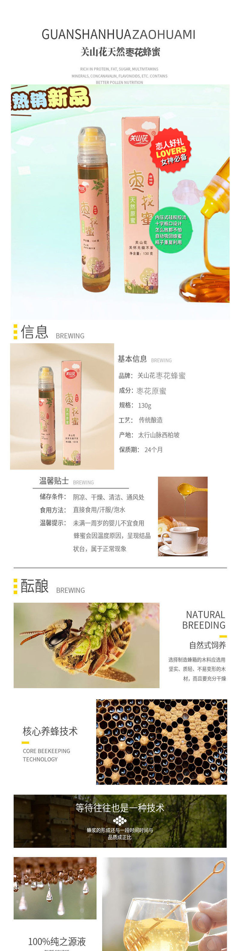 关山花 西柏坡特产便携装枣花蜜 130克x6瓶 休闲零食