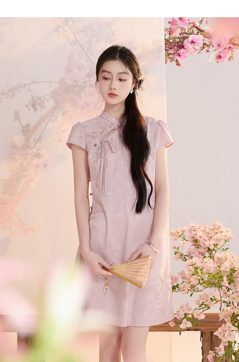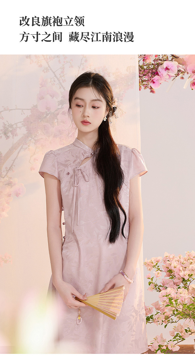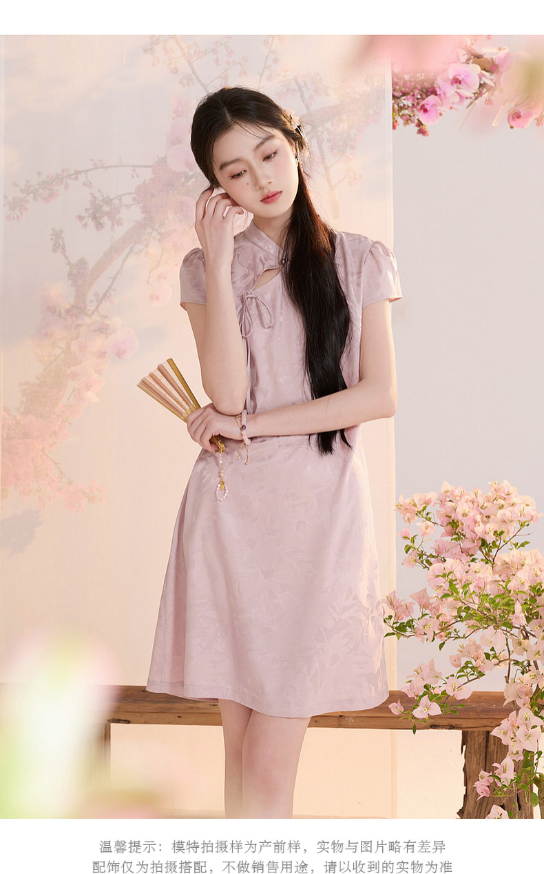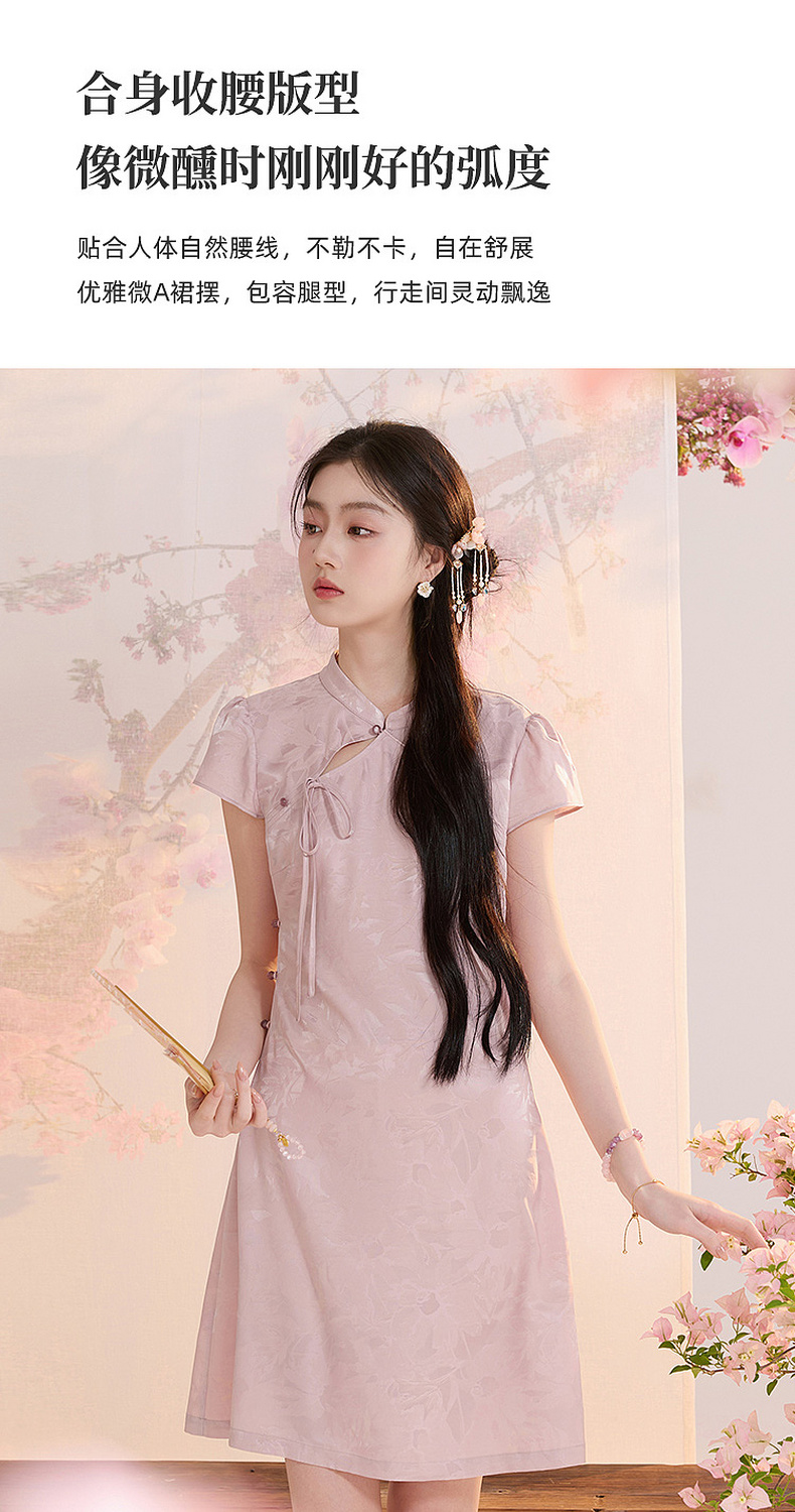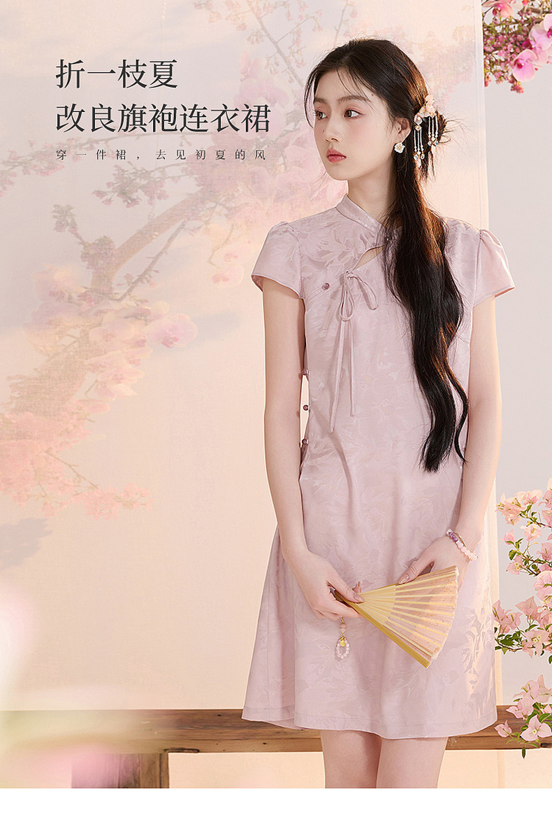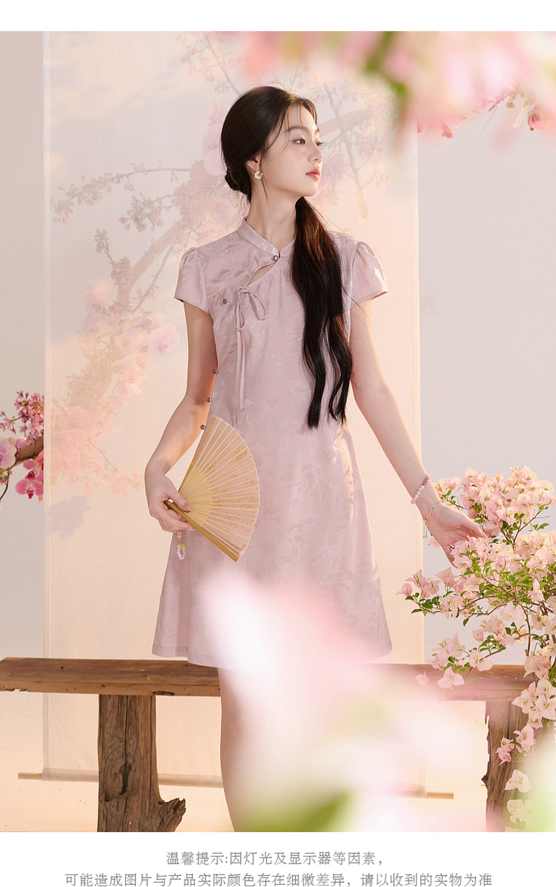 【花晨月夕】三彩2026夏季新款立领收腰连衣裙新中式短袖A字裙C