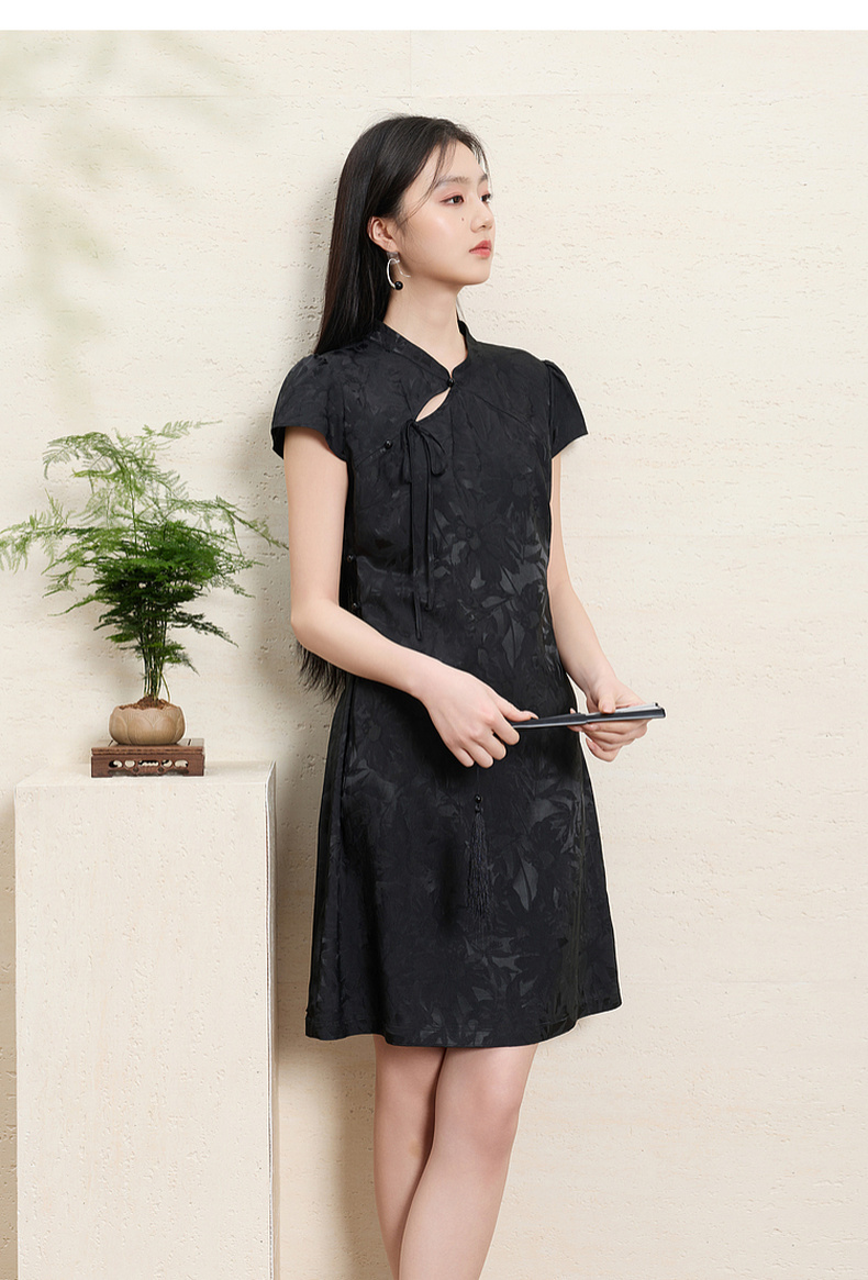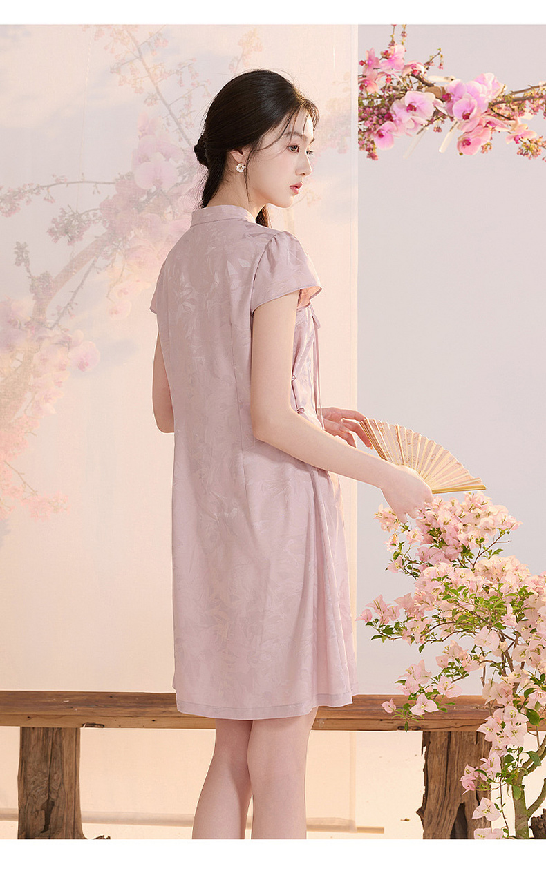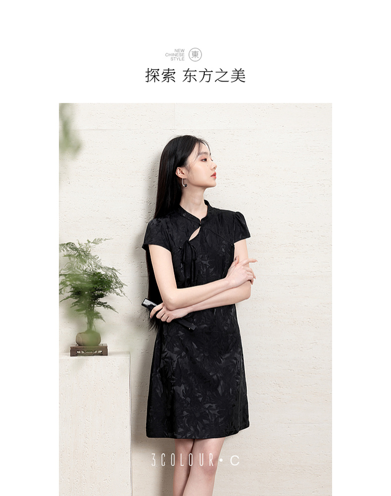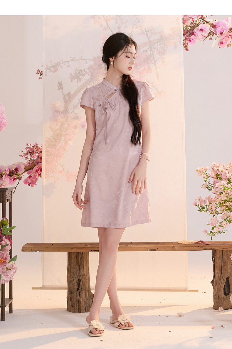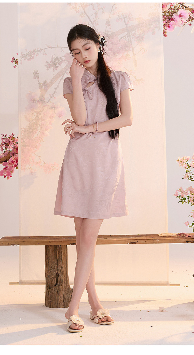 【花晨月夕】三彩2026夏季新款立领收腰连衣裙新中式短袖A字裙C