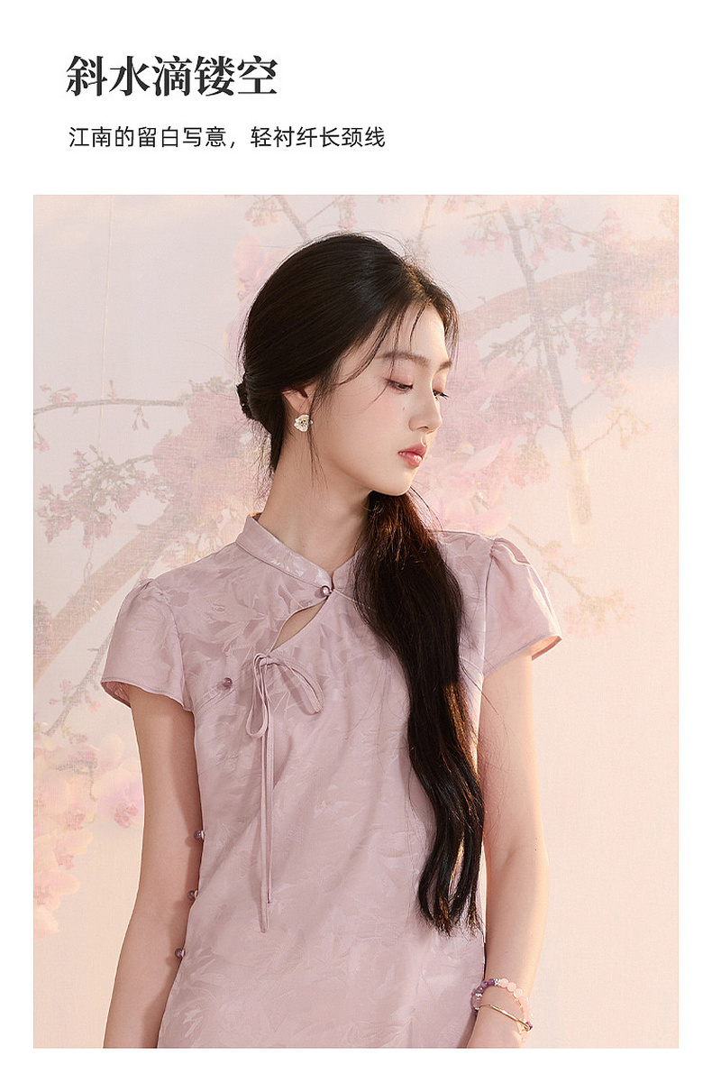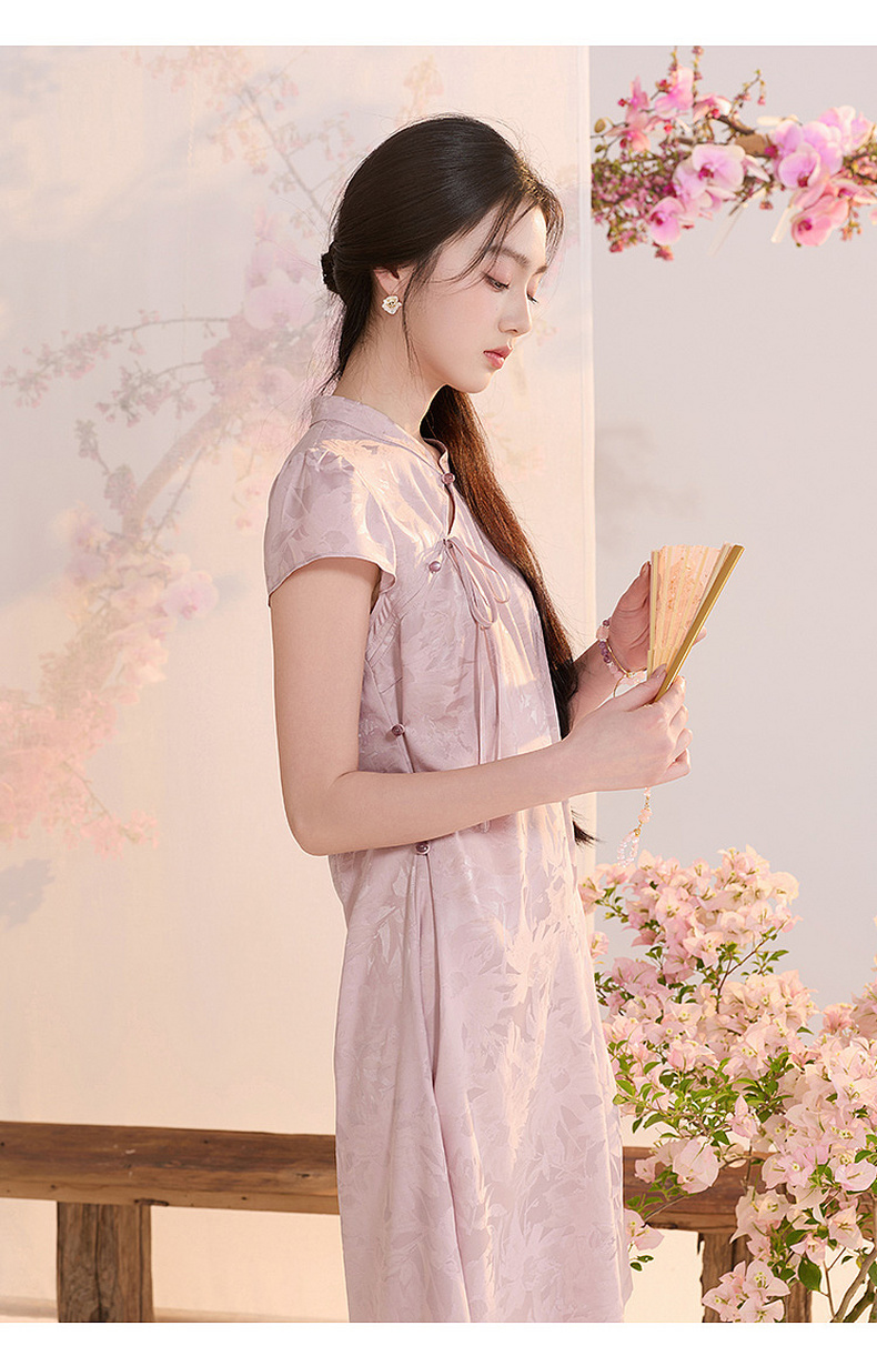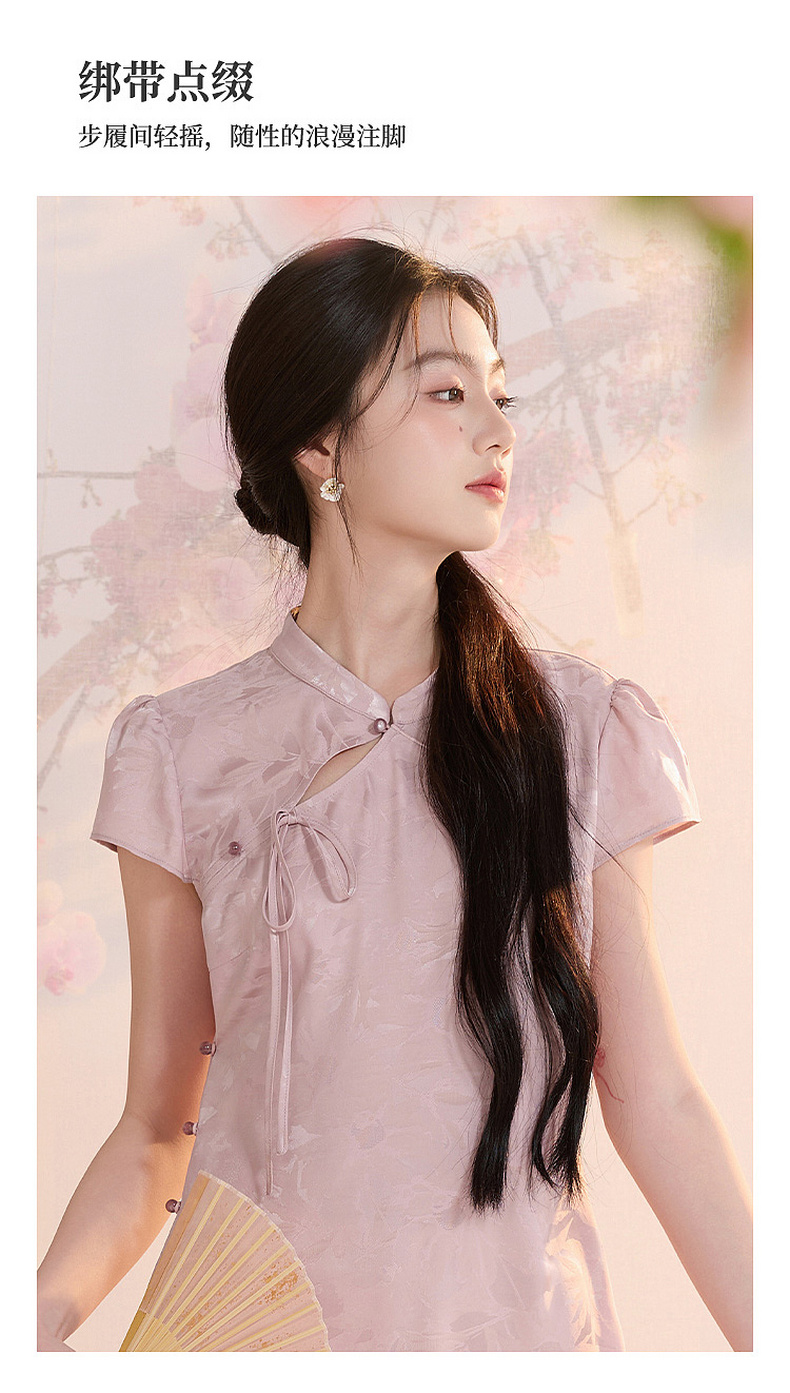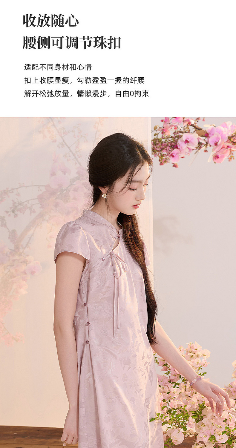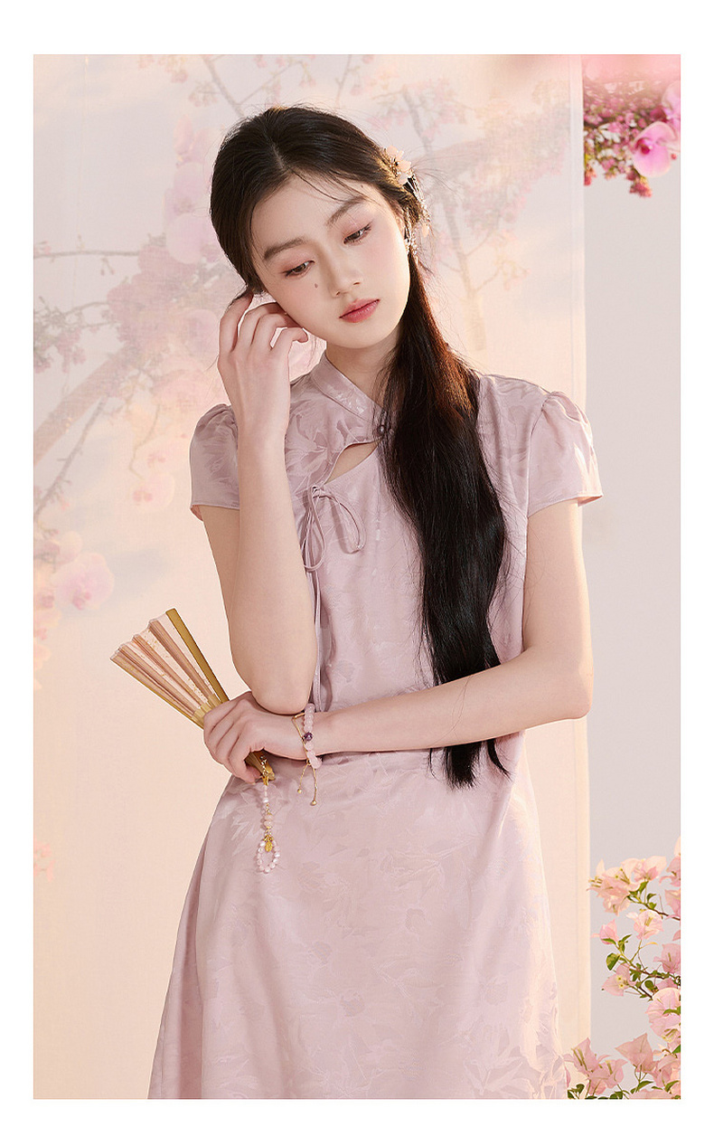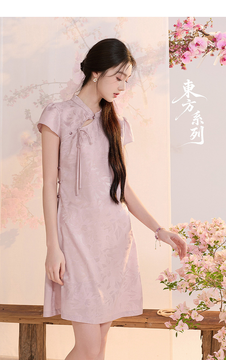 【花晨月夕】三彩2026夏季新款立领收腰连衣裙新中式短袖A字裙C