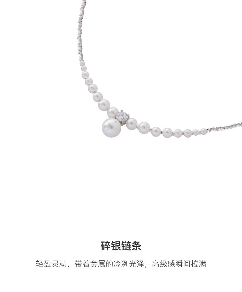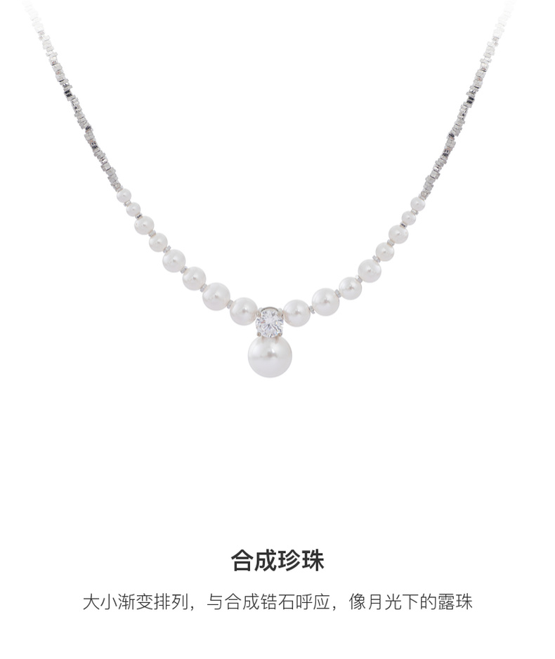 三彩2025新款轻奢锆石碎银子珍珠项链优雅复古毛衣链约会小众时尚
