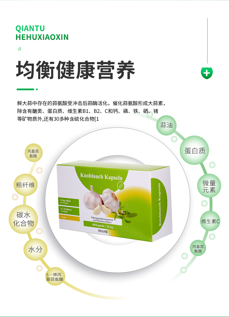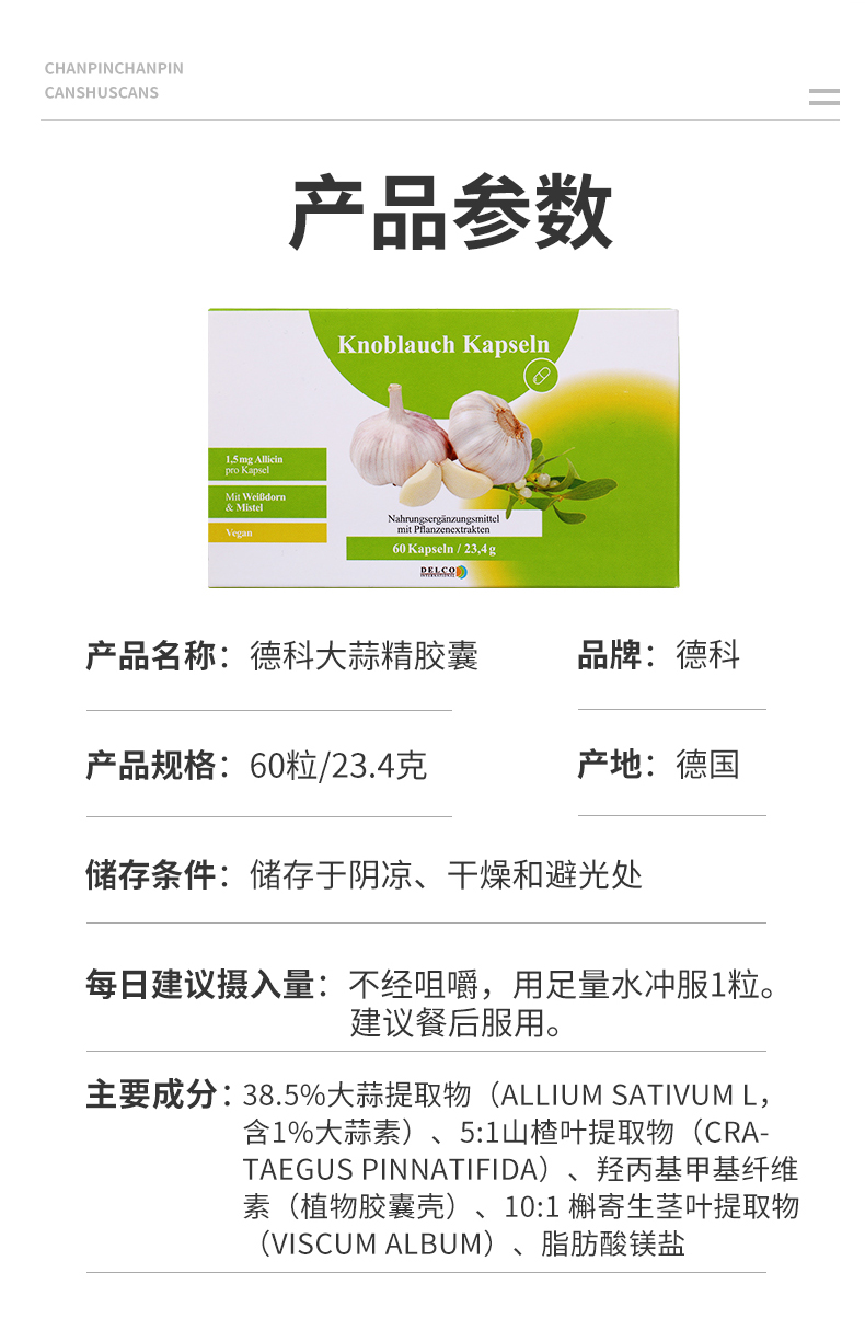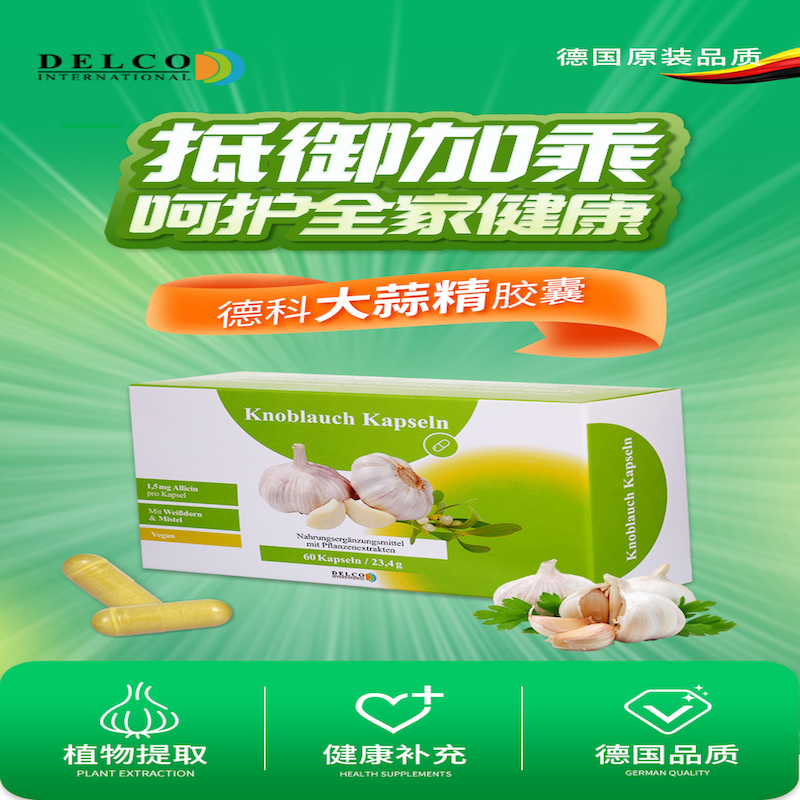 【DelcoInternational】德科进口无味大蒜精胶囊食用无味大蒜提取物高浓缩肠溶60粒