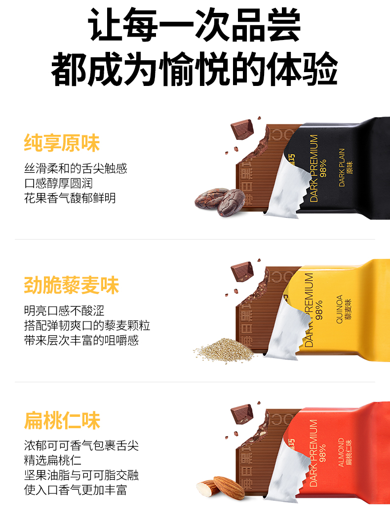 【每日黑巧】醇萃黑巧克力0蔗糖纯可可脂健康美味