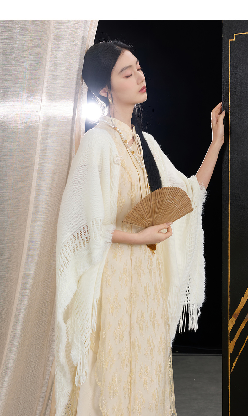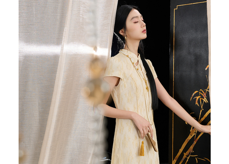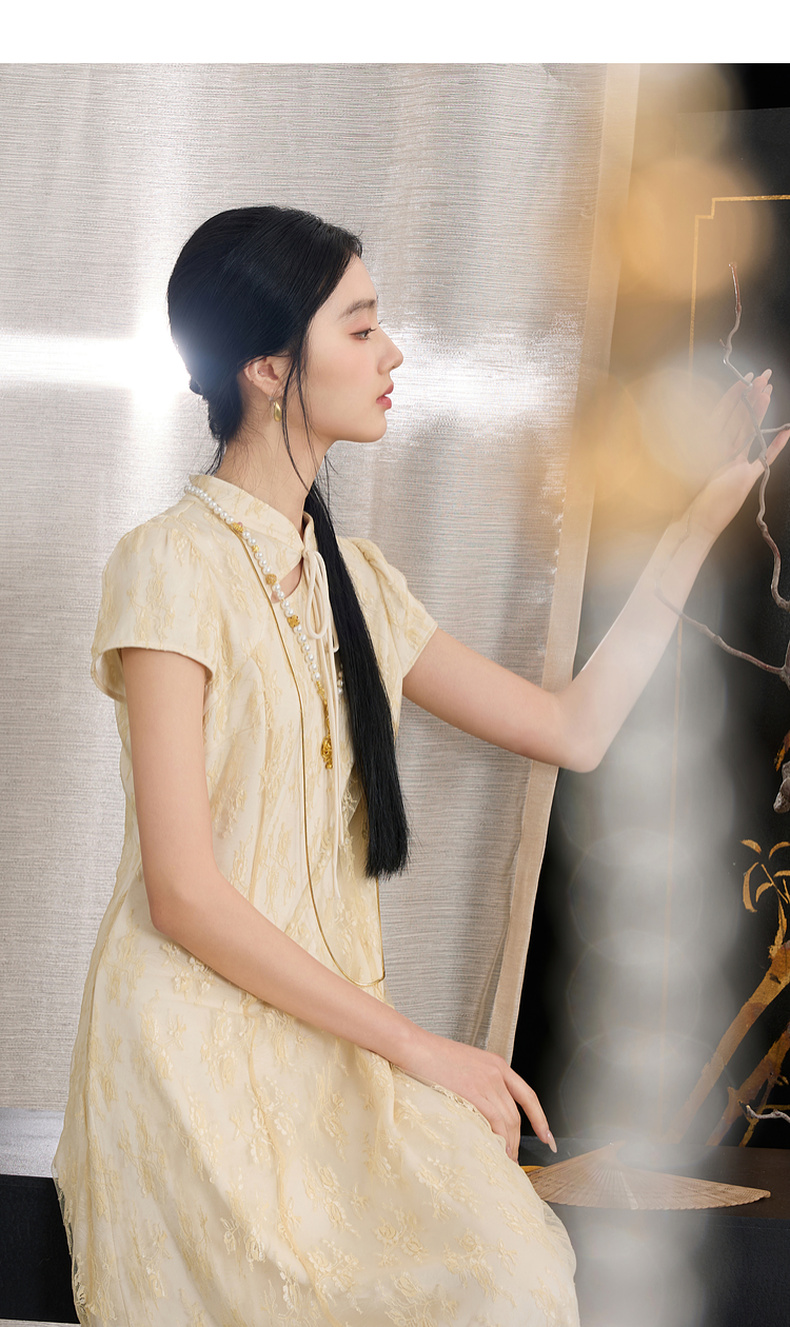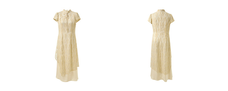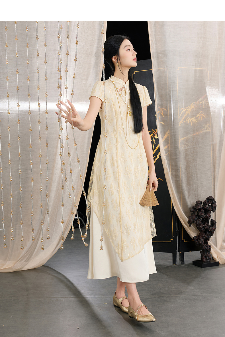 三彩【无边风月】2025秋季新款假两件连衣裙收腰A字裙长裙旗袍中式C