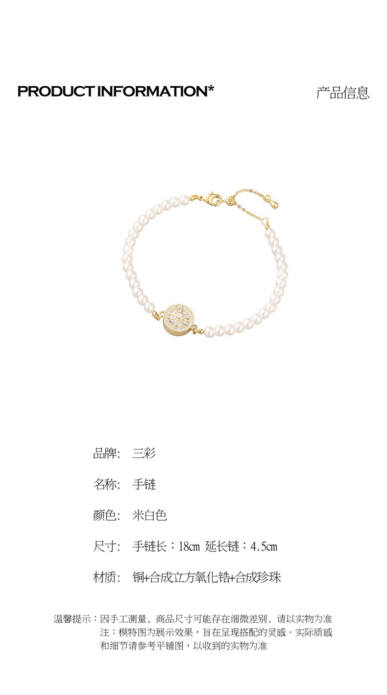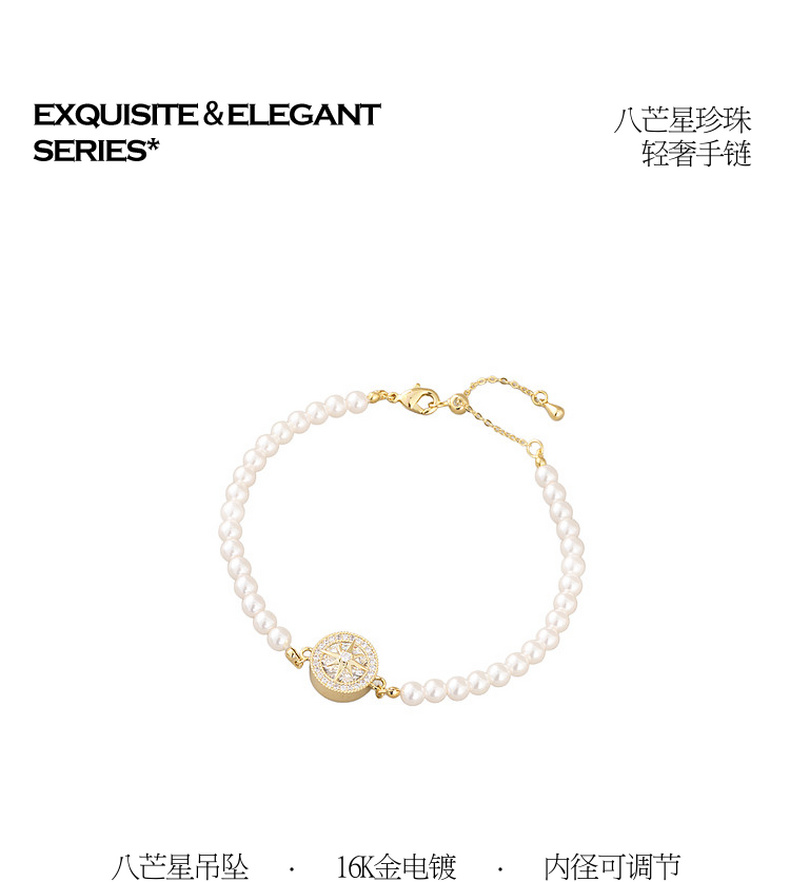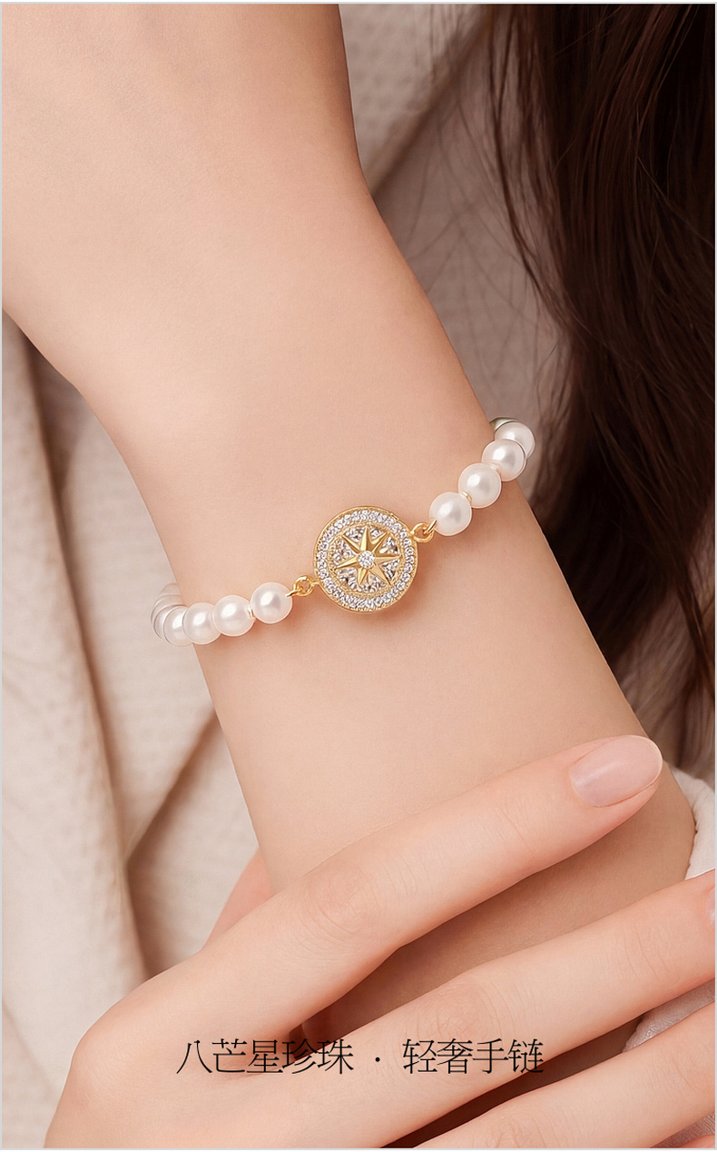 三彩2026新款八芒星珍珠手链轻奢精致简约个性通勤约会小众可调节