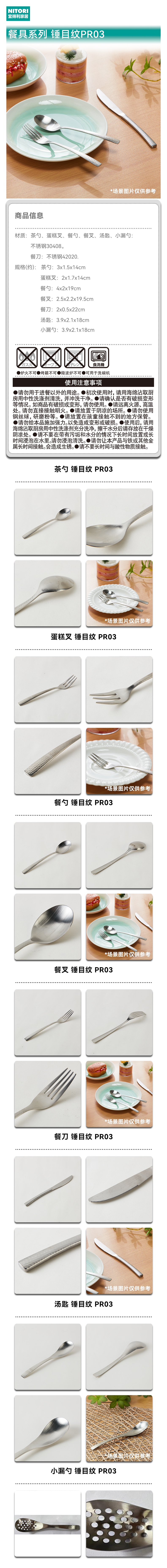 餐厅不锈钢餐具可洗碗机餐刀叉子汤勺漏勺茶勺锤目纹
