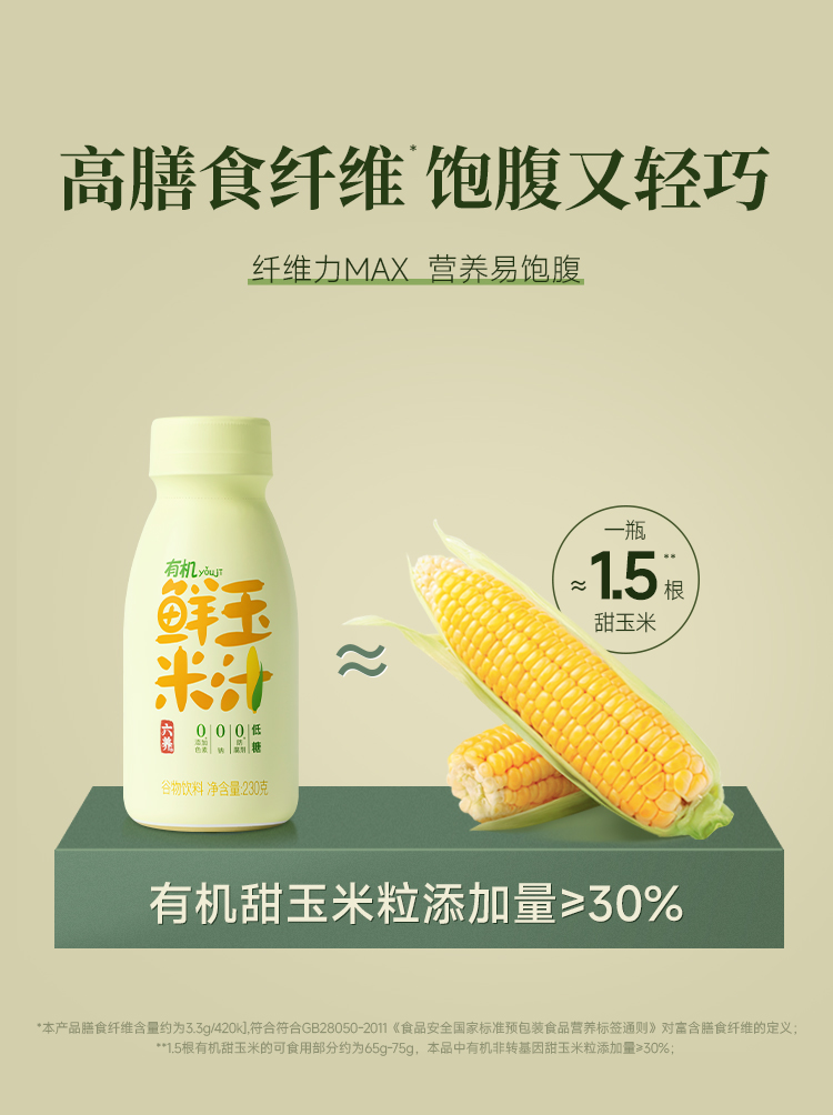 【六养】有机玉米汁3.0升级版低糖高膳食纤维 230g*8