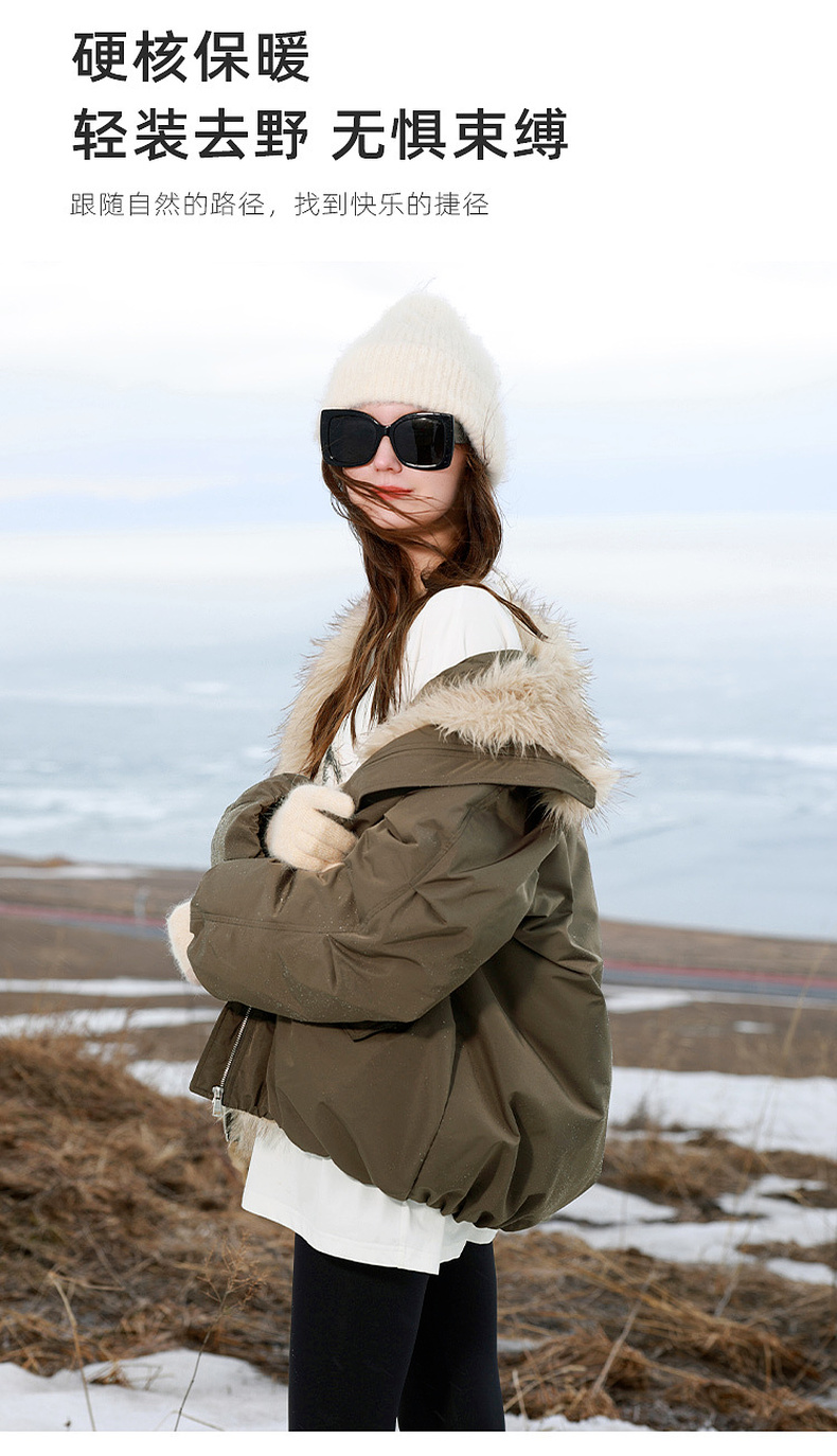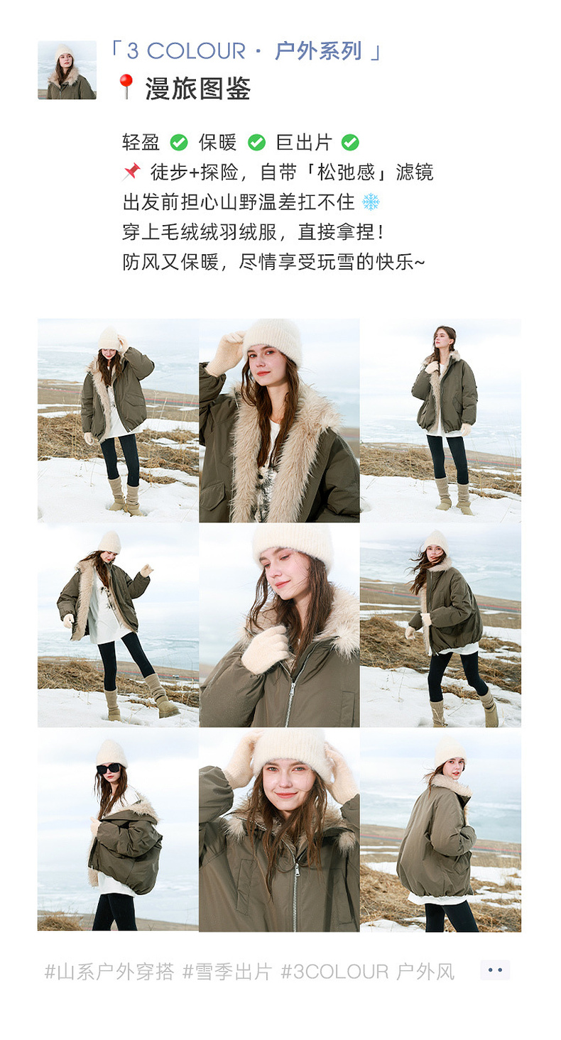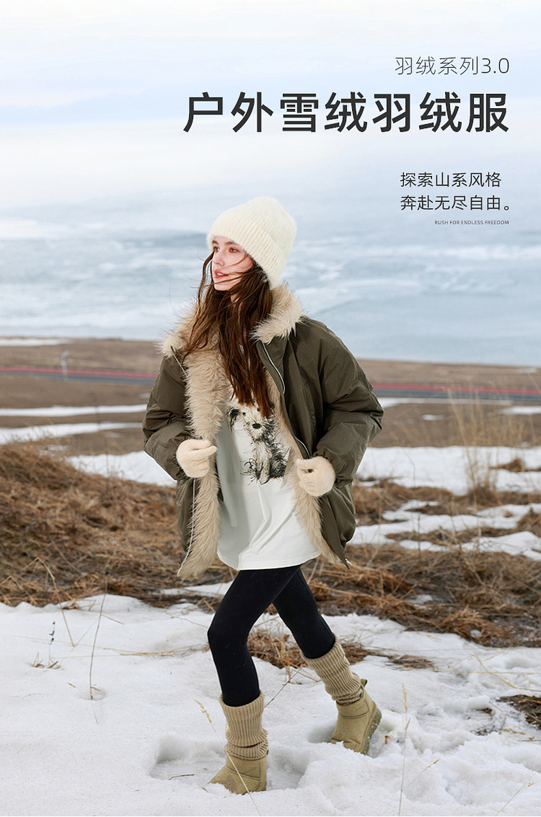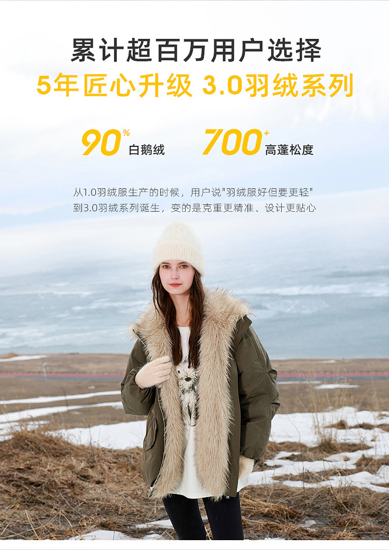 【90白鹅绒】三彩独醒2025冬季新款防水鹅绒服毛绒拼接羽绒服F